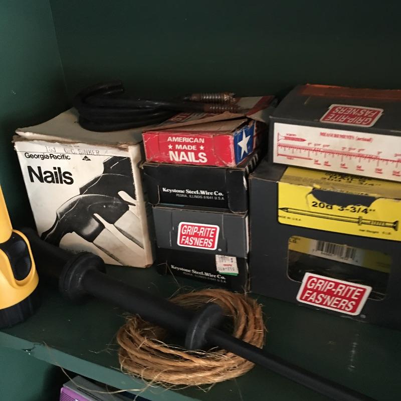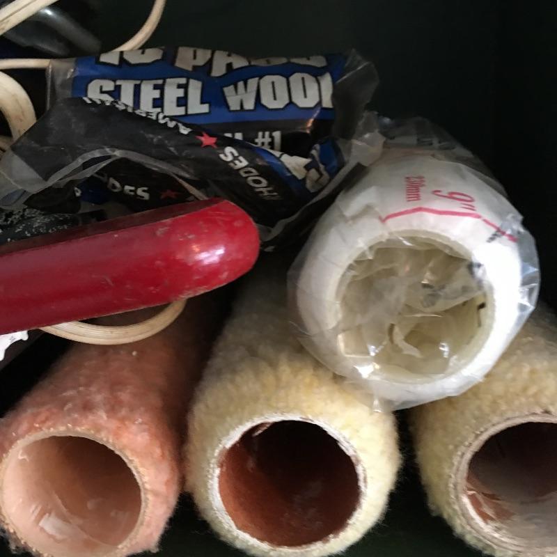 Hardware and more includes extension cords, staple guns, nails, steel tape, paint brushes, tarp and more. A great lot for the new home owner or add to what you already have.