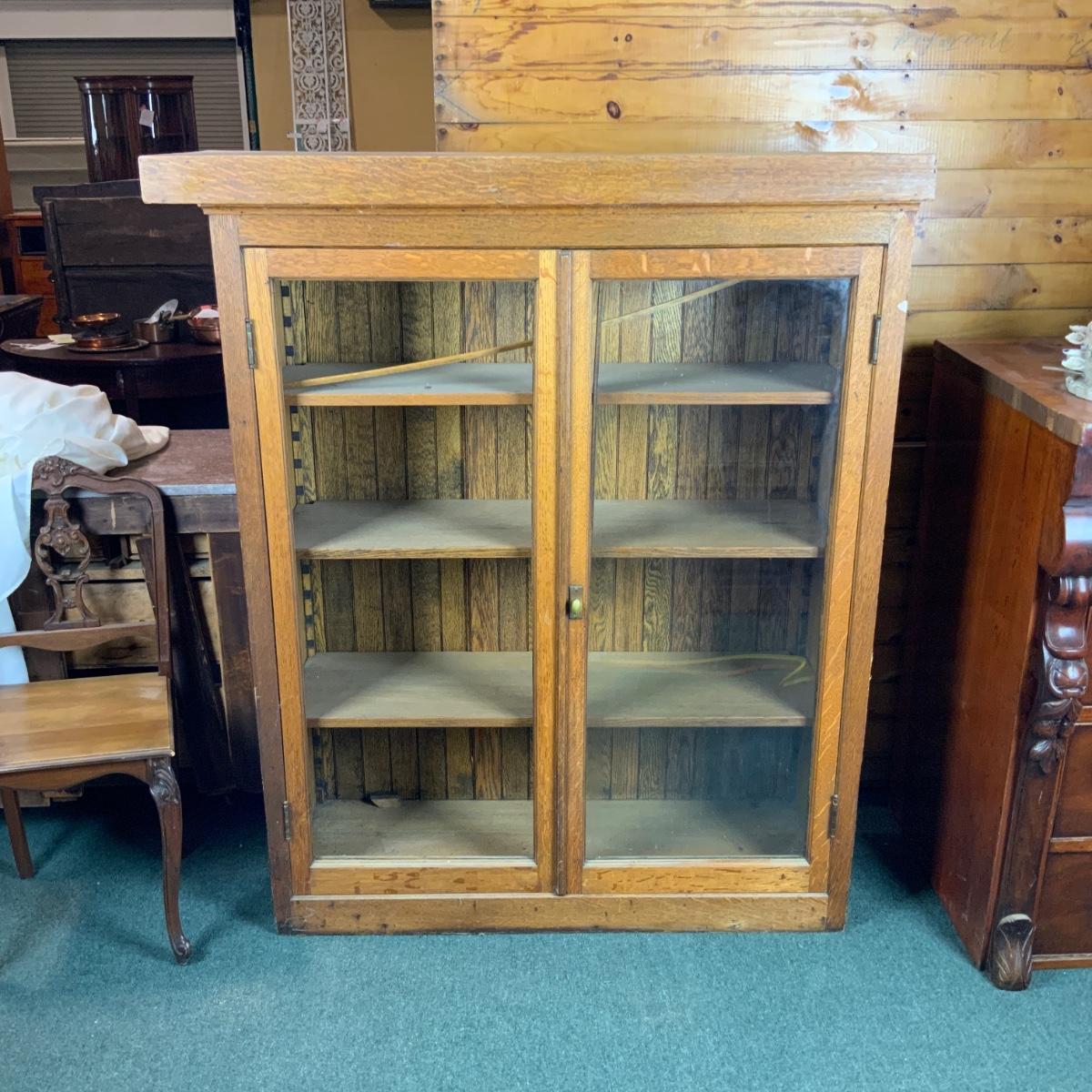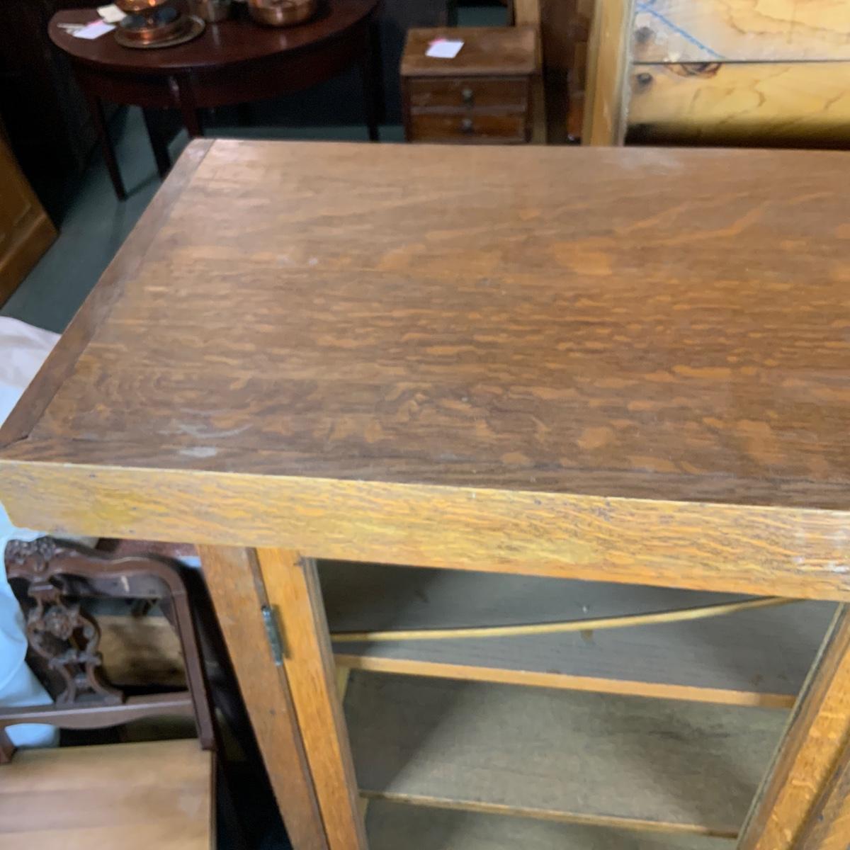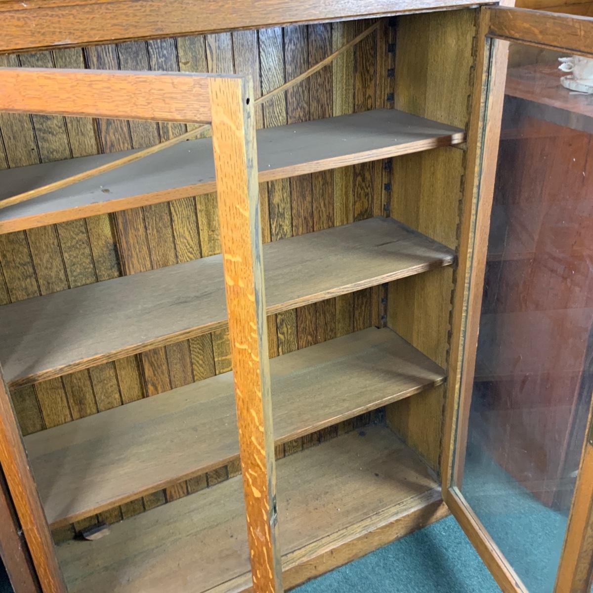 Antique Oak Bookshelf, one glass panel is missing. Needs replacement and some restoration. //::\\ Please see photos for details and condition. No attempt has been made to hide any imperfections. All items listed in this auction are warehouse items, and need to be cleaned. A majority of the items need restoration as well. All items are sold AS IS and WITHOUT GUARANTEE. If you are uncertain about an item, DO NOT BID. Due to the nature of this online auction in-person inspection is HIGHLY recommended. All Sales are FINAL. Pick Up Times are FIRM. Please confirm with your own schedule that you can pick up in the scheduled times listed in the Terms and Conditions. Any questions please message the auctioneer. DO NOT Contact The Harp Gallery.