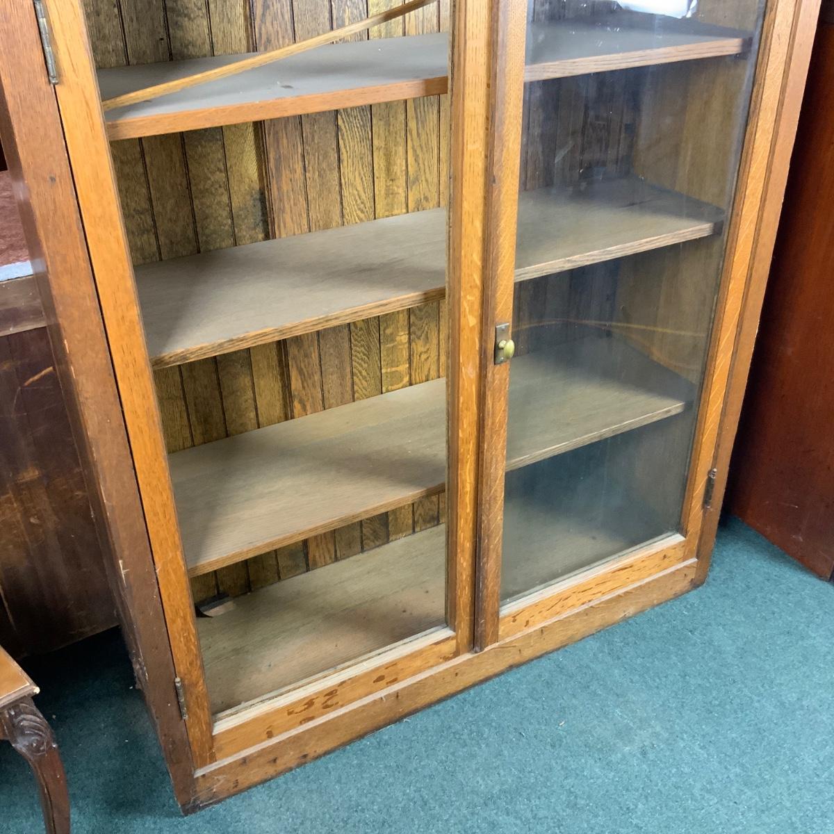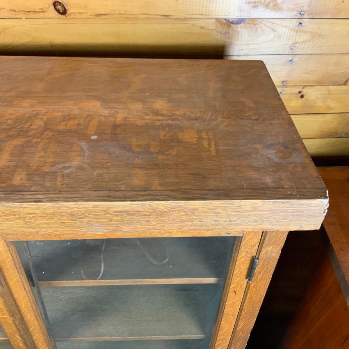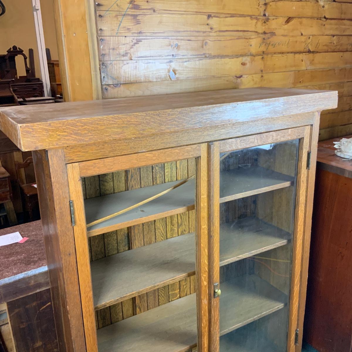 Antique Oak Bookshelf, one glass panel is missing. Needs replacement and some restoration. //::\\ Please see photos for details and condition. No attempt has been made to hide any imperfections. All items listed in this auction are warehouse items, and need to be cleaned. A majority of the items need restoration as well. All items are sold AS IS and WITHOUT GUARANTEE. If you are uncertain about an item, DO NOT BID. Due to the nature of this online auction in-person inspection is HIGHLY recommended. All Sales are FINAL. Pick Up Times are FIRM. Please confirm with your own schedule that you can pick up in the scheduled times listed in the Terms and Conditions. Any questions please message the auctioneer. DO NOT Contact The Harp Gallery.