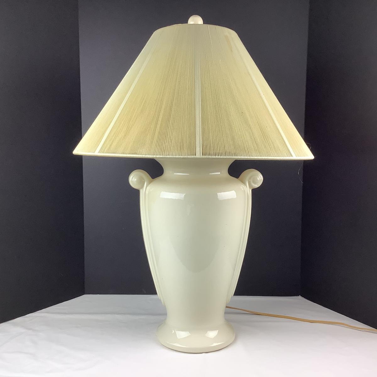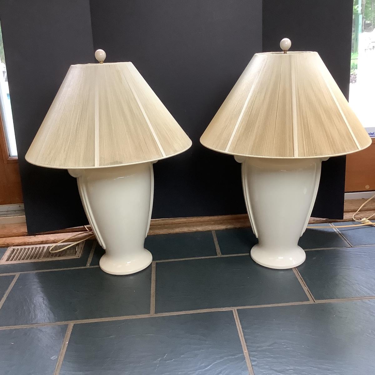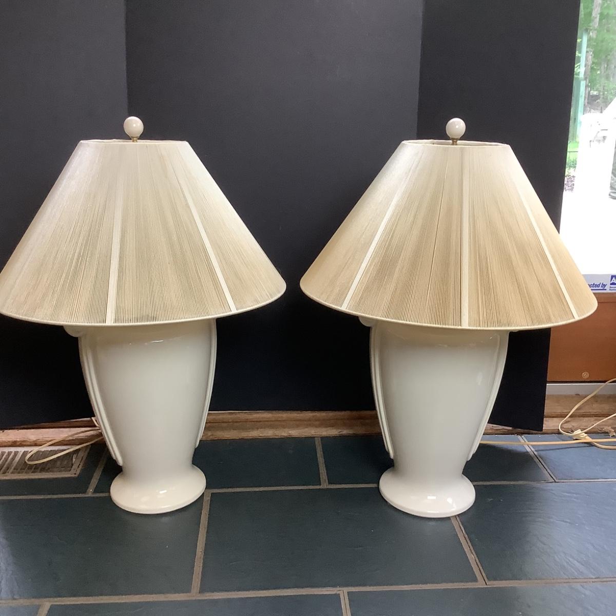 Pair of Cream Colored Urn Style Ceramic Lamps