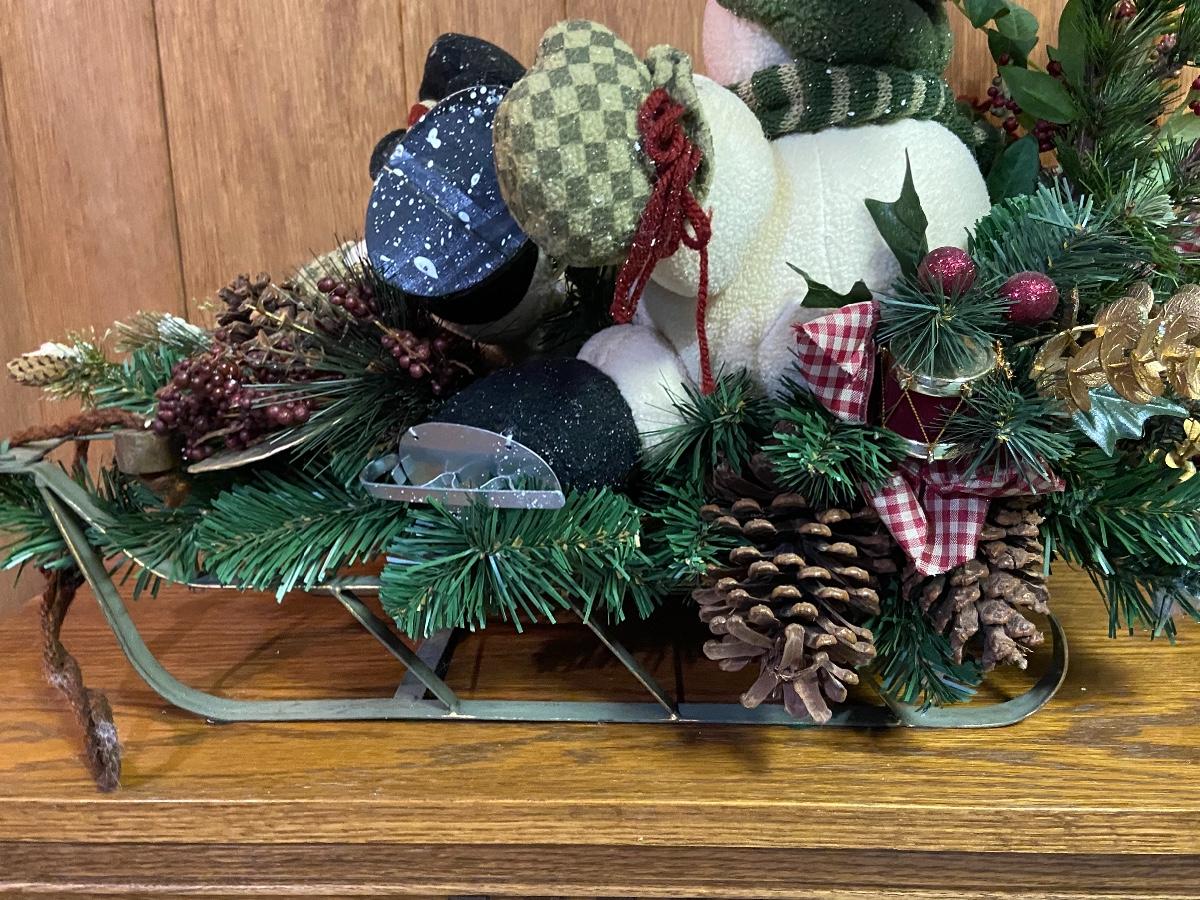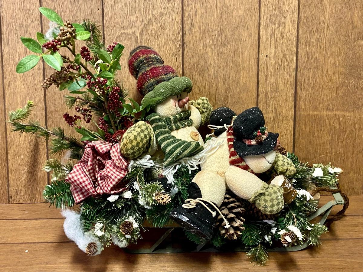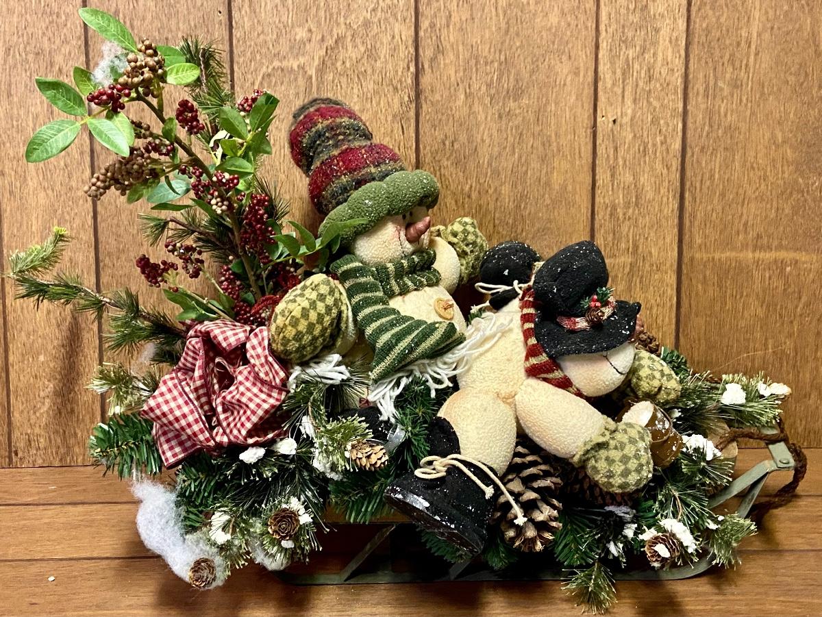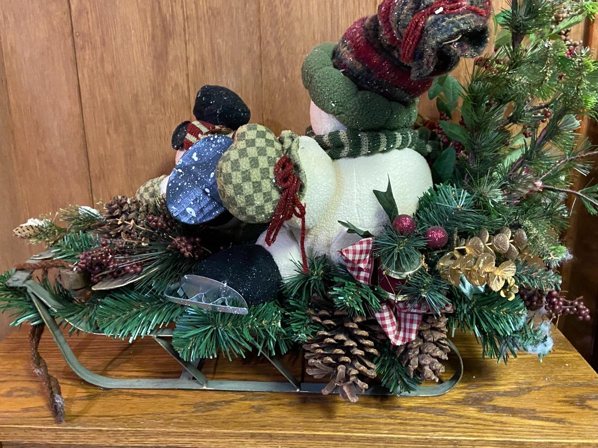 Lot 325: Holiday Door/Mantle Decor: Snowmen on Sled