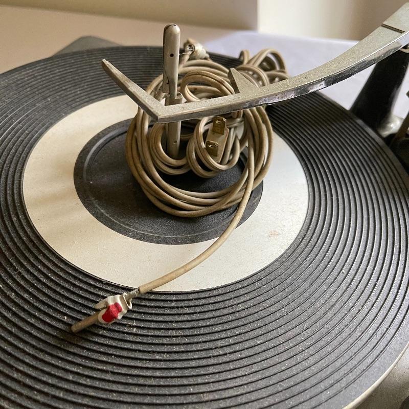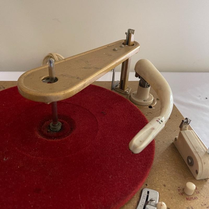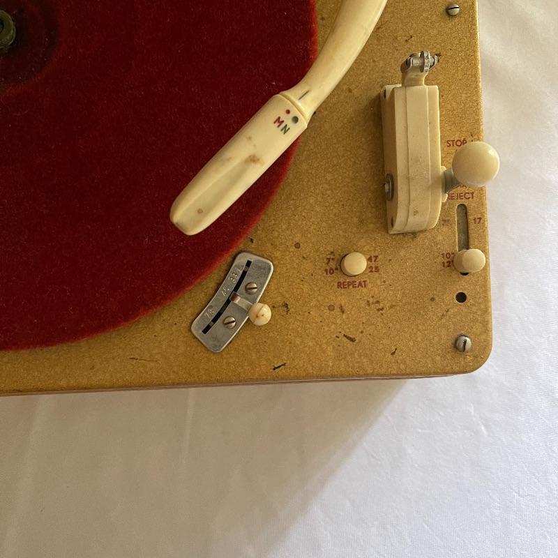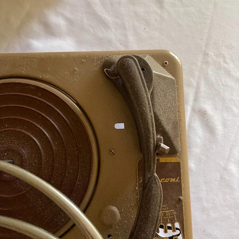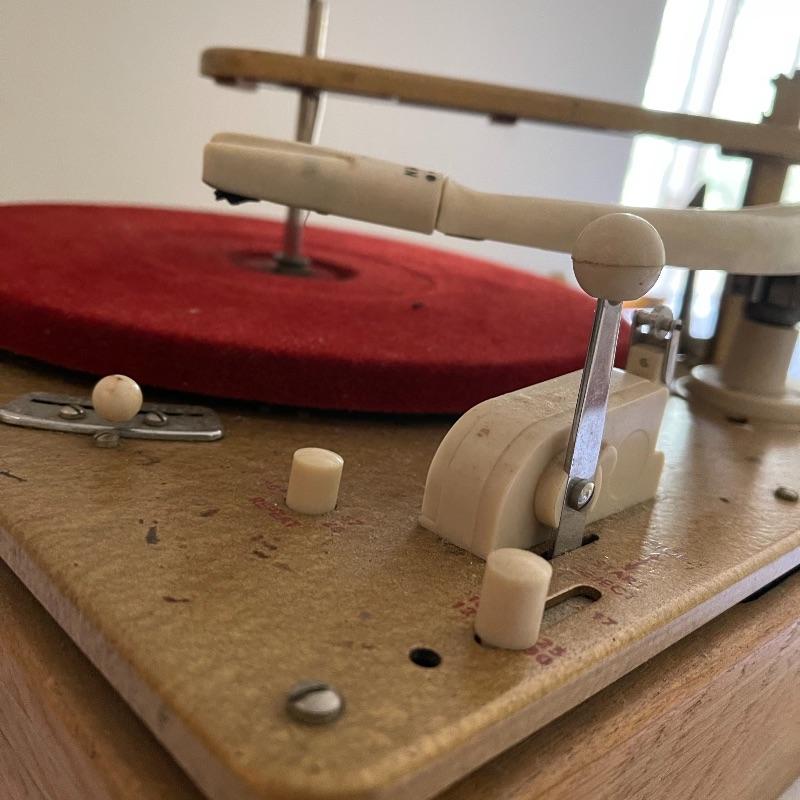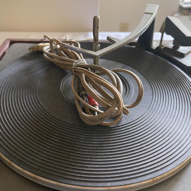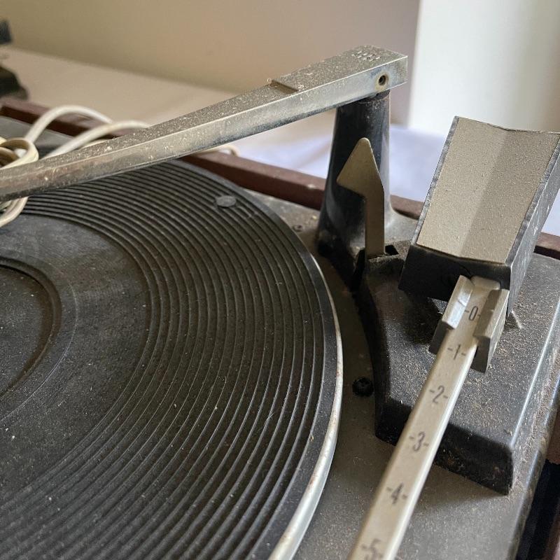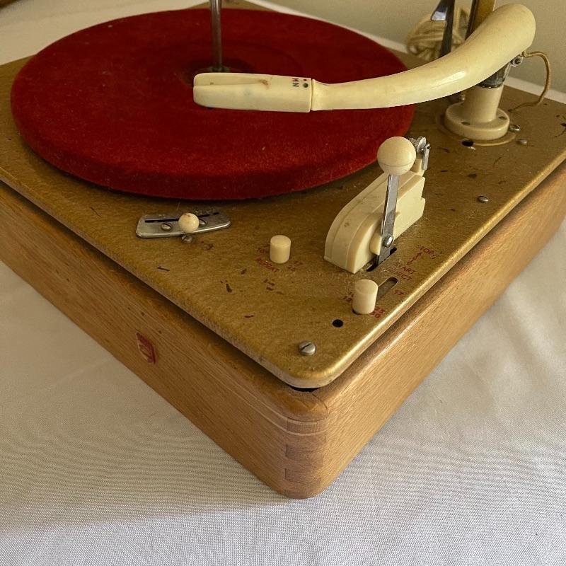 Group of four turntables from various makers. Two are Knight turntables, both are model 990A. One is Marconi, Swedish made, and the type number is A-517-056. The last is a single High Fidelity turntable, model 31471.