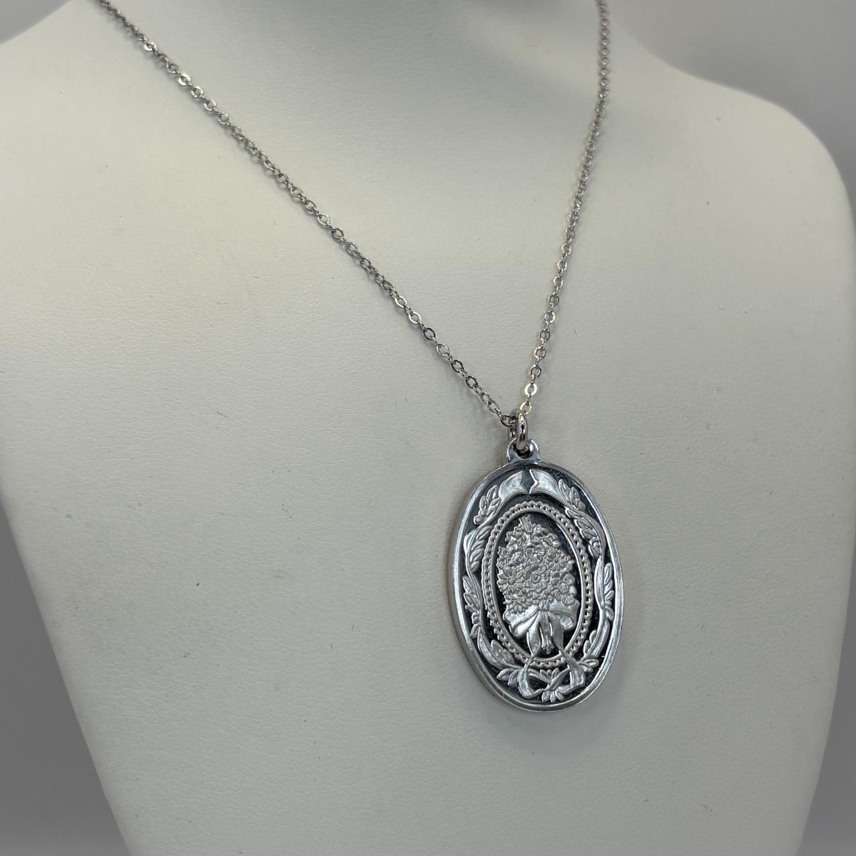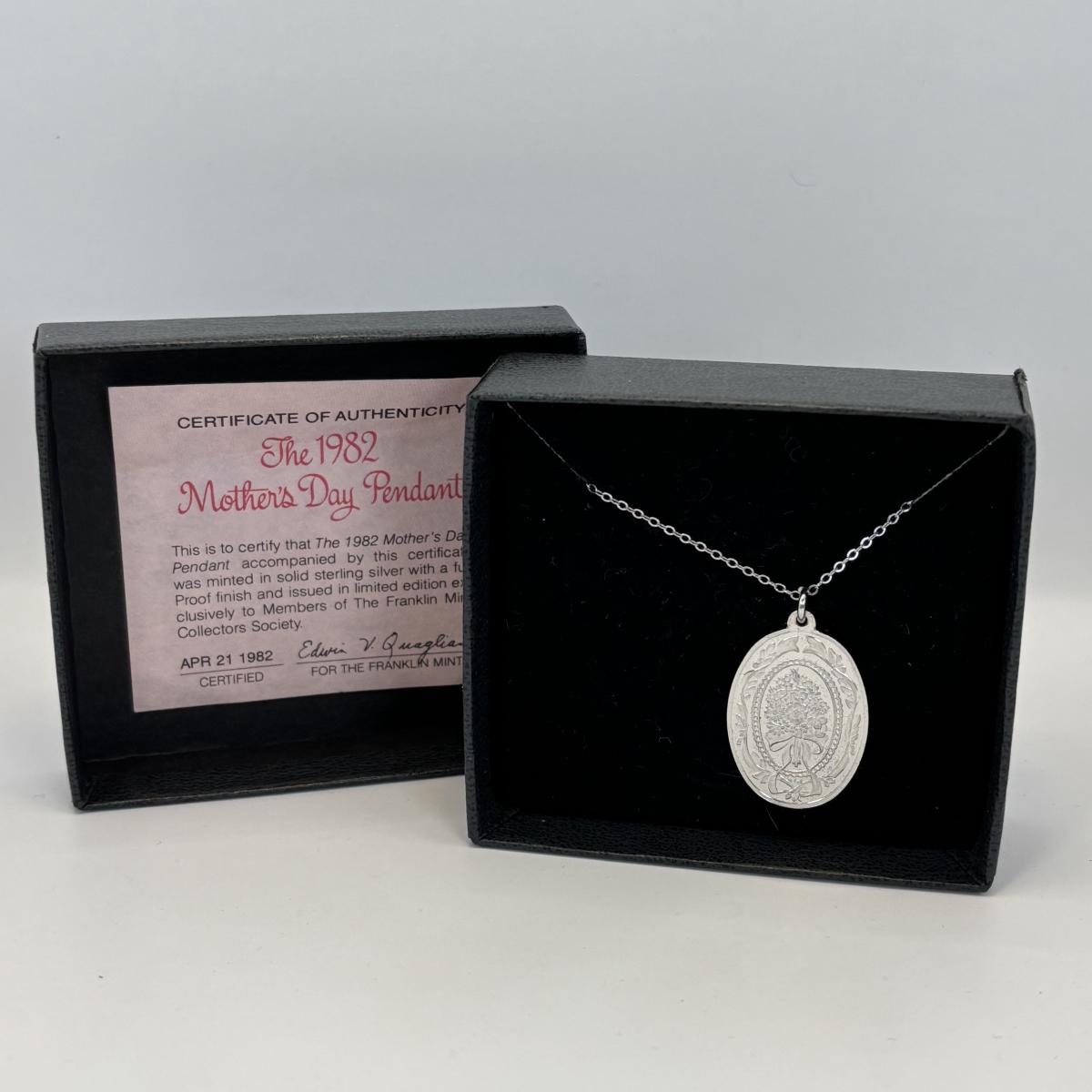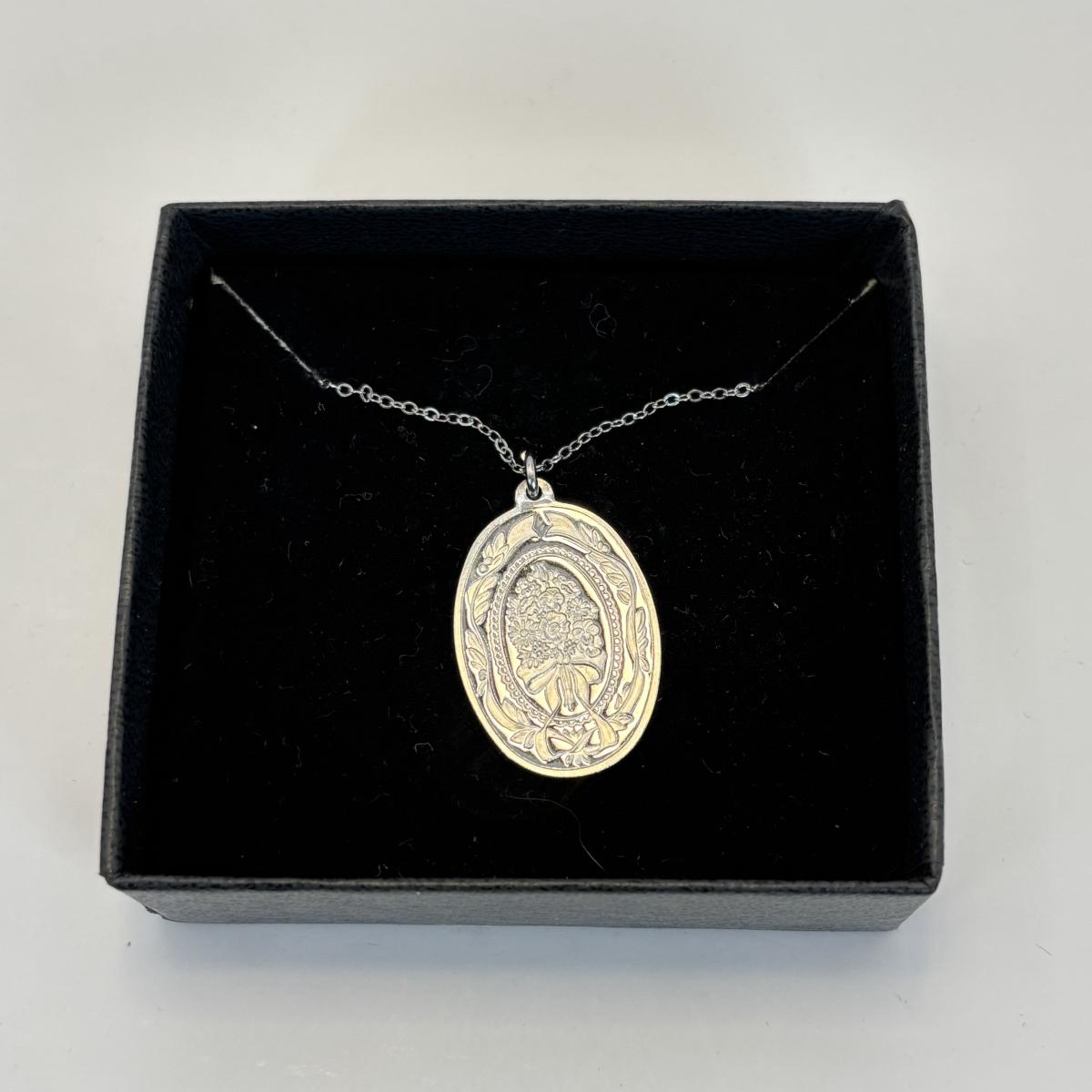 Lot 326: Franklin Mint 1982 Flower Bouquet Sterling Silver Pendant Necklace, 2-Sided w/Friend Verse