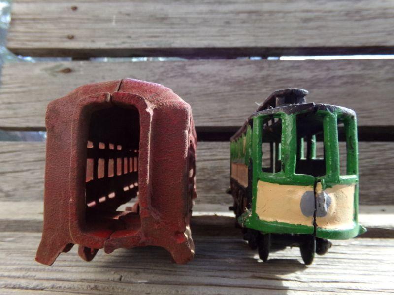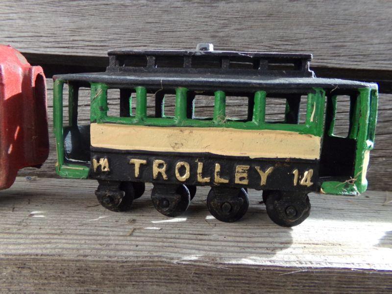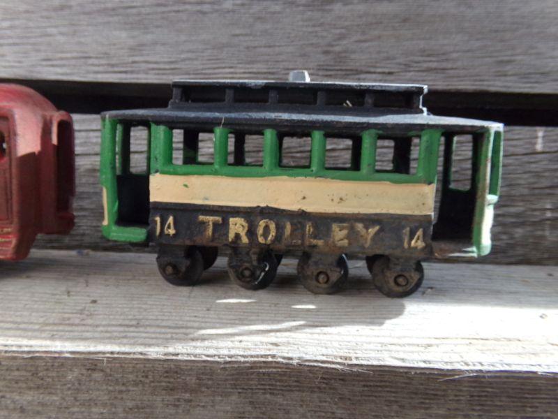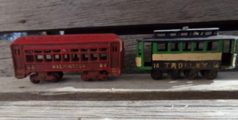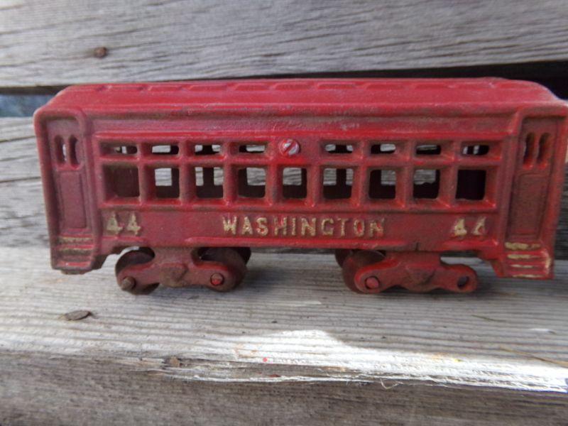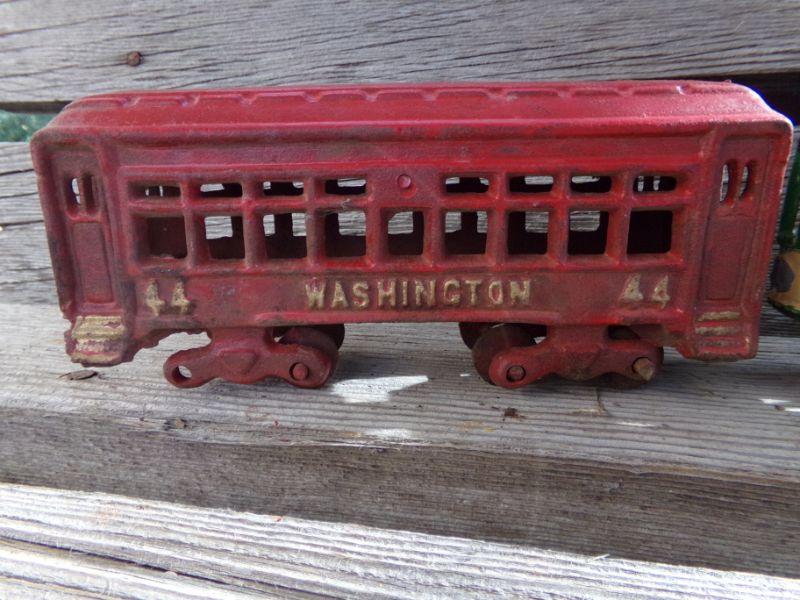 THE RED TROLLEY CAR READS, "WASHINGTON 44" (MISSING SOME WHEELS)