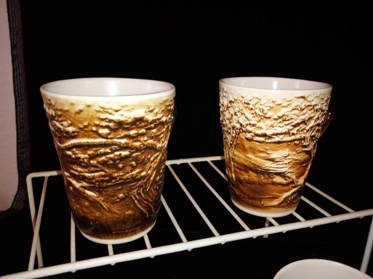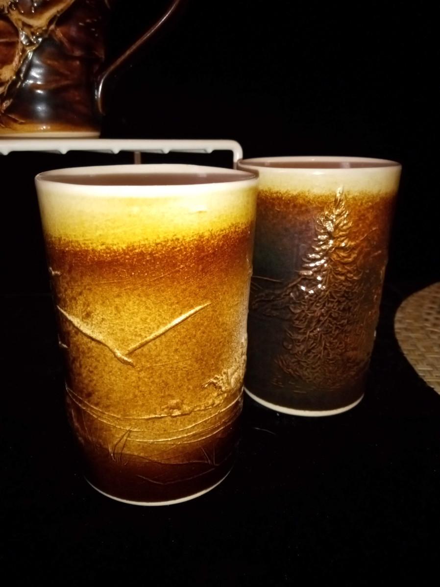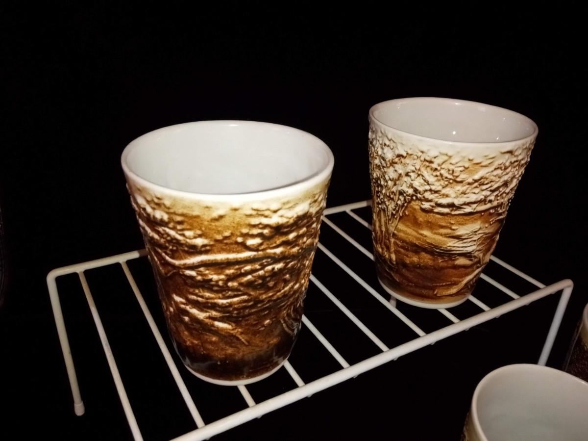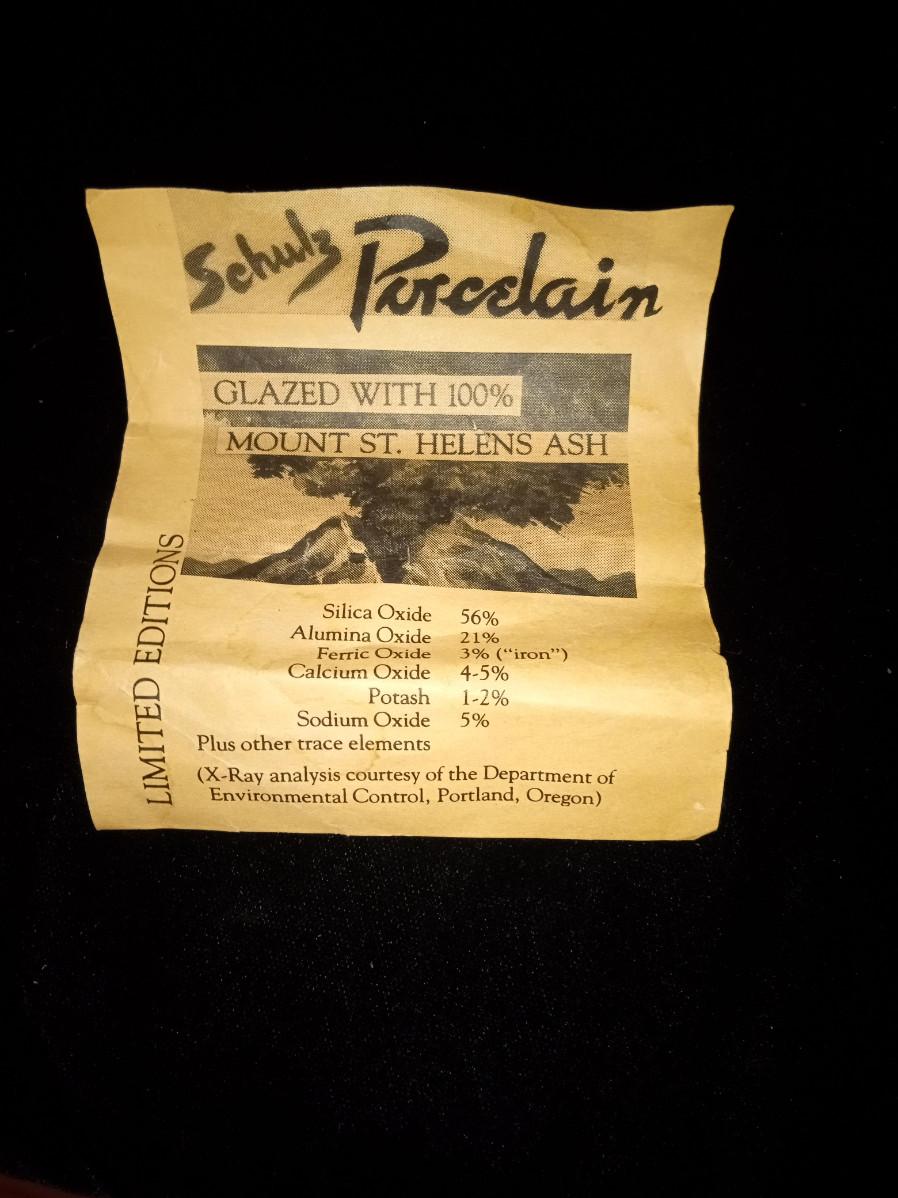 SCHULZ PORCELAIN IS GLAZED WITH 100% MOUNT ST HELENS ASH. THE TUMBLERS ARE APPROX 5" TALL