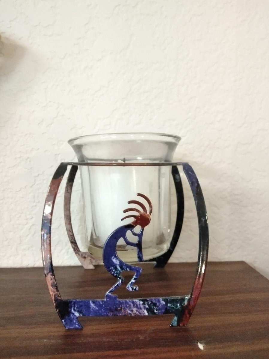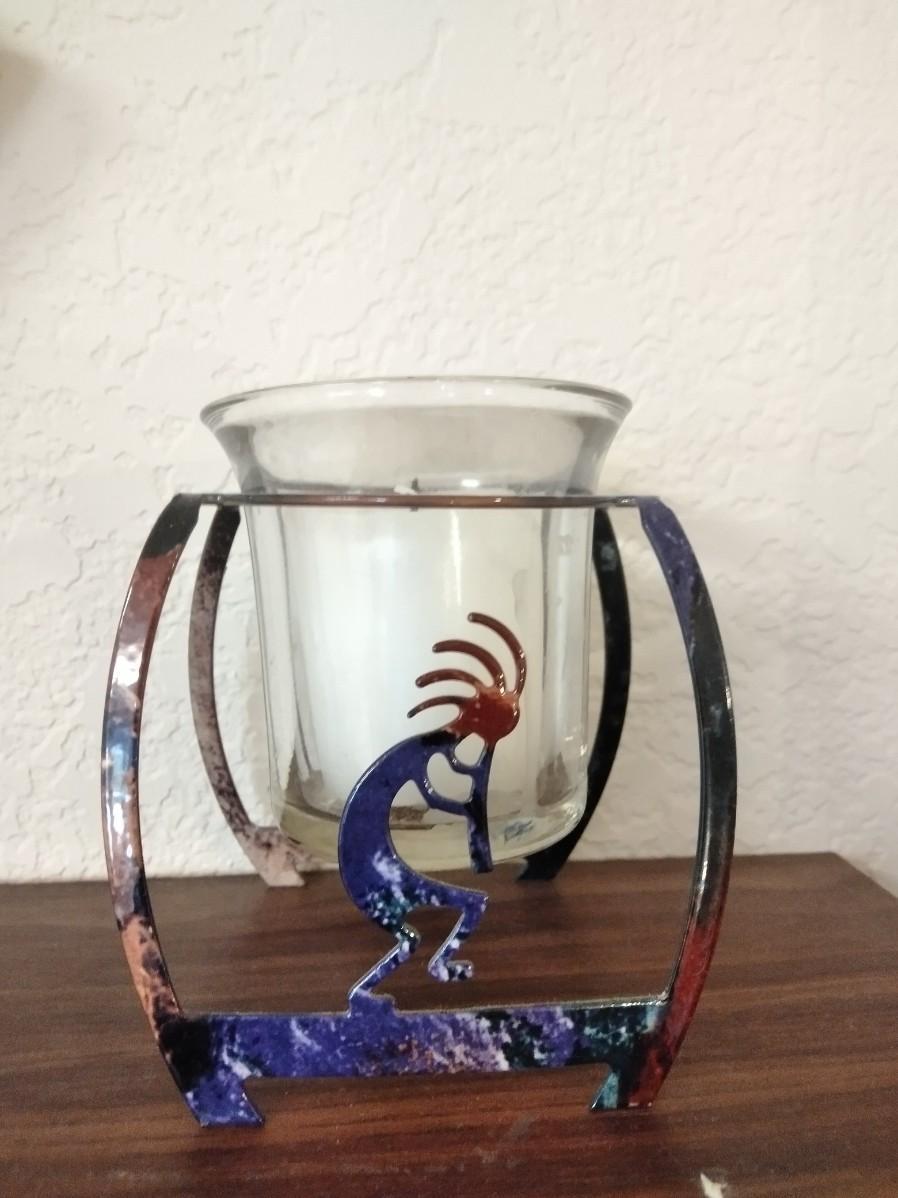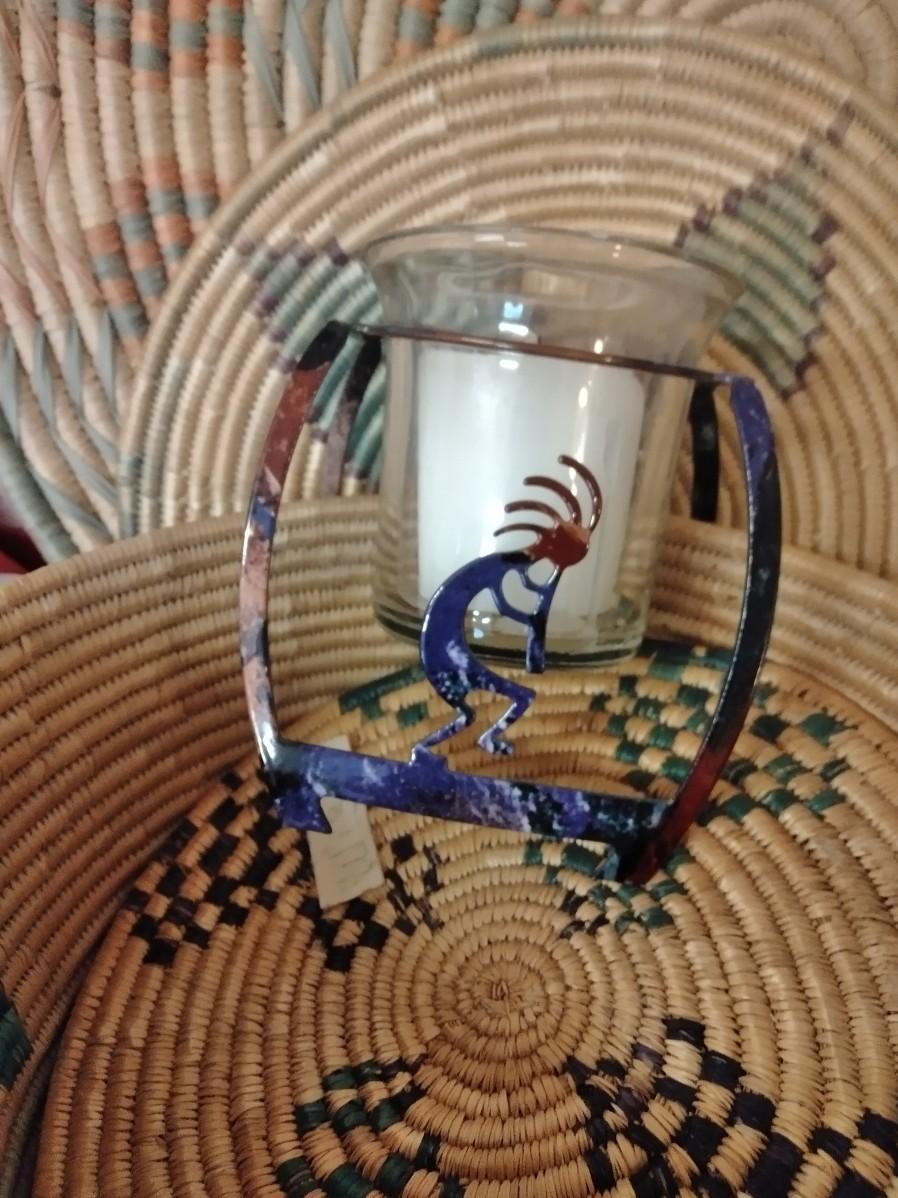 HAND WOVEN WICKER DECOR AND A KOKOPELLI CANDLE HOLDER