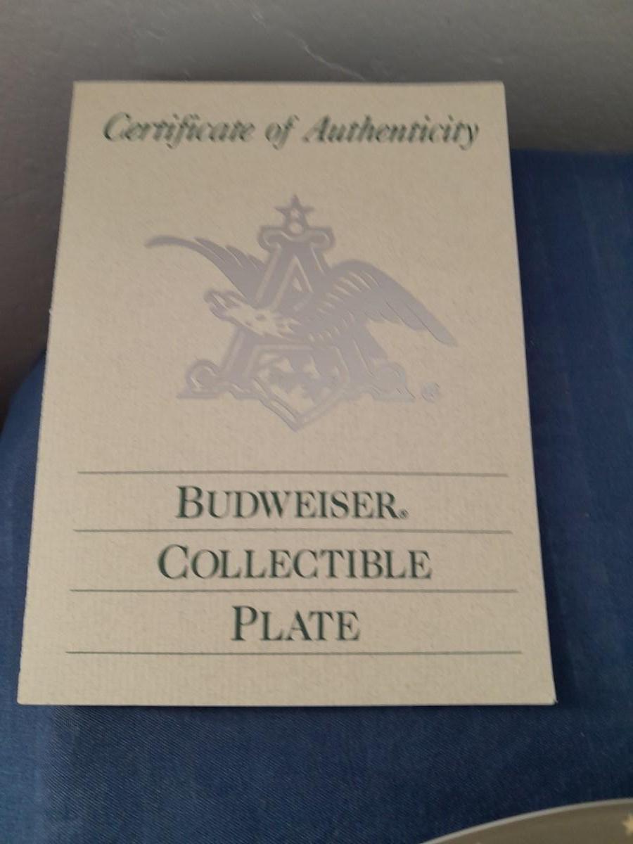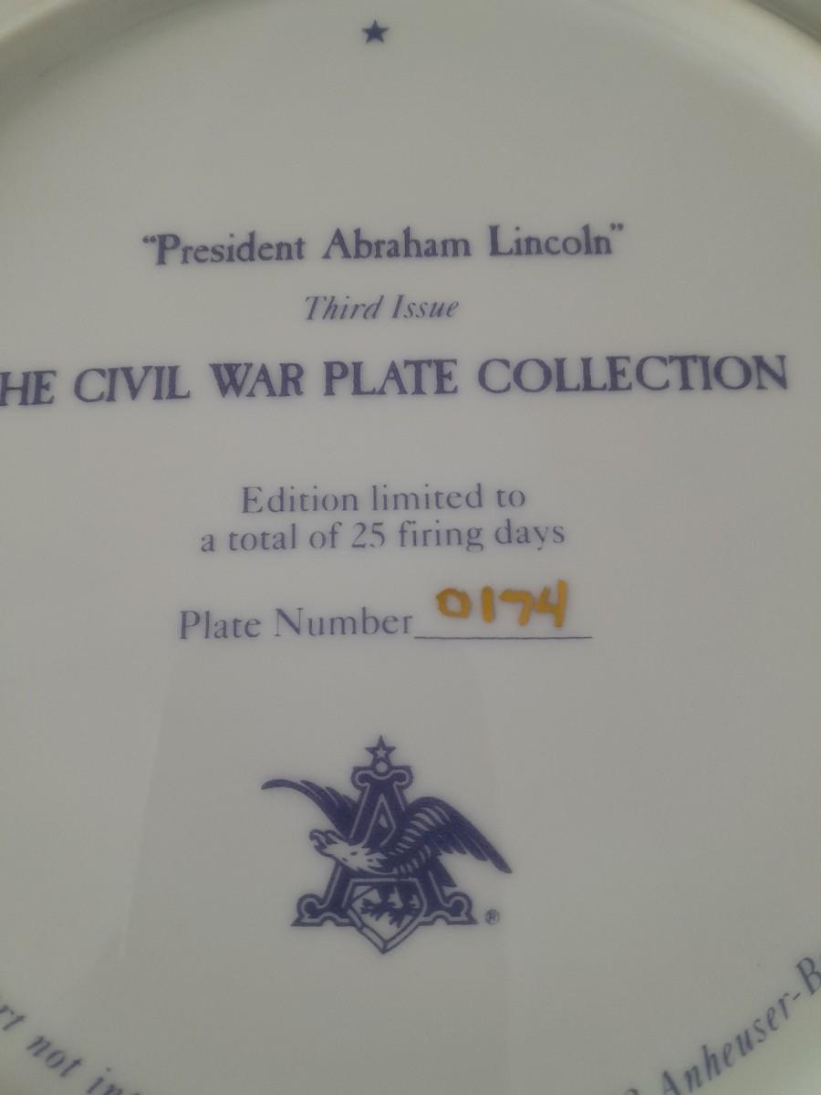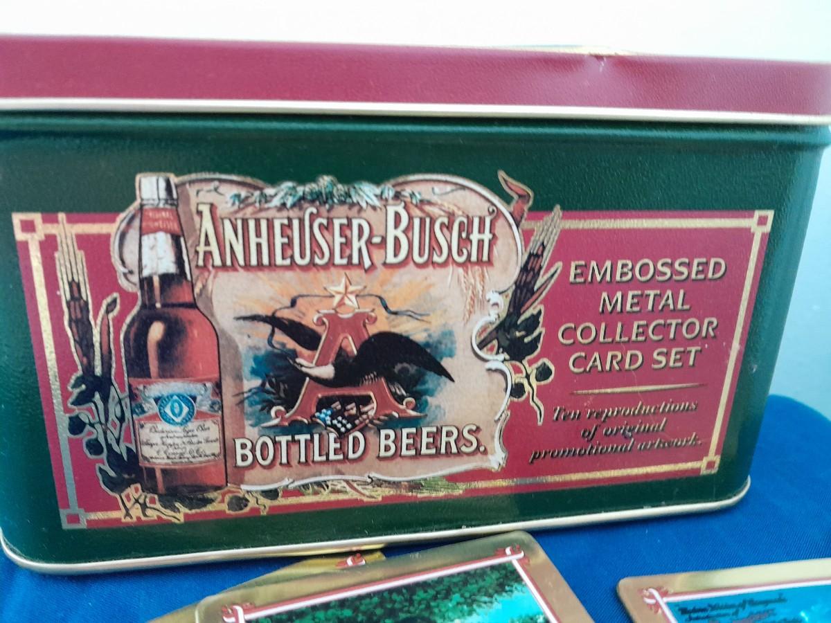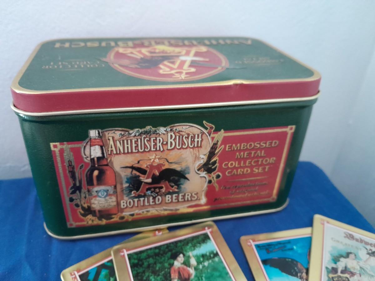 BUDWEISER ABRAHAM LINCOLN COLLECTORS PLATE 10" AND TIN WITH EMBOSSED METAL COLLECTOR CARD SET