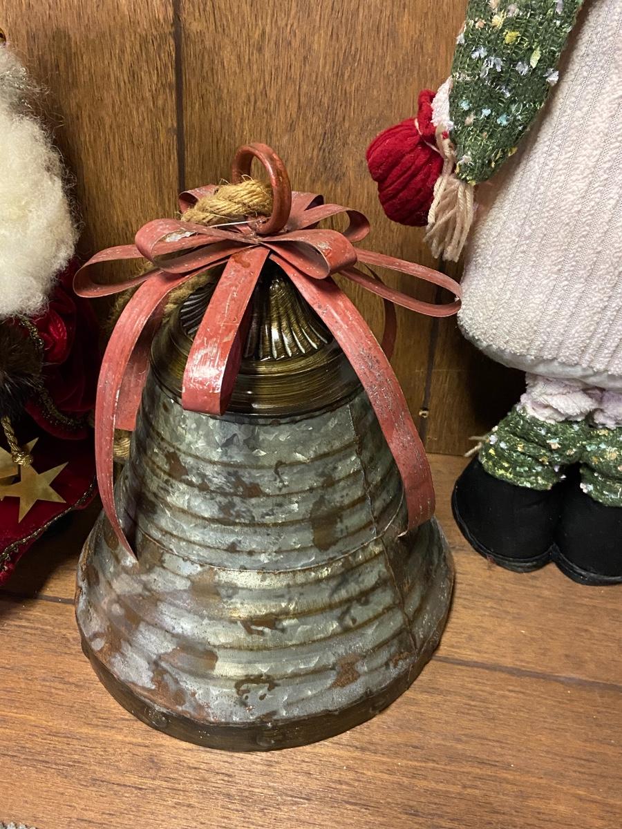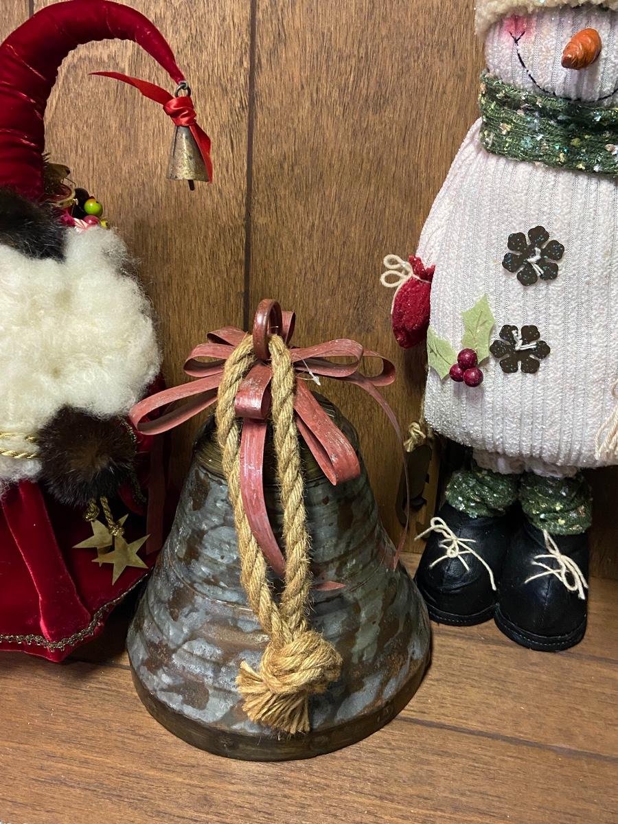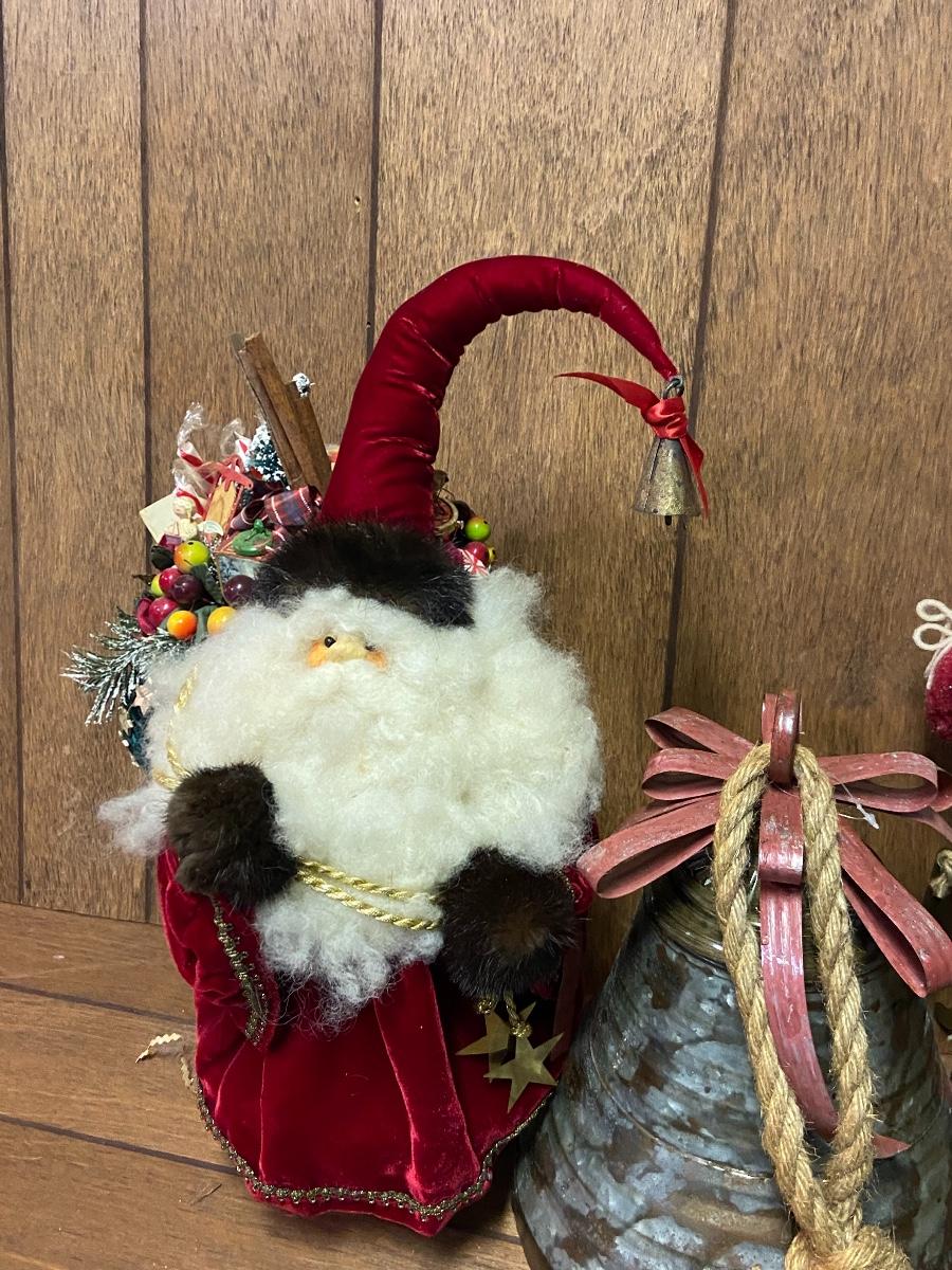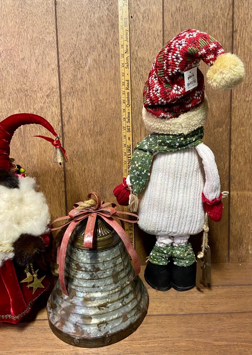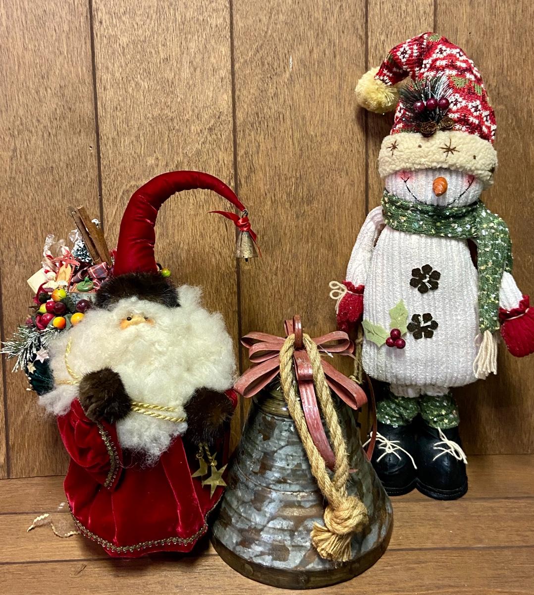 Lot 326: Unique Santa, Large Metal Bell, and Standing Snowman