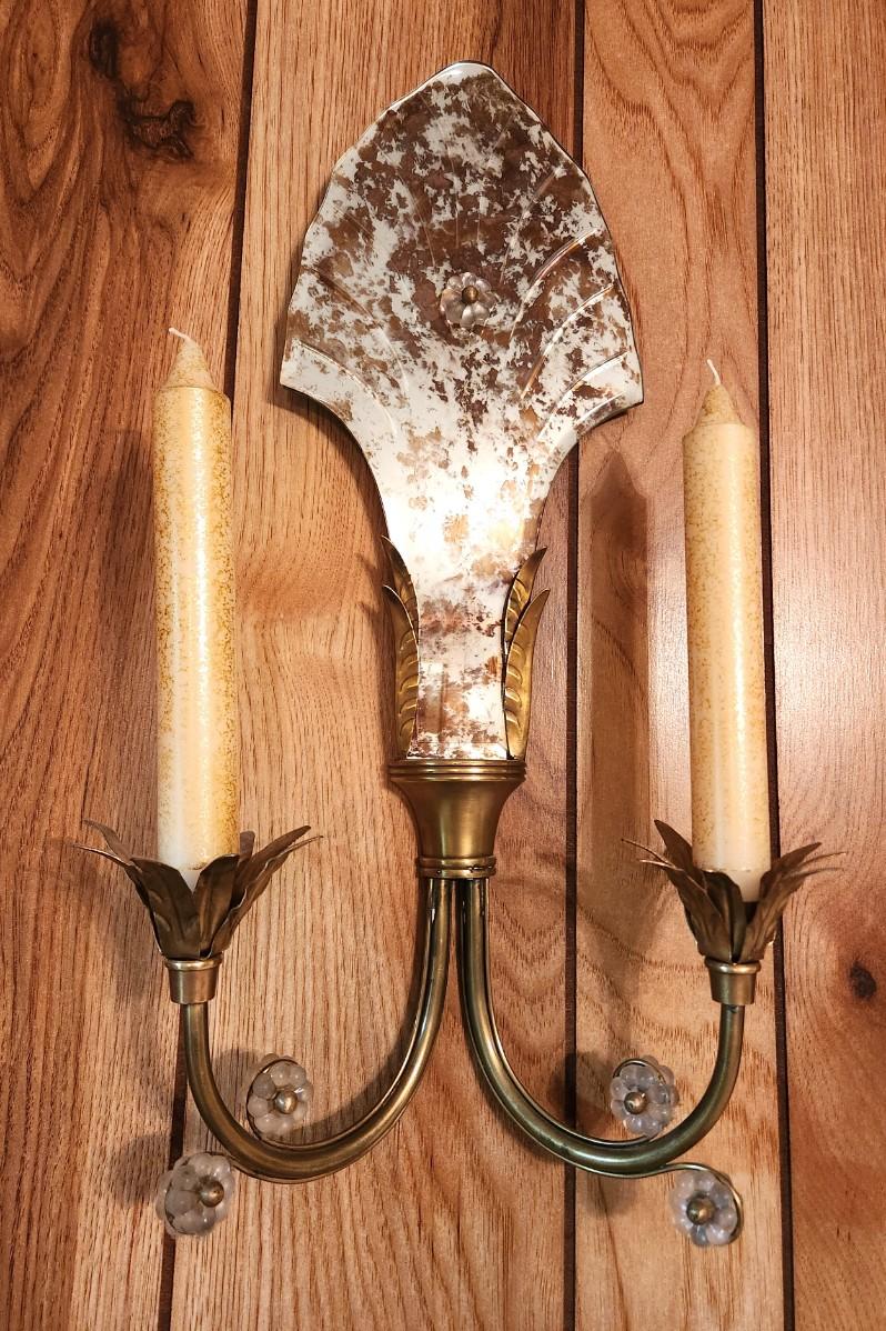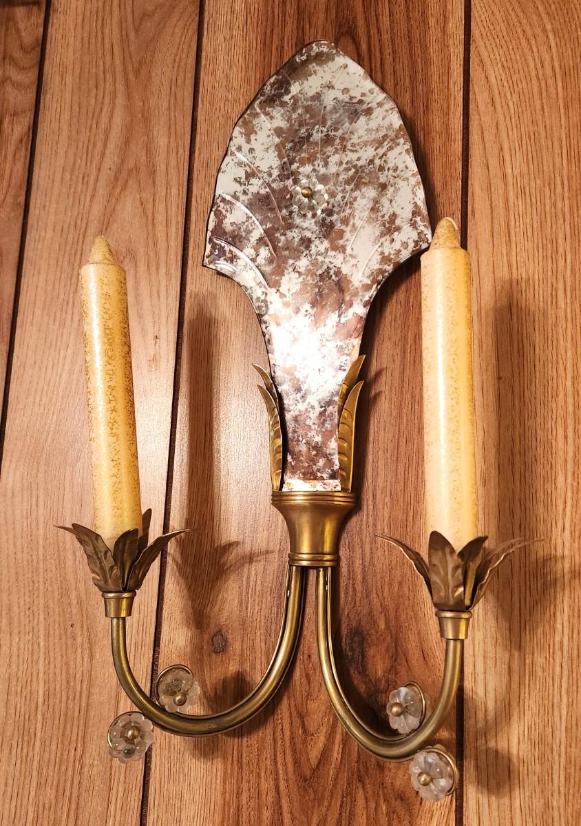 Pair of Mirrored 2-arm candle sconces - each 22" long, 12" across.