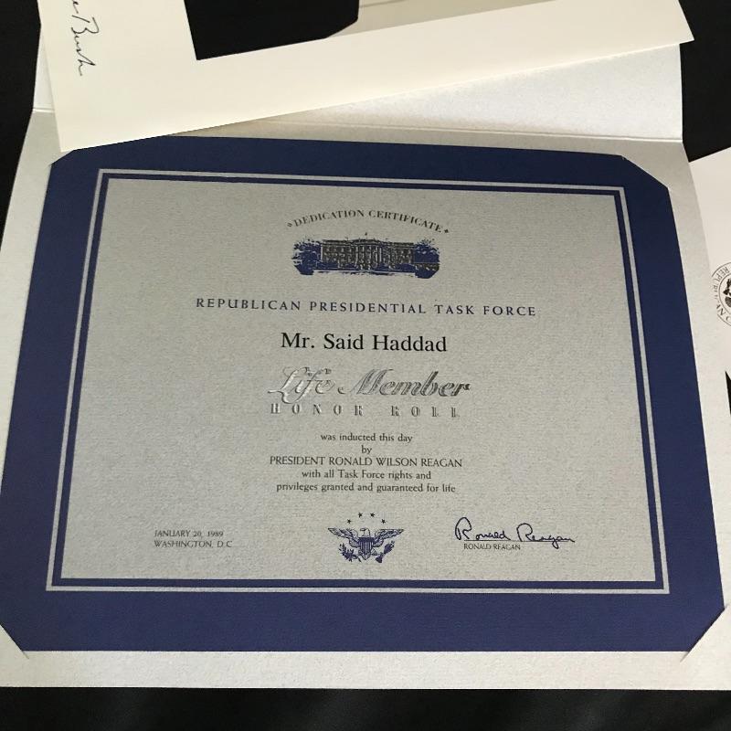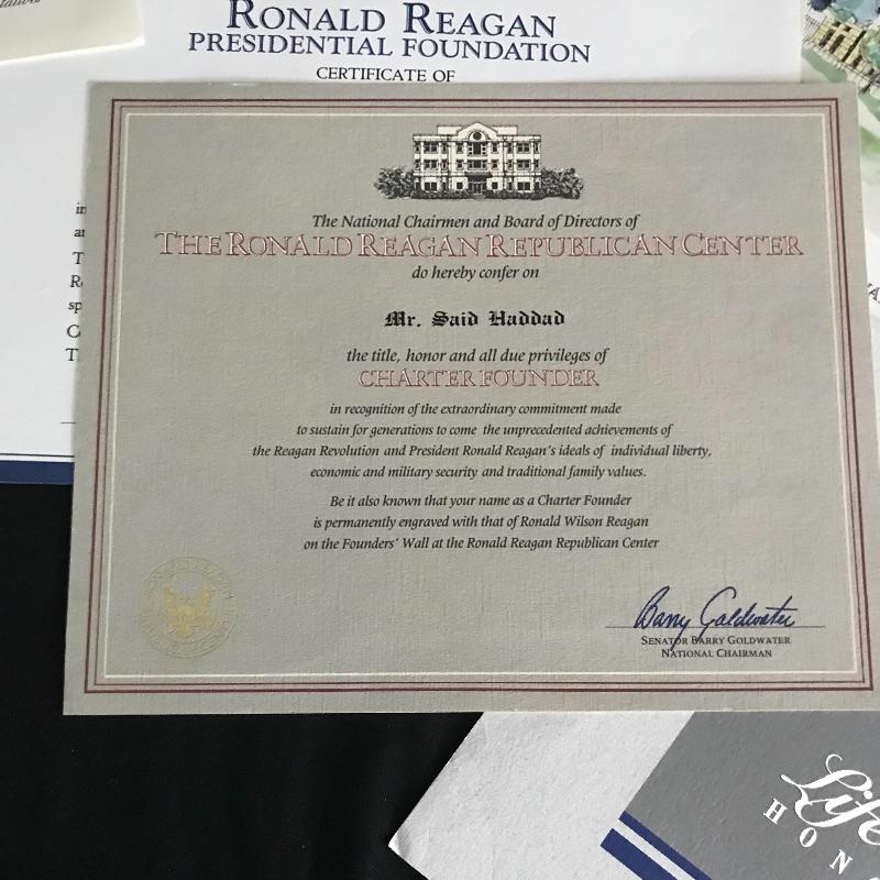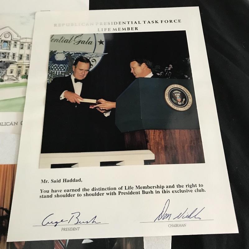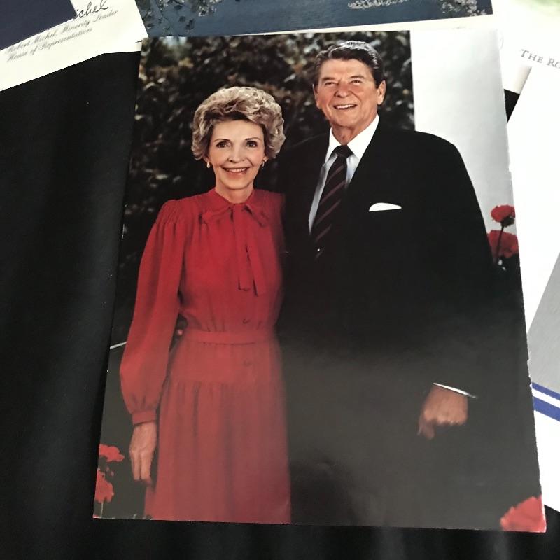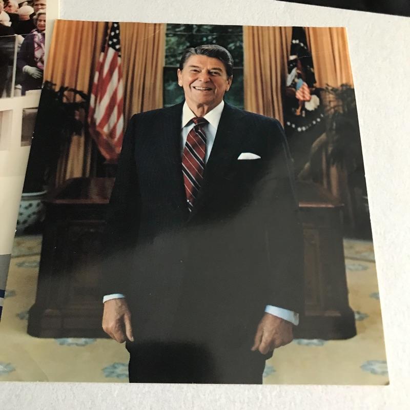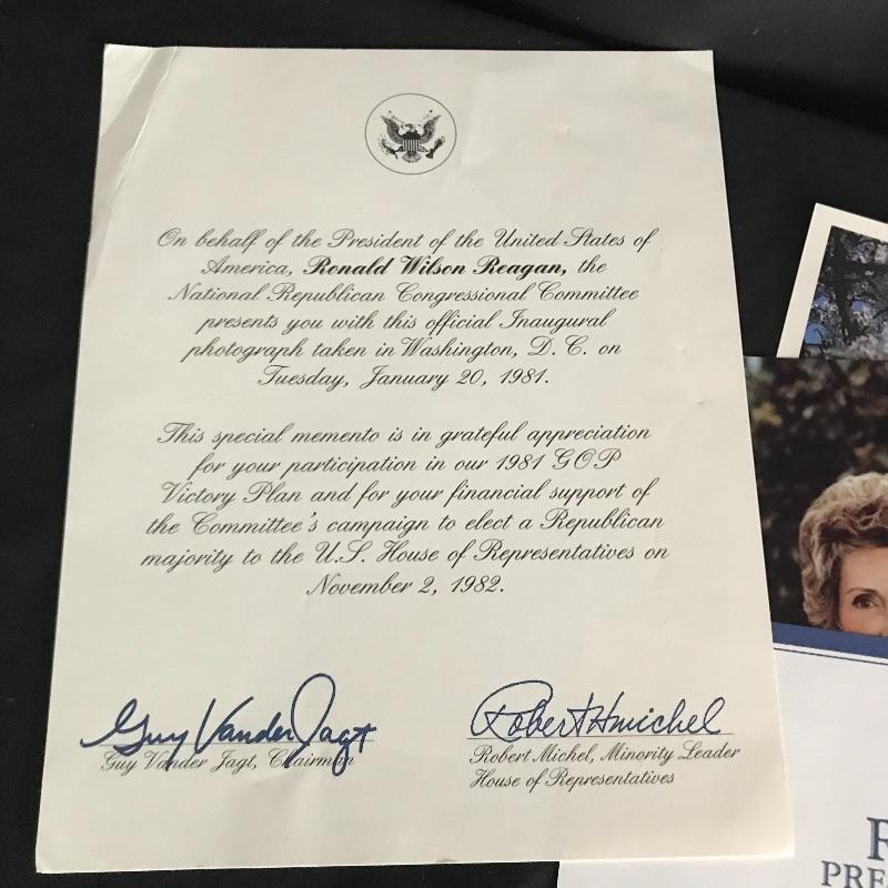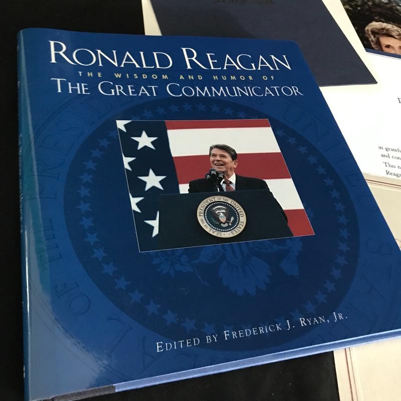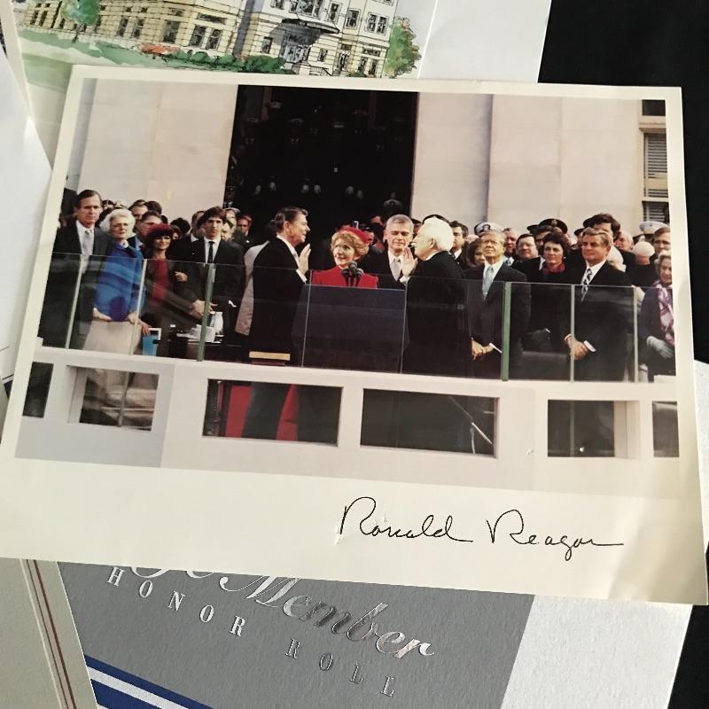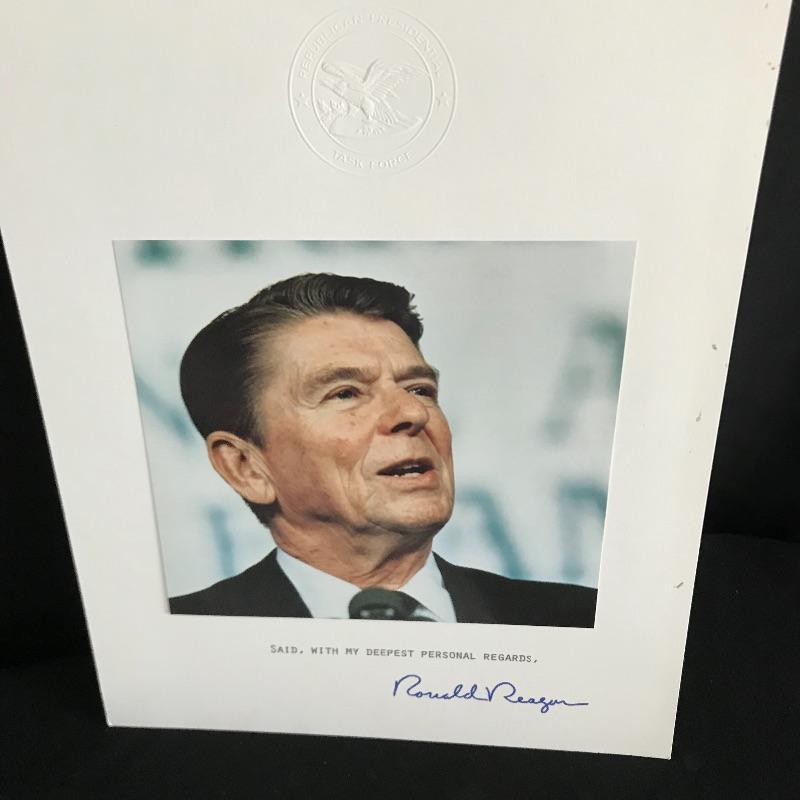 Attention all patriots, this great collection of Presidential memorabilia is a must for anybody. Included are signed photos of Ronald Regan and George Bush, two plates: a presidential gala 10th anniversary and a Bicentennial bald eagle, several republican Presidential Task Force membership certificates, and a book titled “Ronald Reagan: The Wisdom and Humor of The Great Communicator.” See images.