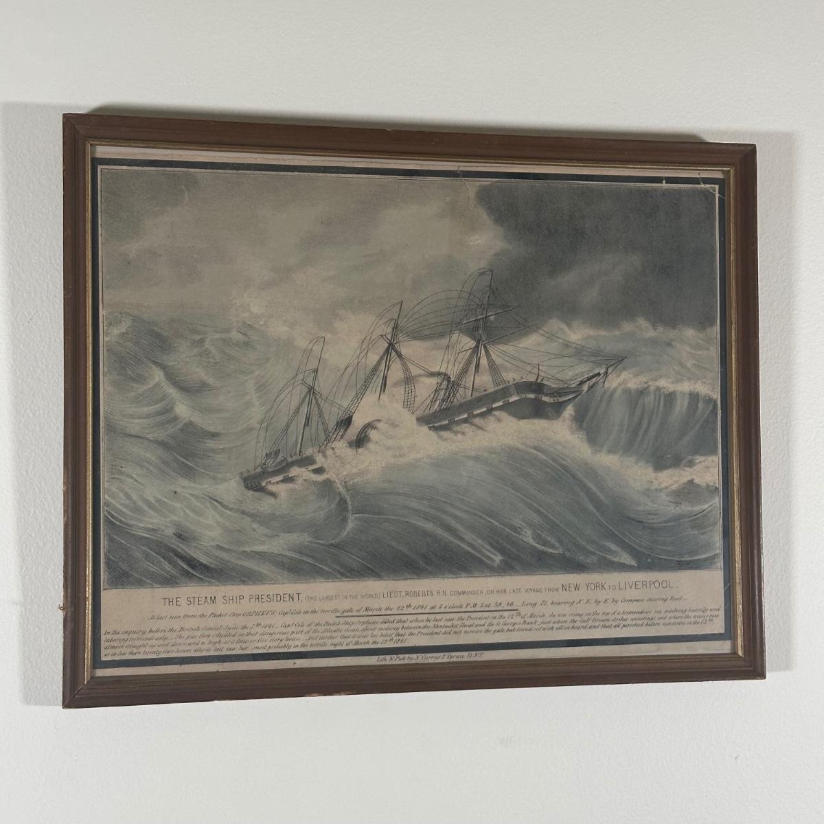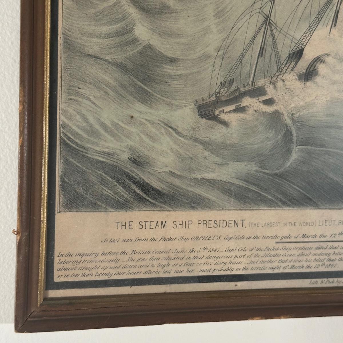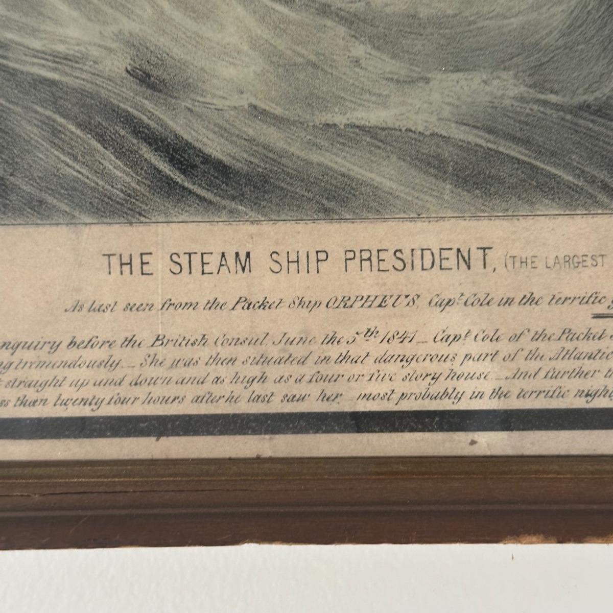 LOT 326Y: Nathaniel Currier Antique Lithograph: The Steamship President The Largest In The World