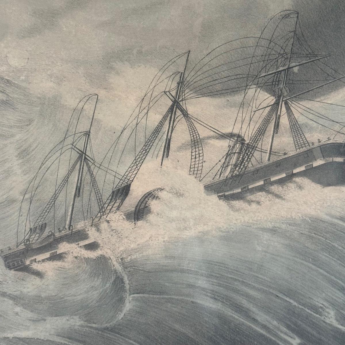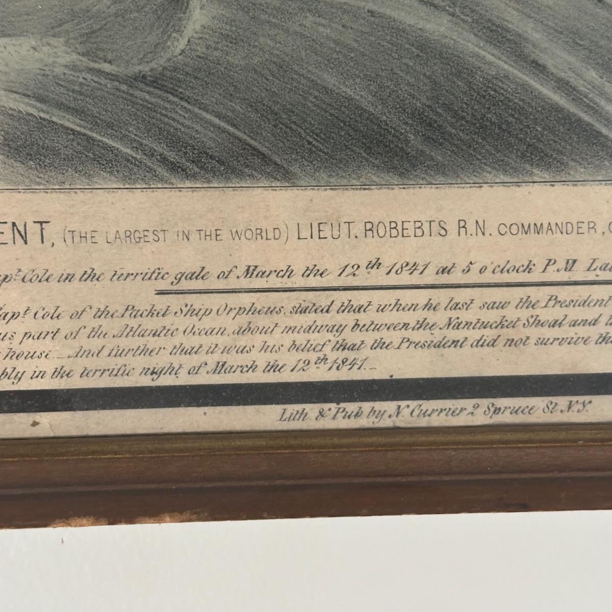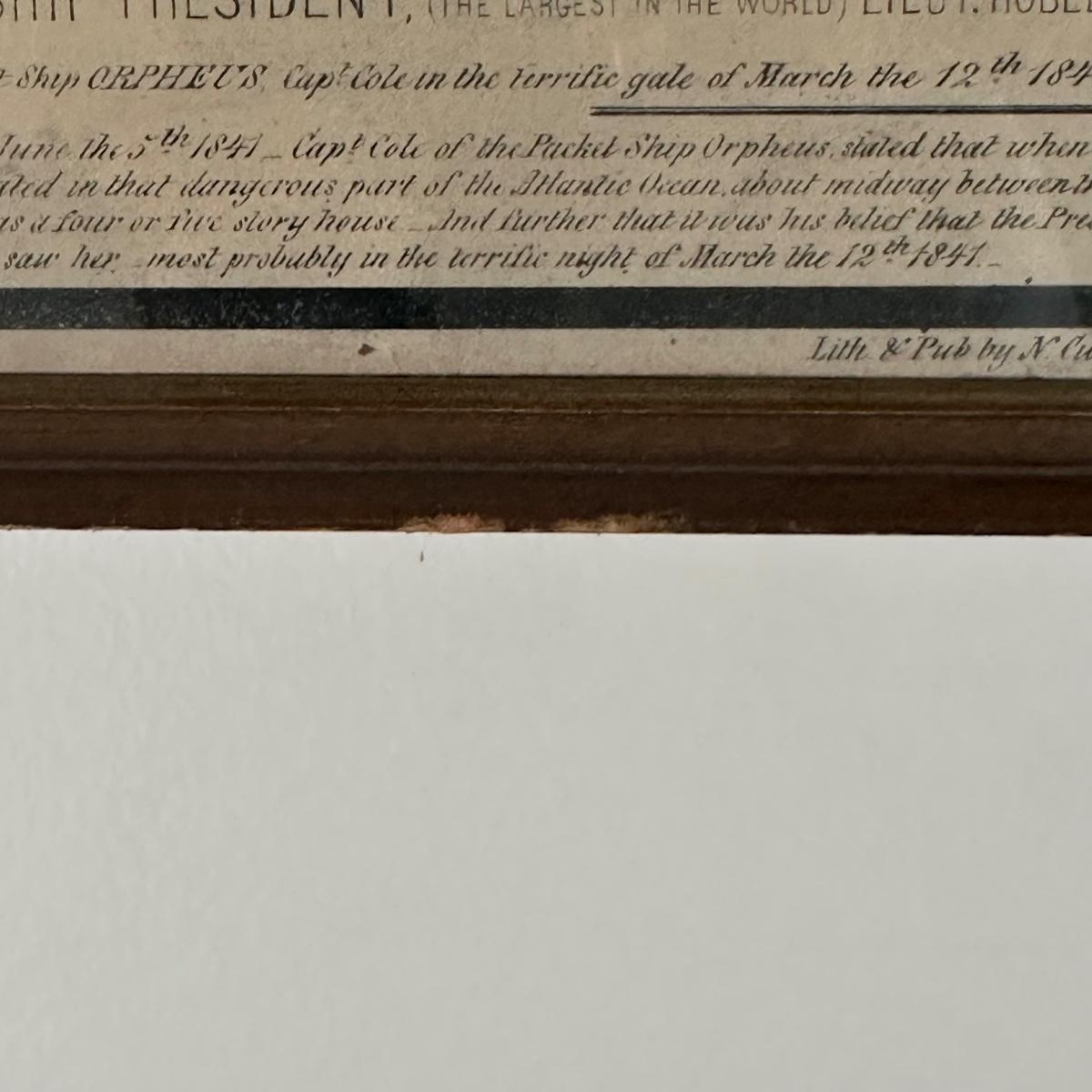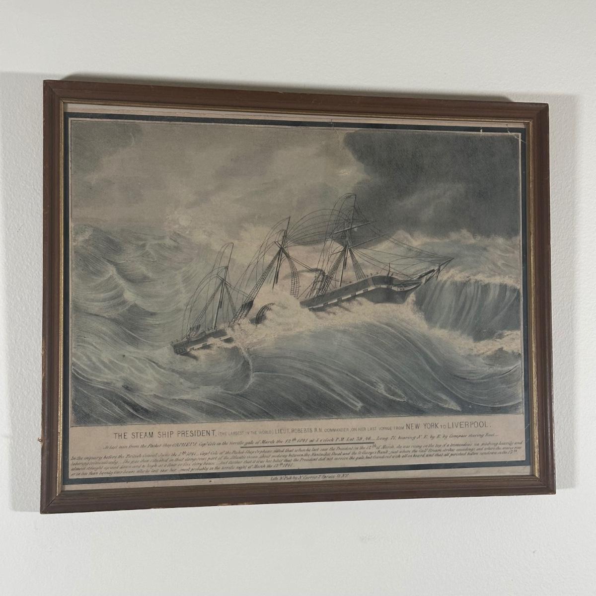 LOT 326Y: Nathaniel Currier Antique Lithograph: The Steamship President The Largest In The World