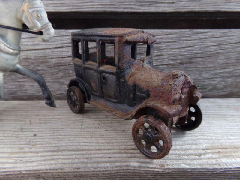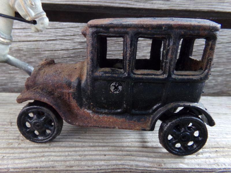 CAST VEHICLE THAT HAS LOST SOME OF IT'S PAINT AND IS RUSTY