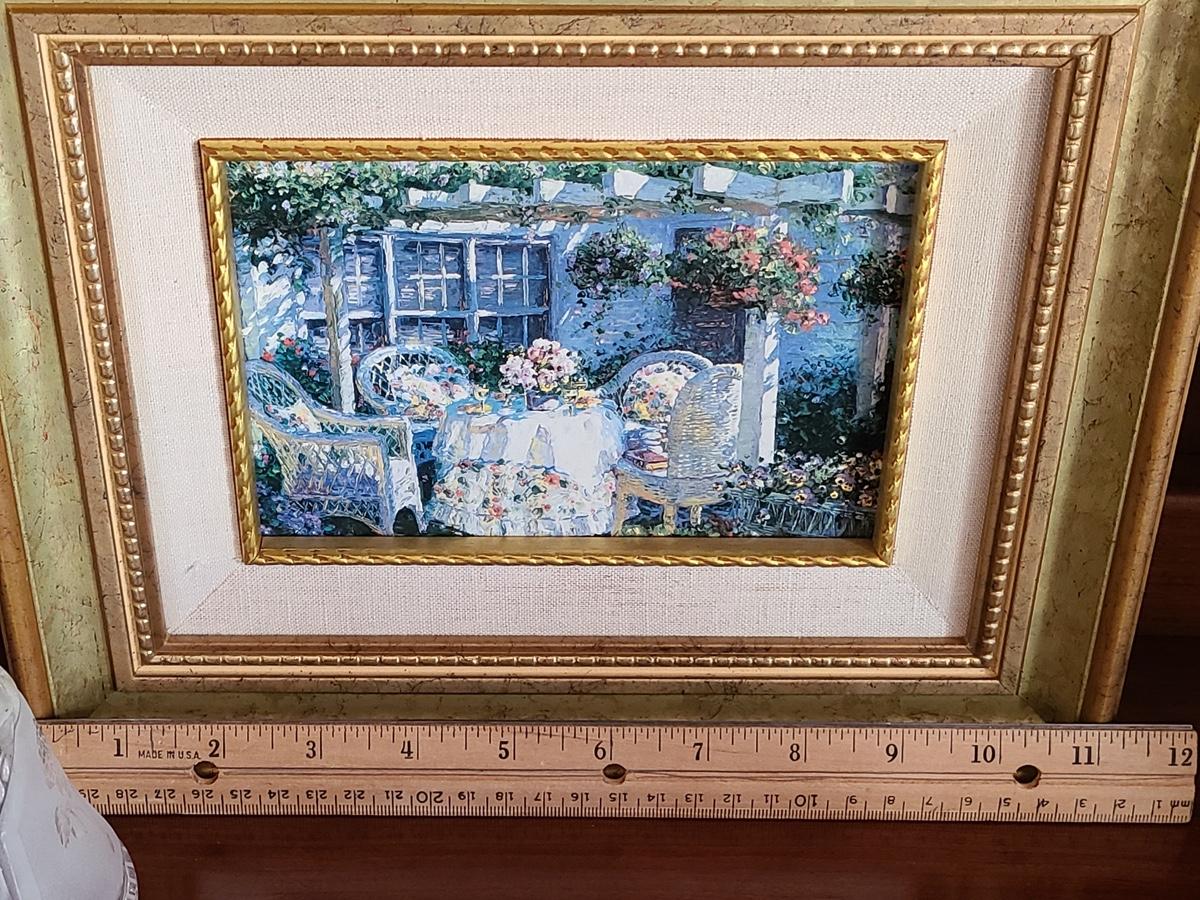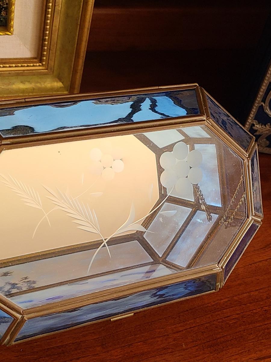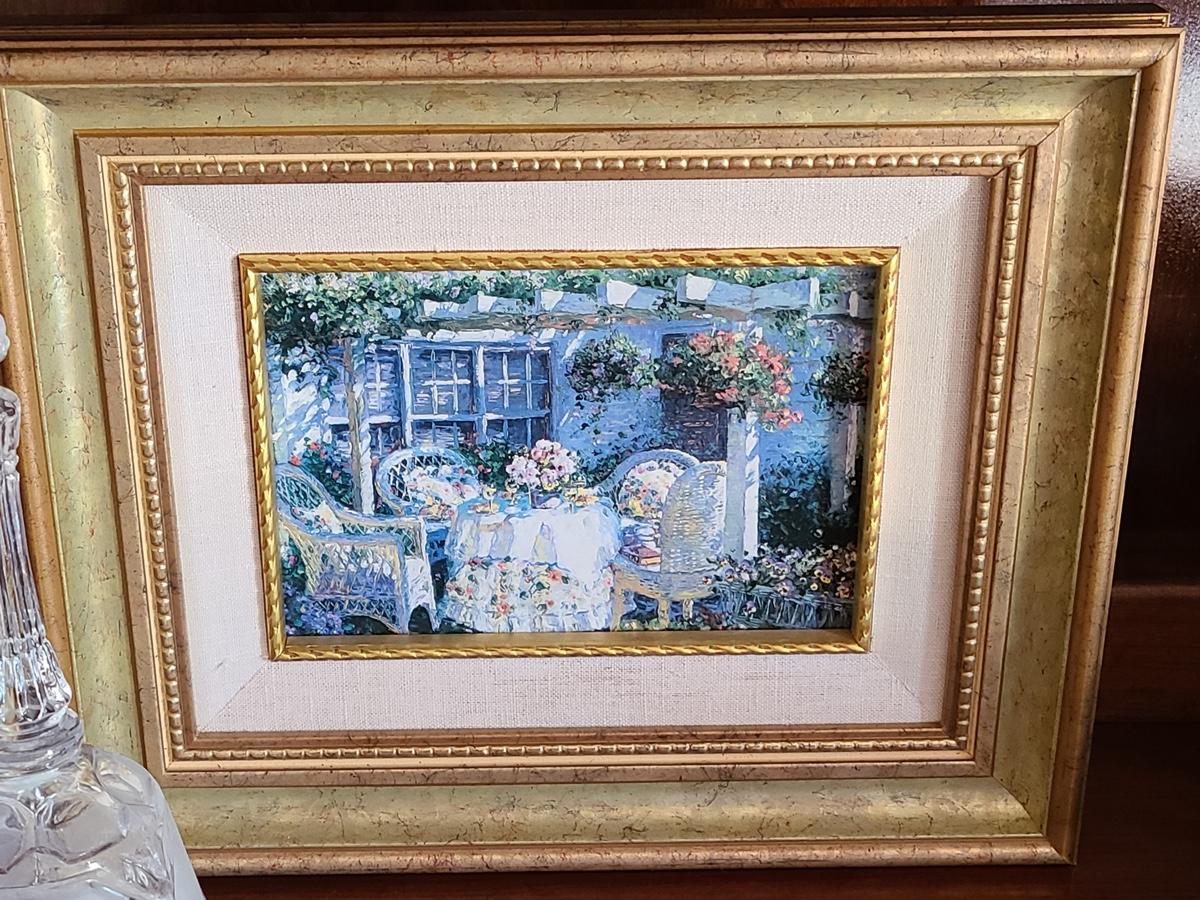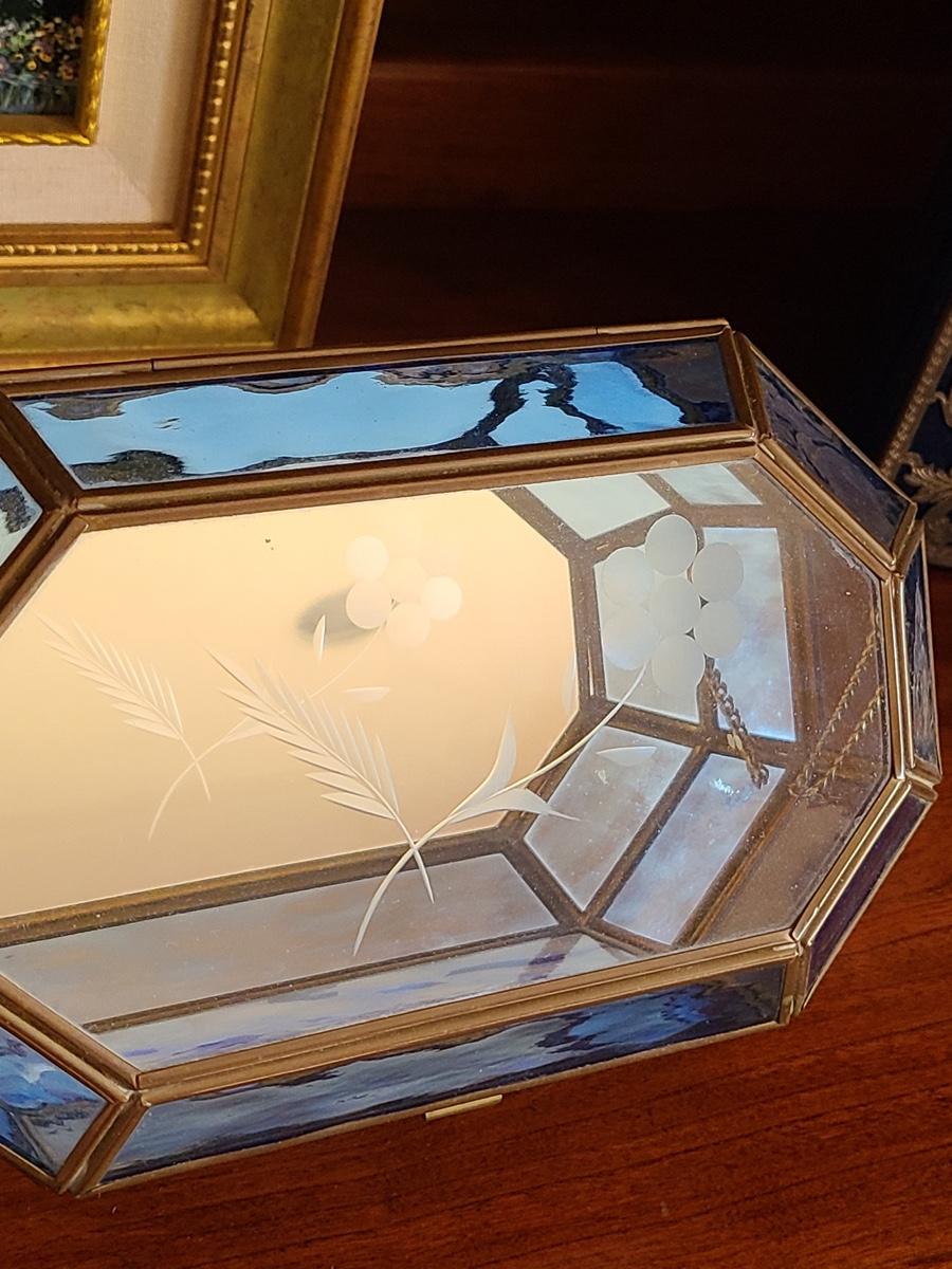 This is a lovely lot of home decor including a small painting on canvas in gold frame, a blue glass/etched floral mirrored jewelry box, crystal bell and more! Please see all pictures as they are the best representation of the items in the lot, the condition of the lot, and will show measurements if taken. If purchasing furniture you must be able to move yourself with your own help, and truck. .