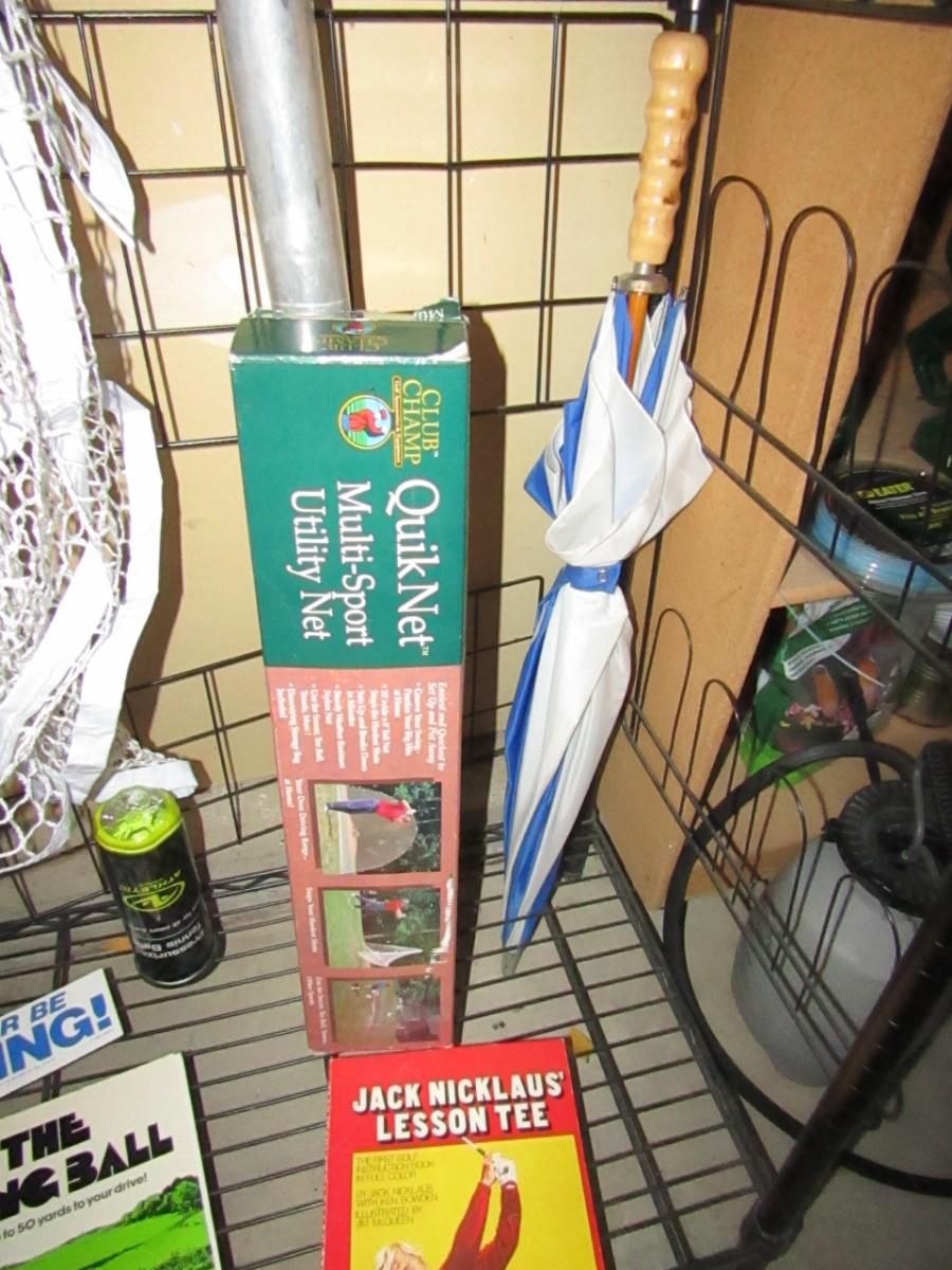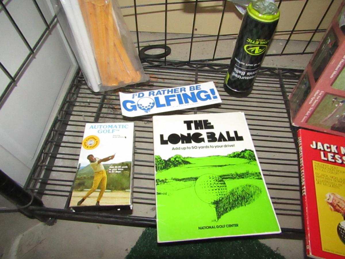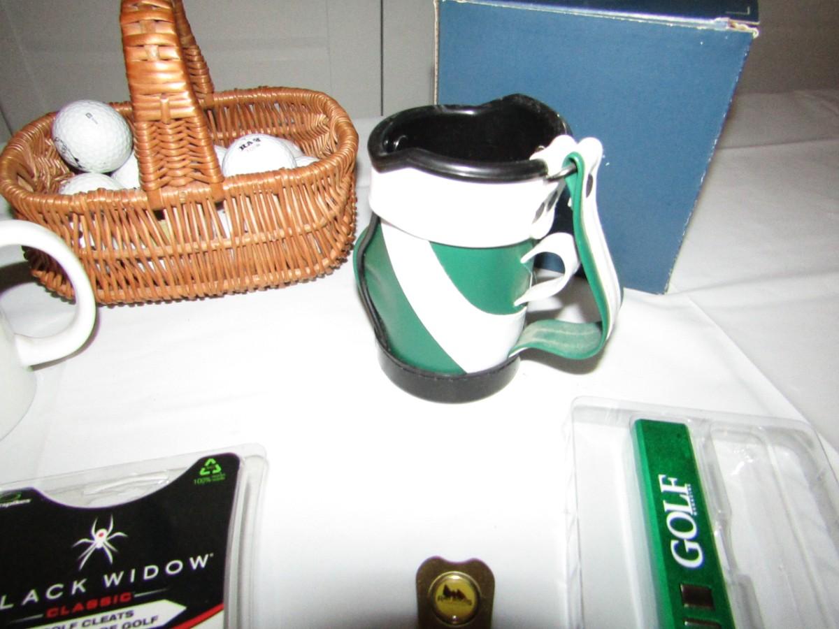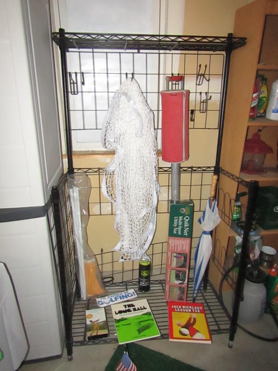 GOLF GIFTS, MEN'S GOLF SHOES SIZE 12, GOLF NETS, METAL ORGANIZER AND MORE
