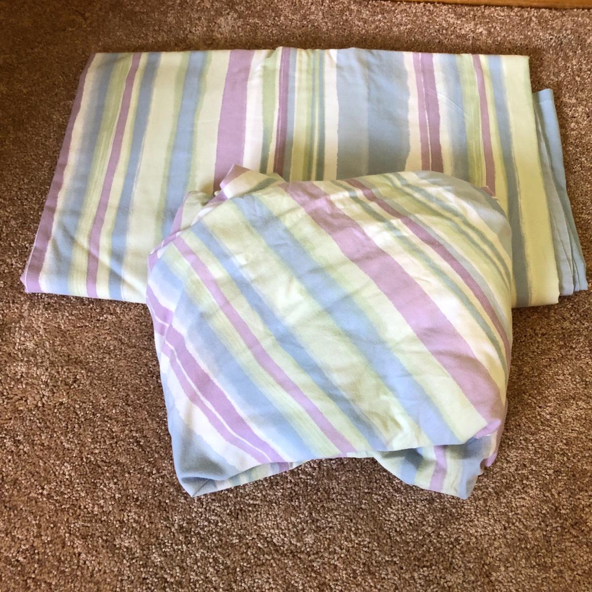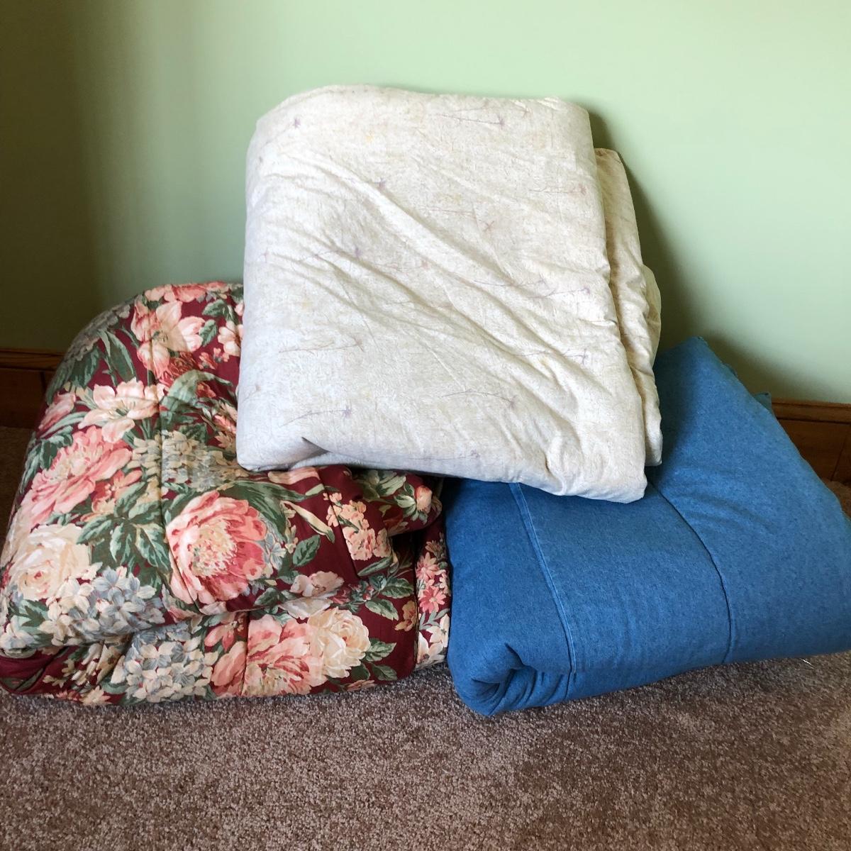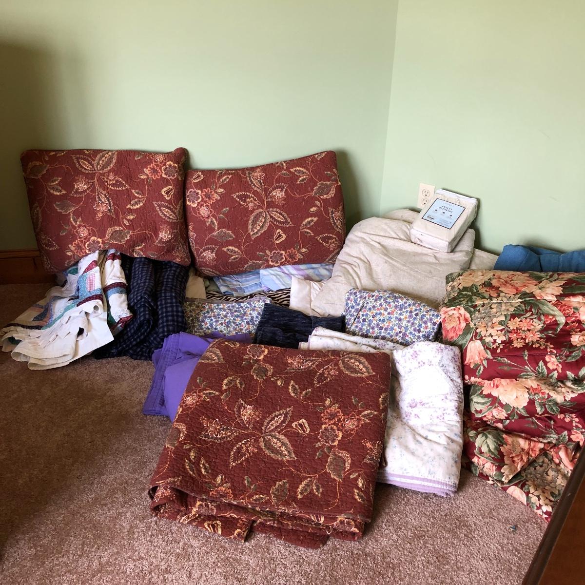 You can have bedding for lots of rooms in your home with this large bedding lot. Lot includes two queen size Ralph Lauren comforters, duvet cover, comforters, sheet sets, electric zebra blanket, quilt style comforter and more. Comforters and sheet sets are double/queen. Largest comforter measures 96” x 100”.