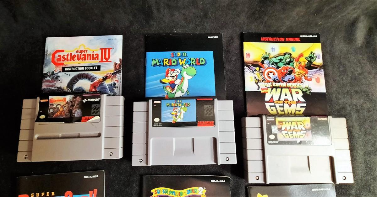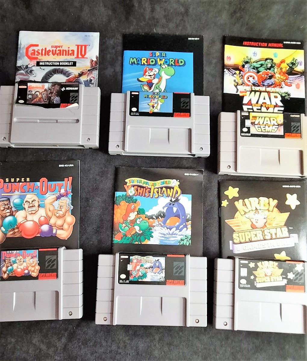 Games: Super Castlevania VI, Super Mario World, Marvel Super Heroes War of the Gems, Super Punch-Out, Super Mario World 2 / Yoshi's Island, & Kirby Super Star (And Games In One)