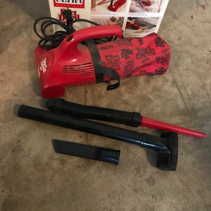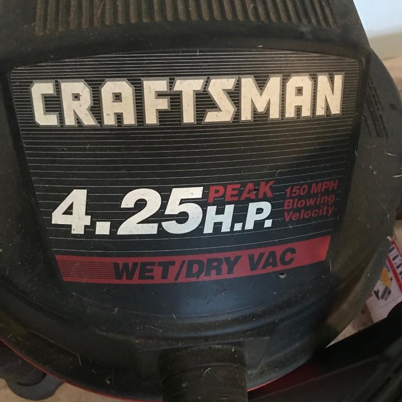Twelve gallon 4.25 peak Craftsman Wet/Dry Vac. Machine appears to work well and is equipped with three attachment accessories. Paired up with the Craftsman is a Ultra Hand Vac Dirt Devil. Dirt Devil works well, but has a moth ball odor and evidence of cat hair. It is possible a good cleansing and purging the collection bag will make it like new again, motor sounds fine when plugged in. See photos. No shipping.