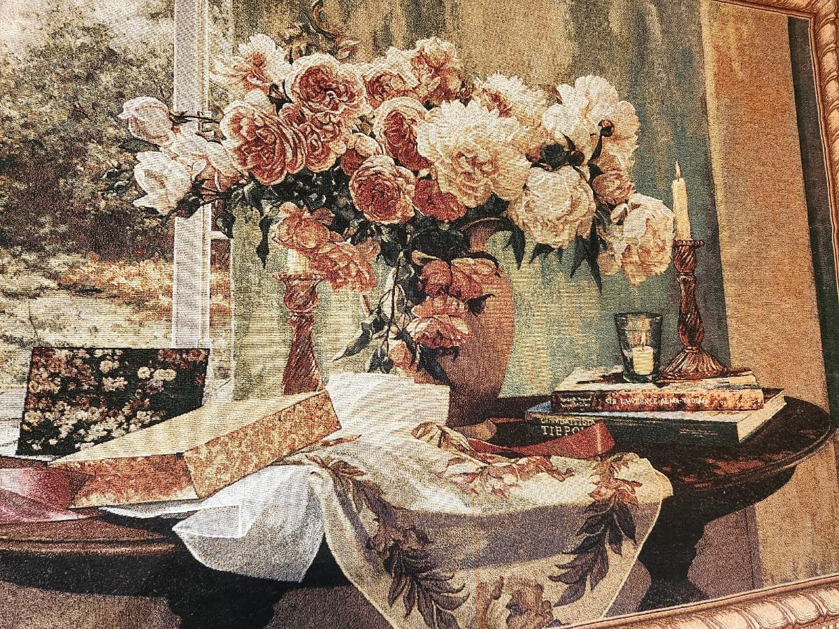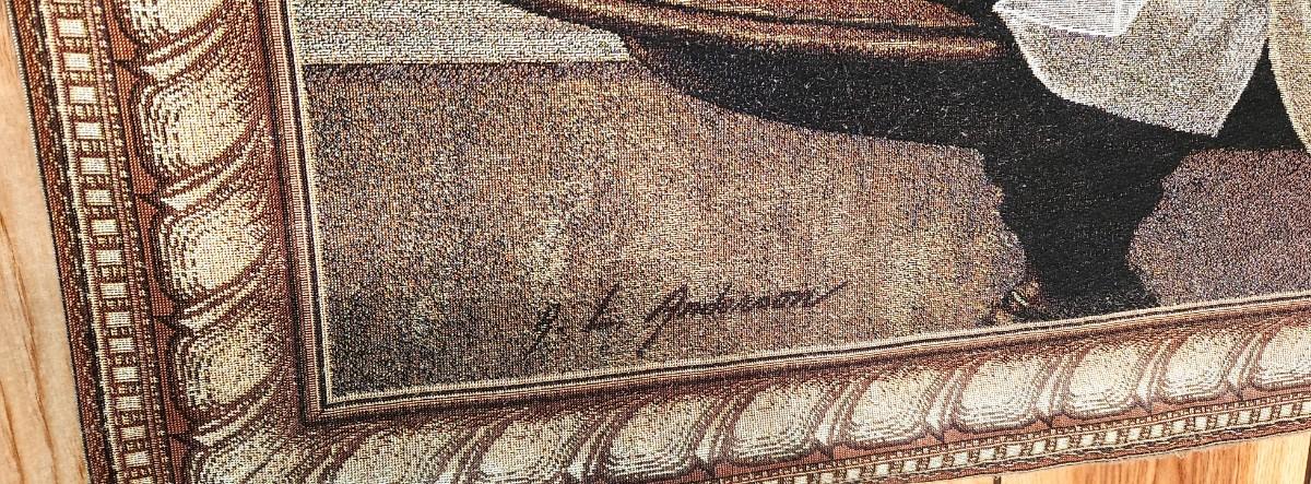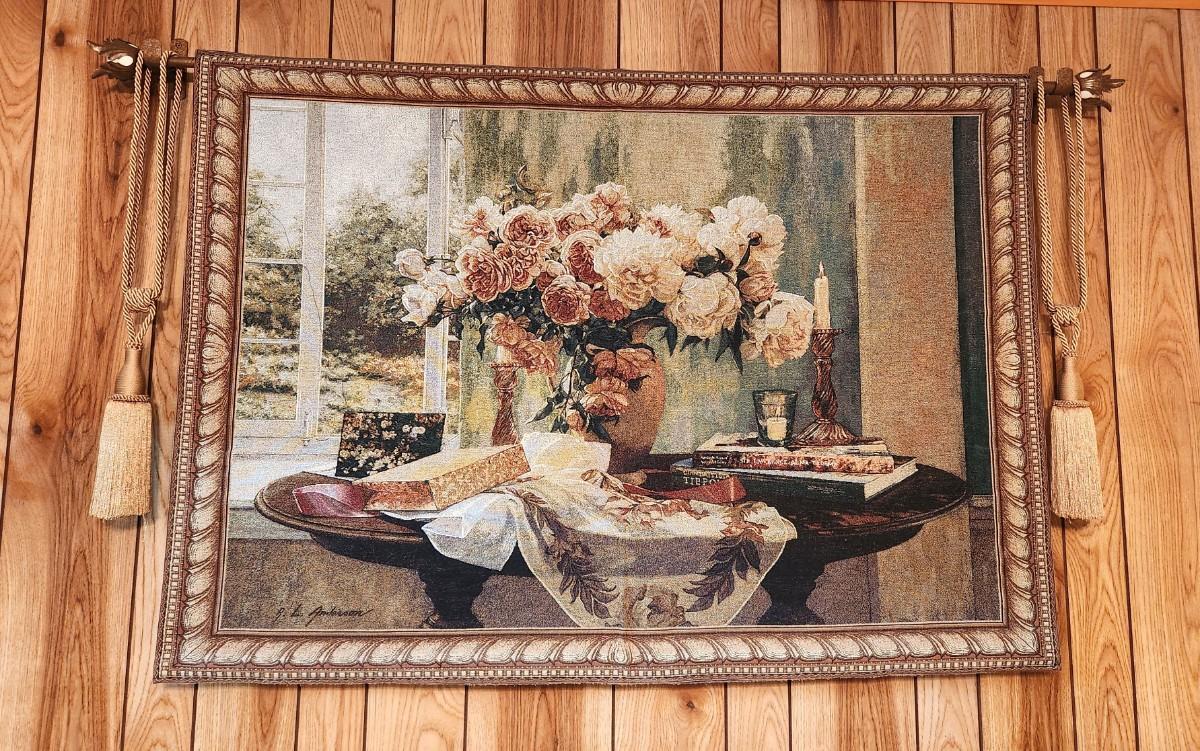 Decorative Tapestry on Rod, signed, 64" across with rod, 38" tall. You get all hardware. Buyer responsible for taking down from wall.
