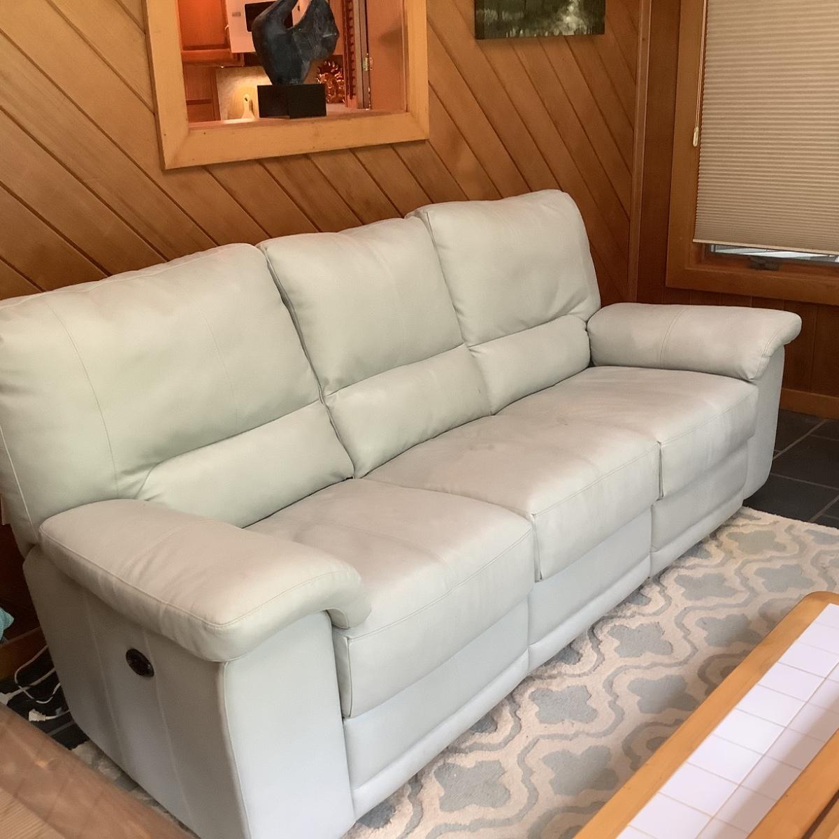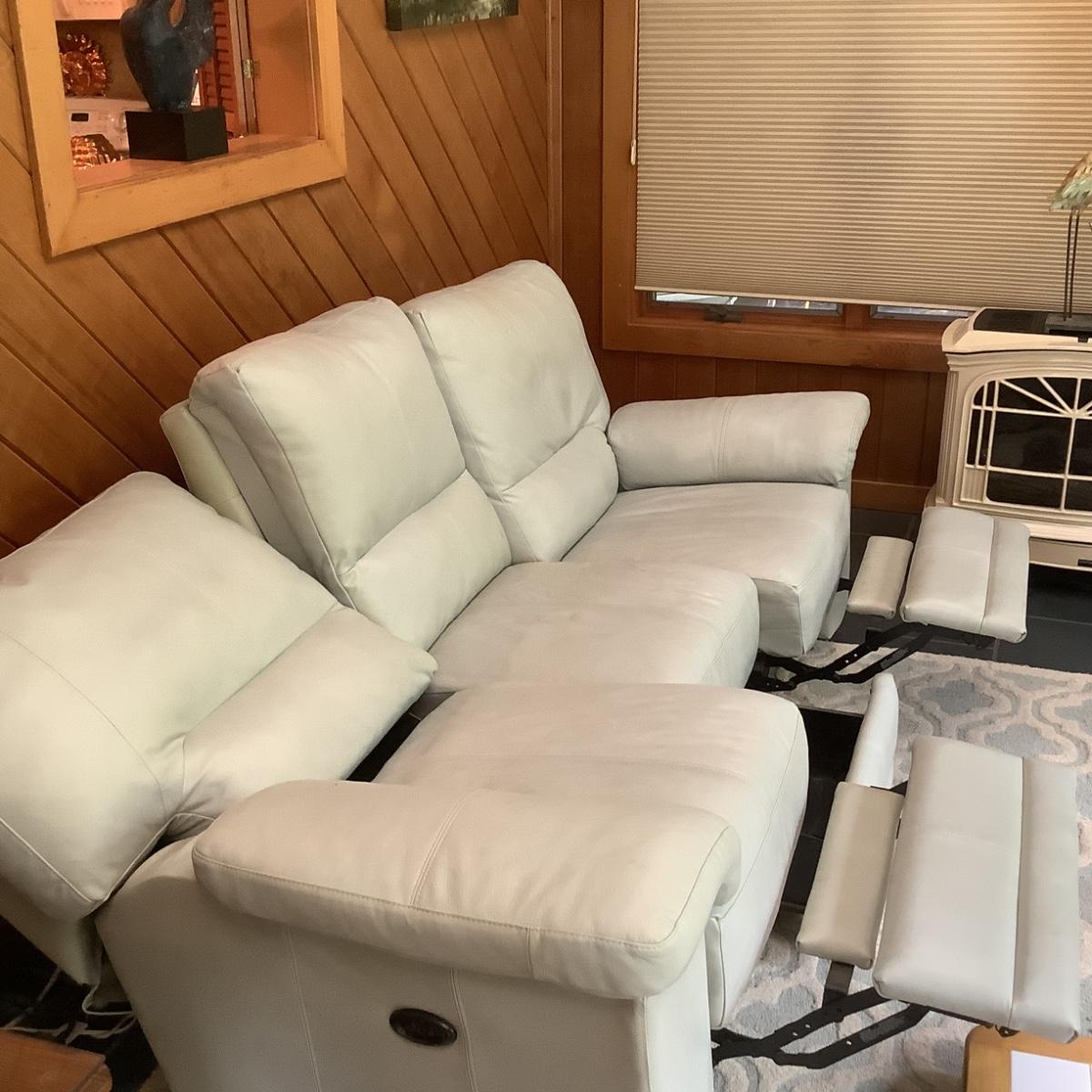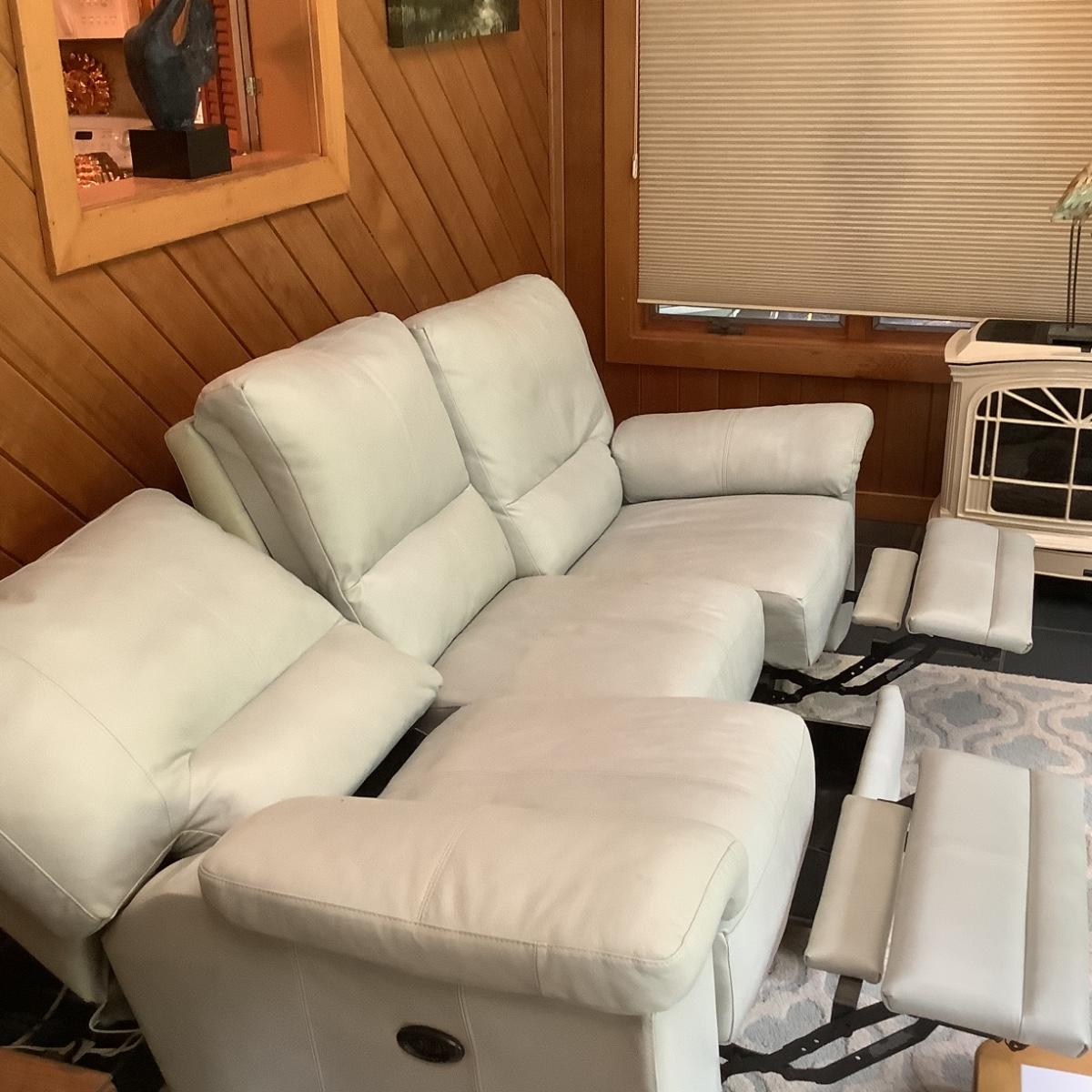 Lot 328. Elran “ Lillian “ Vegan Leather Dual End Reclining Sofa ( powered controls )