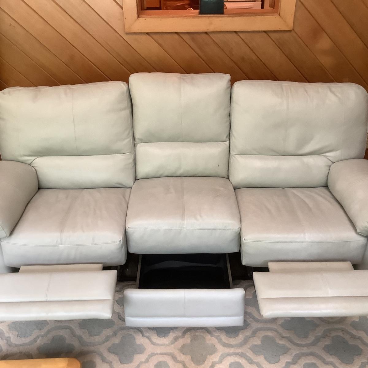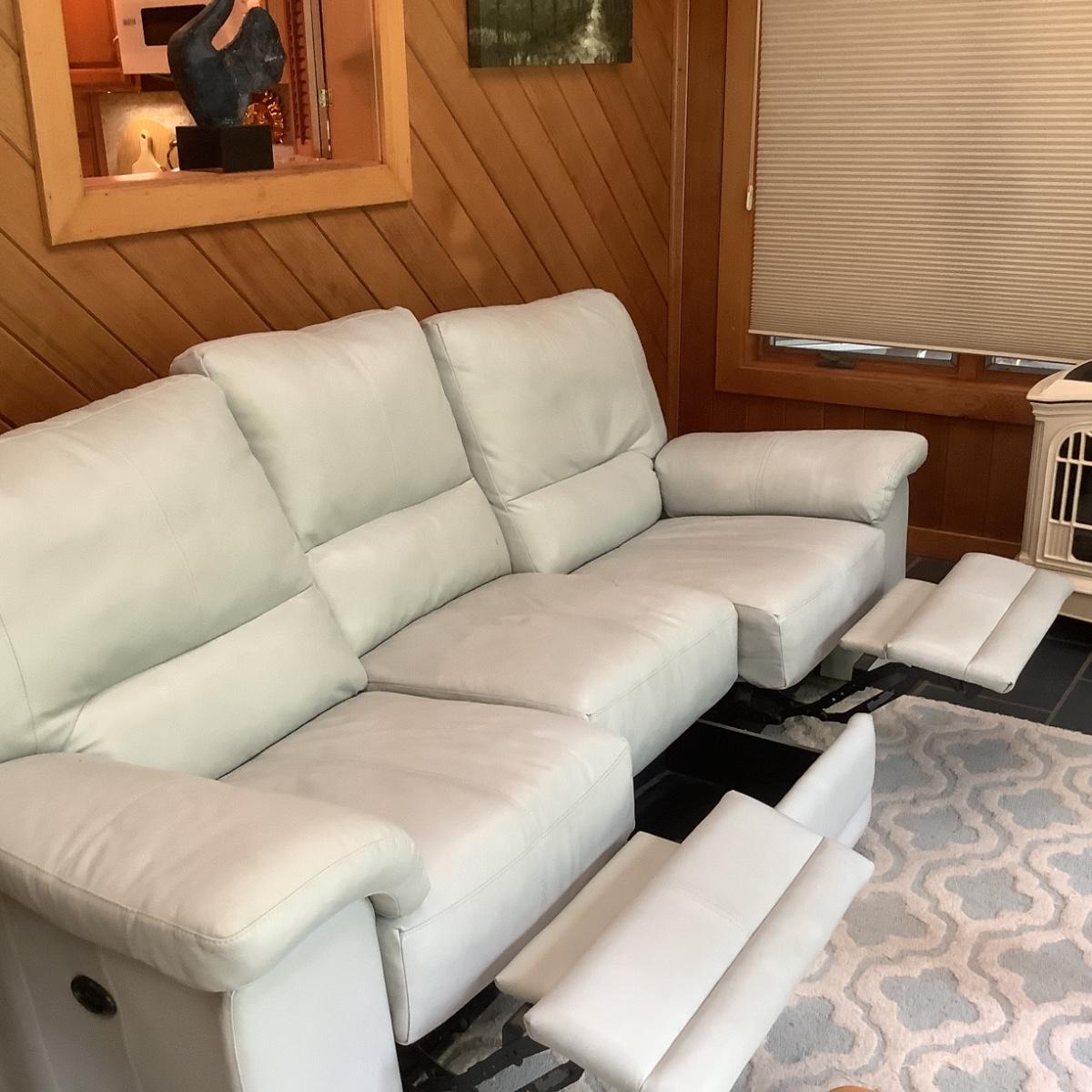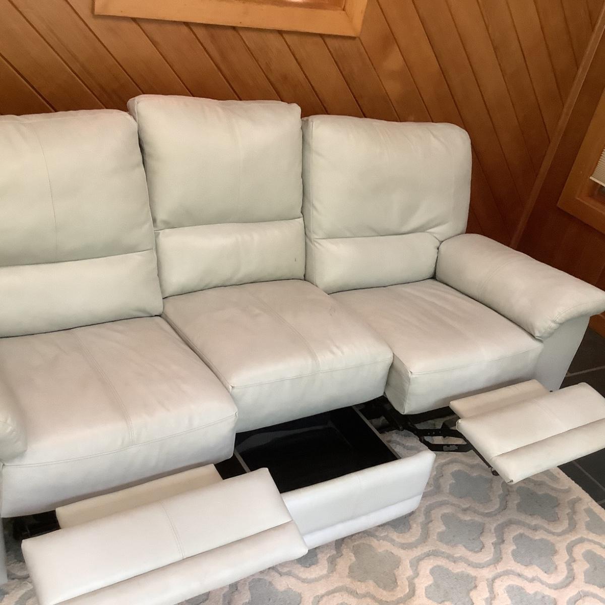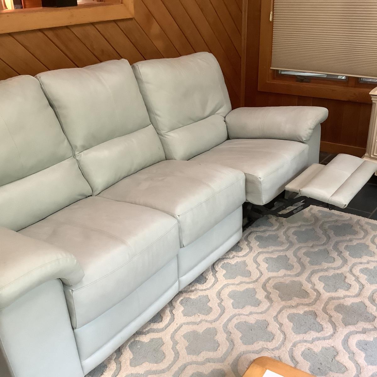 Lot 328. Elran “ Lillian “ Vegan Leather Dual End Reclining Sofa ( powered controls )