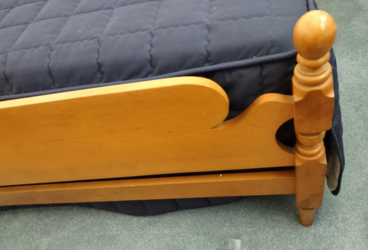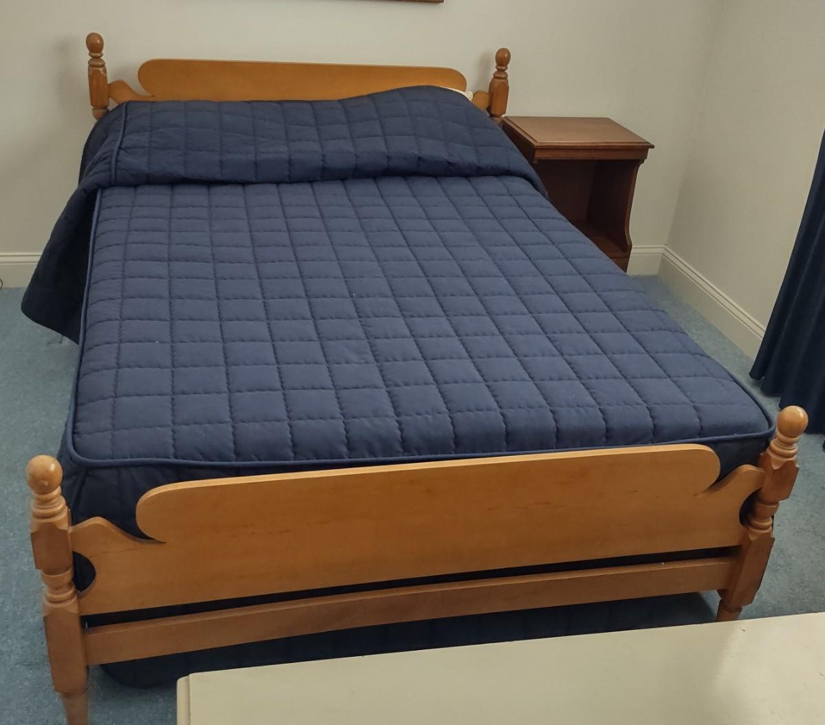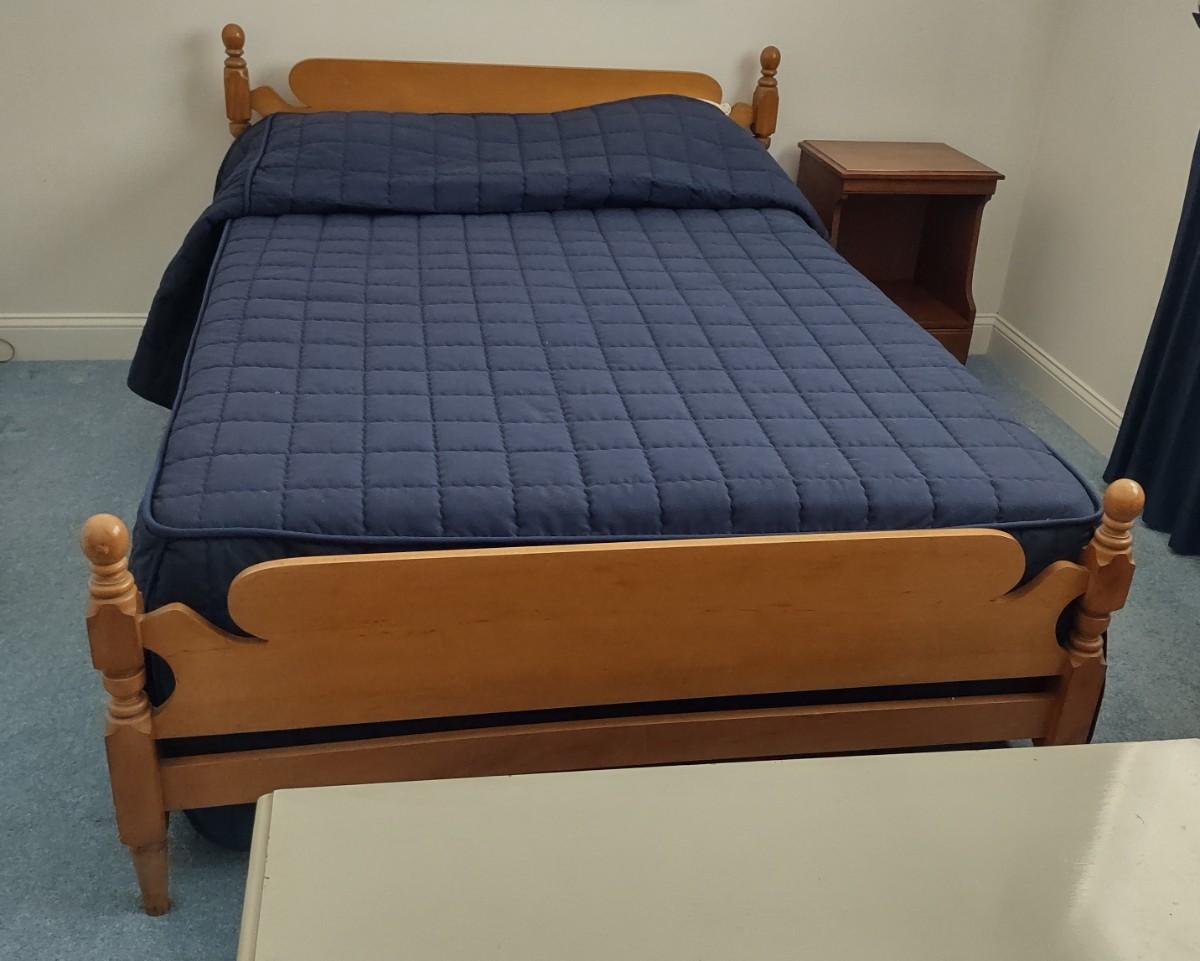 Full Size Bed Frame With Night Stand 18×15×26. Mattress is older (shows wear/stains) and is optional. Please see all pictures as they are the best representation of the items. The pictures show condition, measurements if taken, and what is included in the lot. Due to the large amount that we photograph and the time frame, we are not always able to take measurements. All items unless noted, are pre-owned and have been used. If you purchased furniture, you must bring help. We do not allow one person to carry large furniture out on their own. Bring help, tools and a truck for the safety of our client’s homes, and your personal safety. Company policy. Thank you.