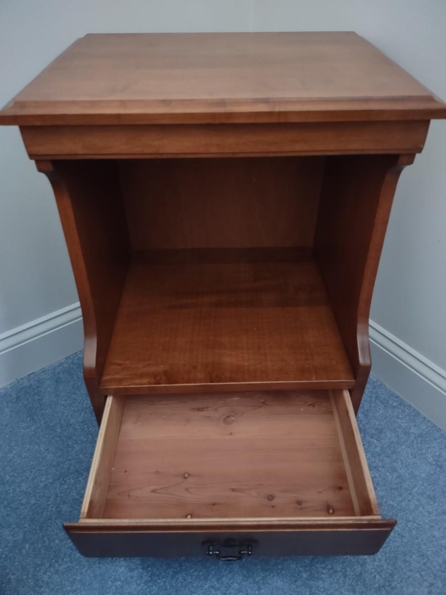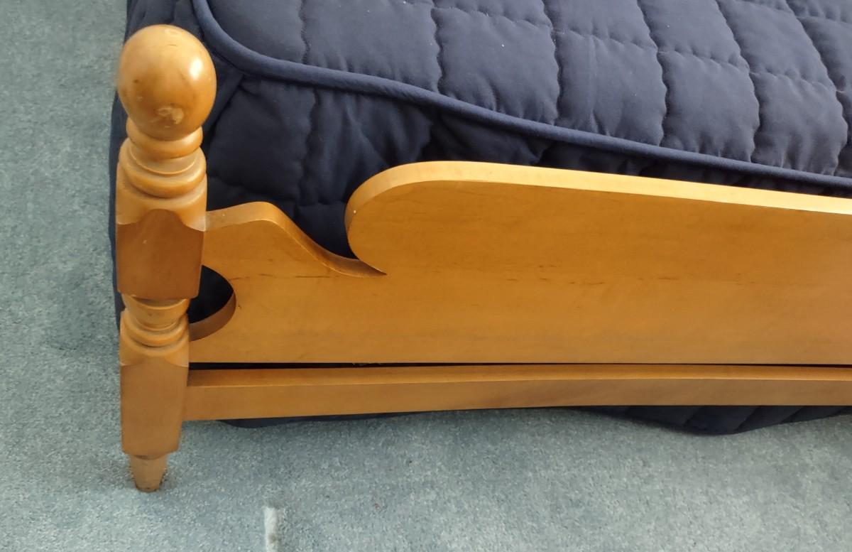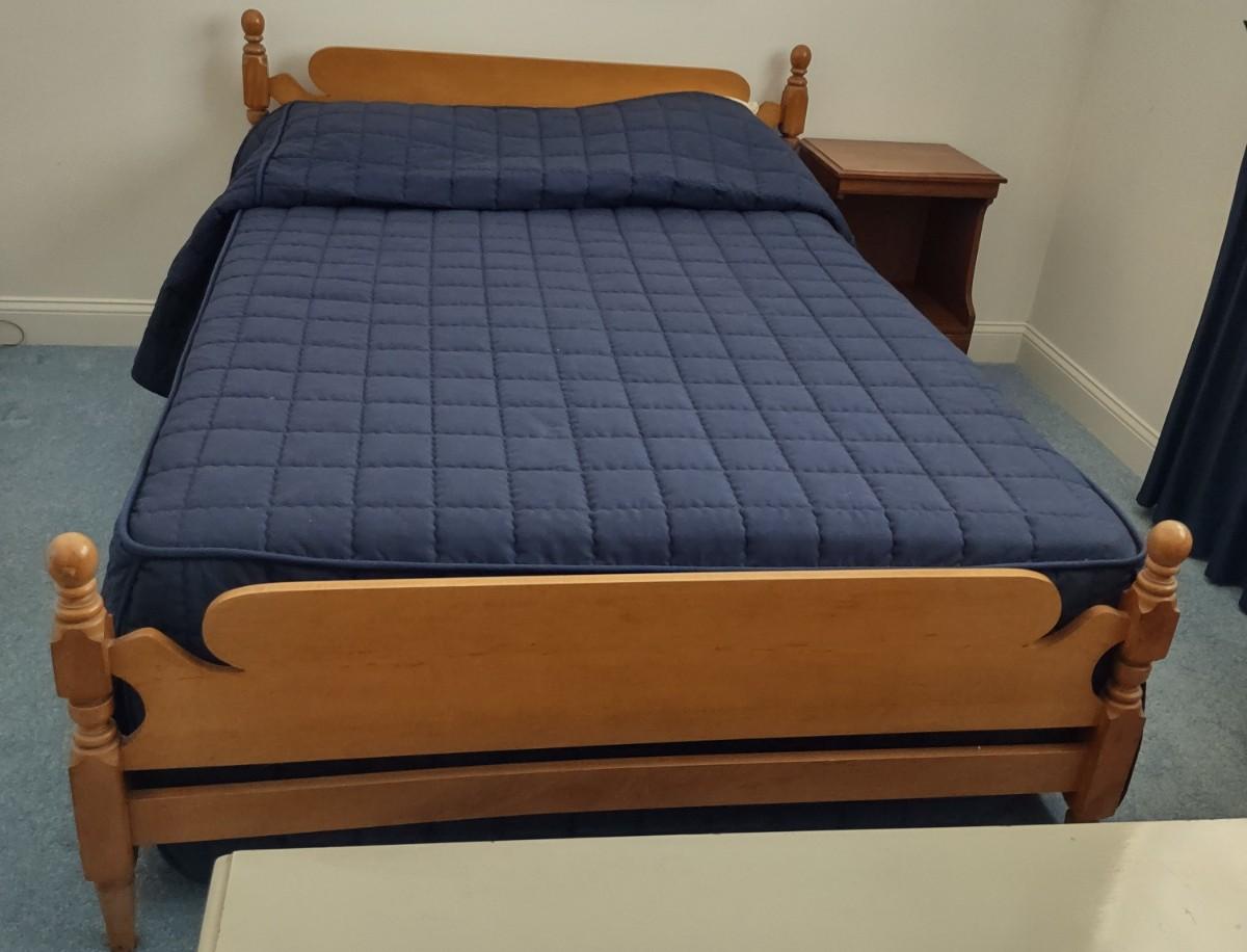 Full Size Bed Frame With Night Stand 18×15×26. Mattress is older (shows wear/stains) and is optional. Please see all pictures as they are the best representation of the items. The pictures show condition, measurements if taken, and what is included in the lot. Due to the large amount that we photograph and the time frame, we are not always able to take measurements. All items unless noted, are pre-owned and have been used. If you purchased furniture, you must bring help. We do not allow one person to carry large furniture out on their own. Bring help, tools and a truck for the safety of our client’s homes, and your personal safety. Company policy. Thank you.