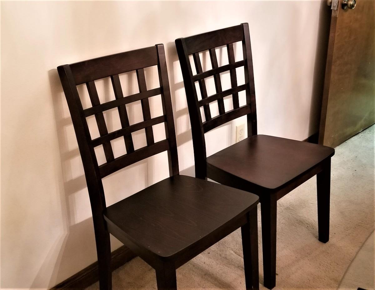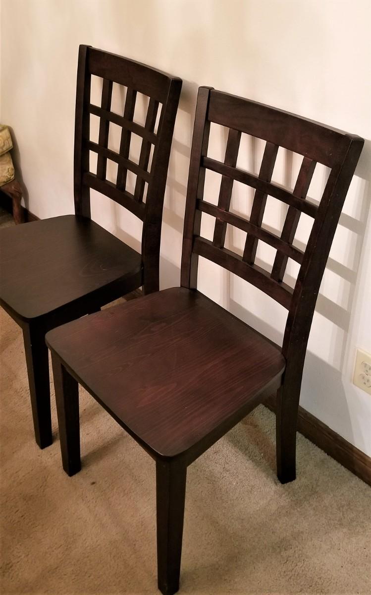 Nice pair of contemporary side chairs - Mission Style. - 20" deep, 18.5" across, 36" tall. Good condition.