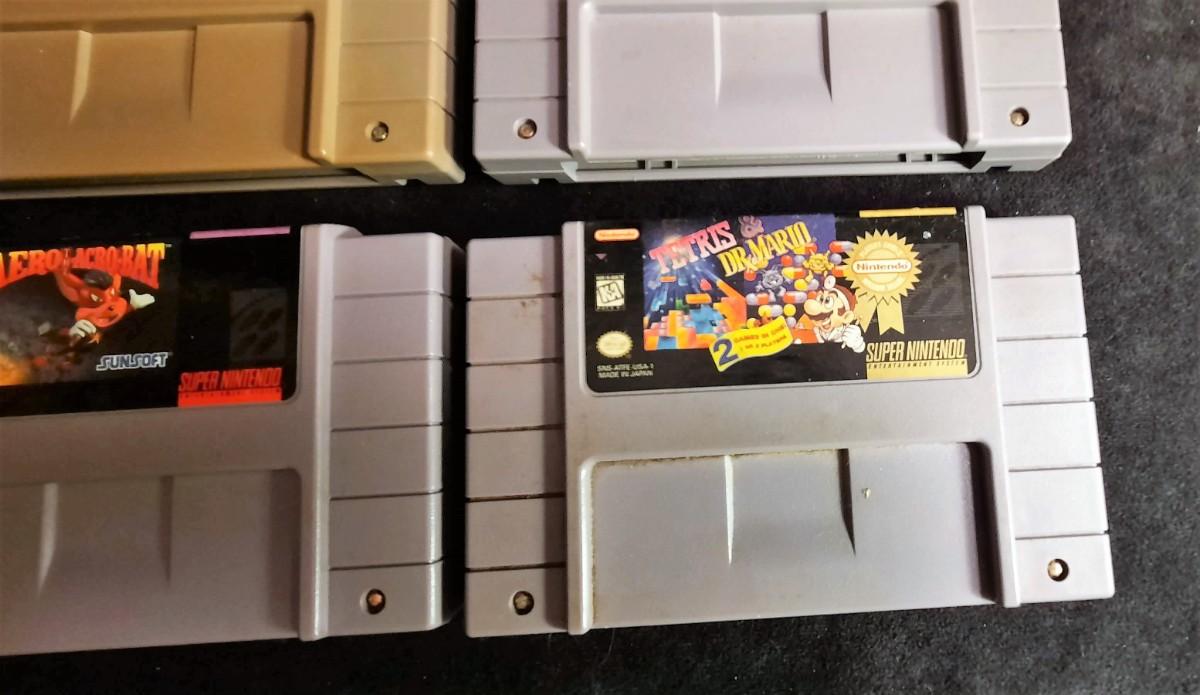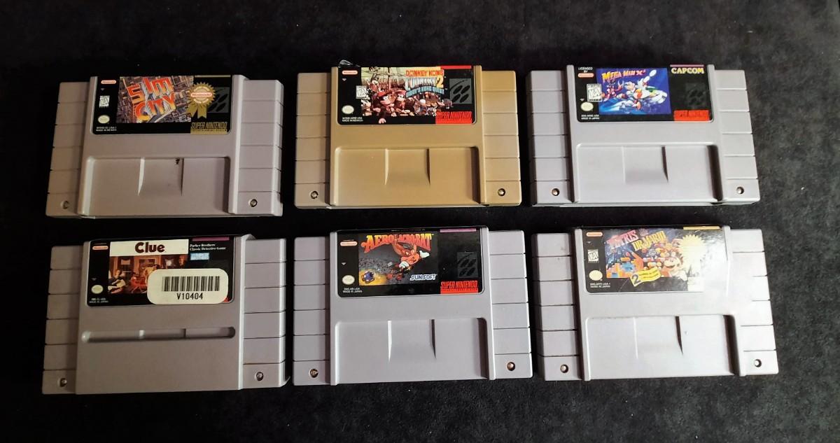 Games: Slim City, Donkey Kong Country 2 Diddy's Kong Quest, Mega Man X, Clue, Aero Acrobat, & Tetris Dr. Mario