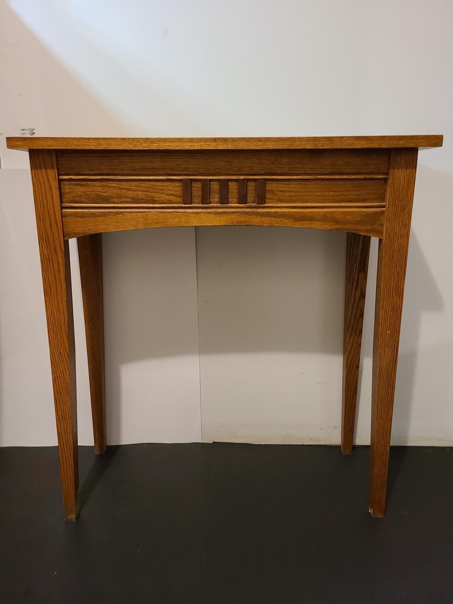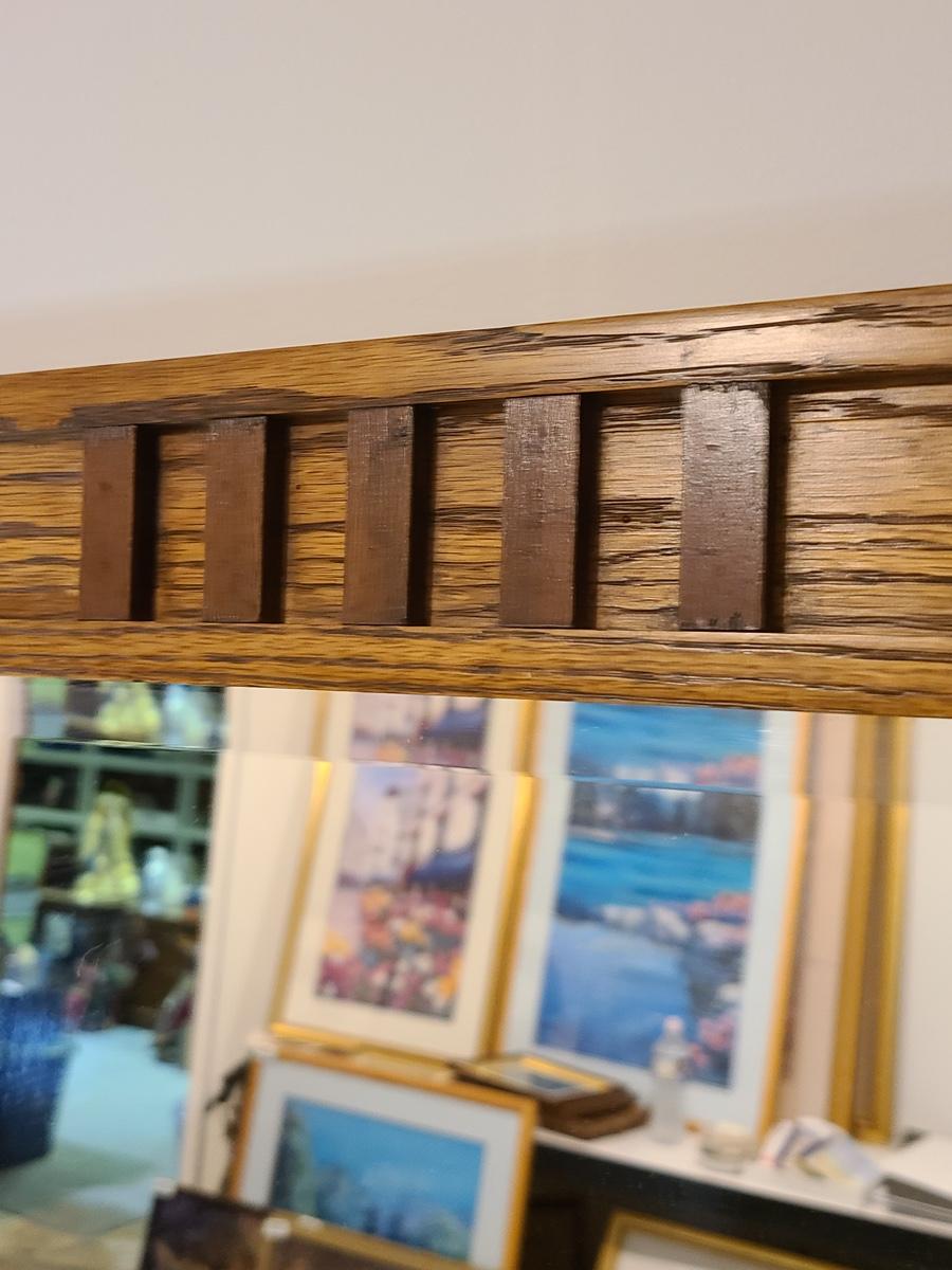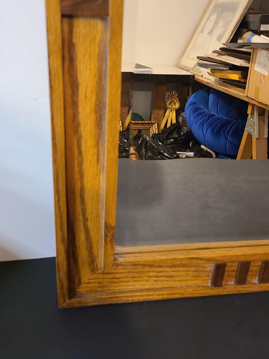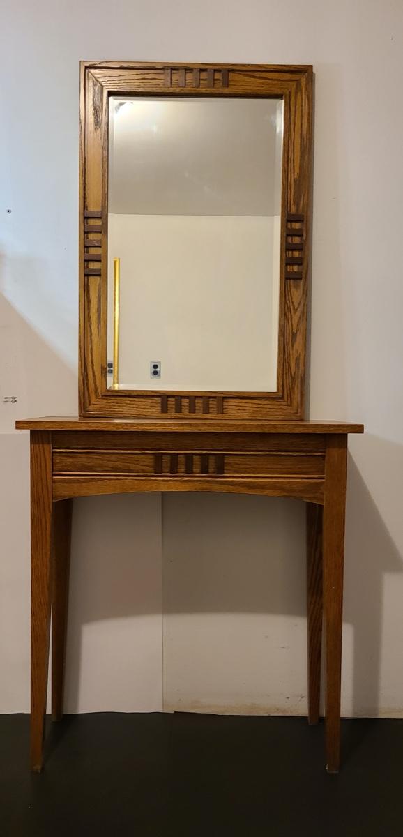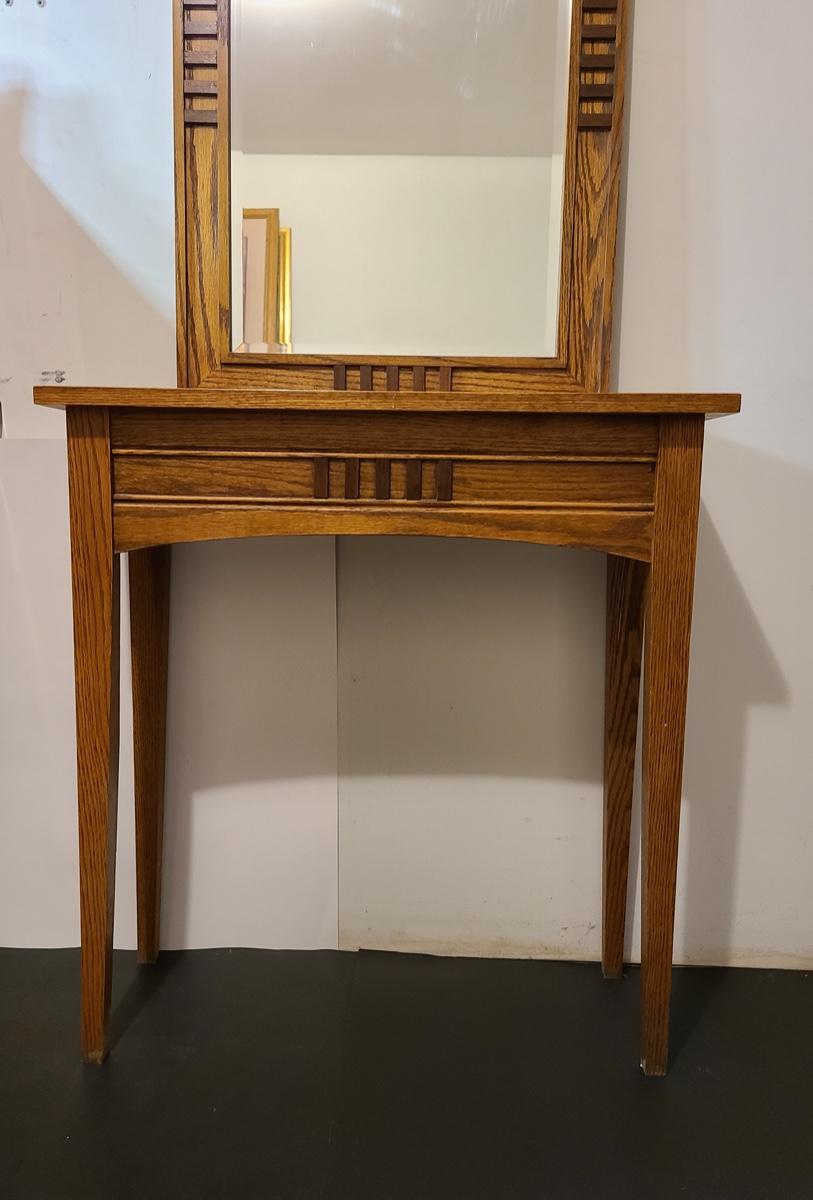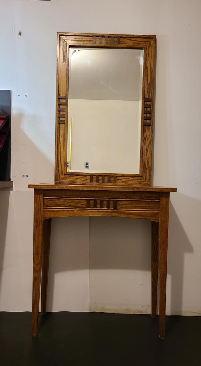 Lot 328: Vintage Mission Style Wood Mirror and Side Table/Stand