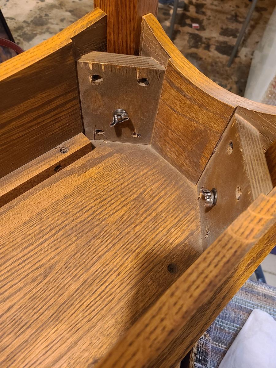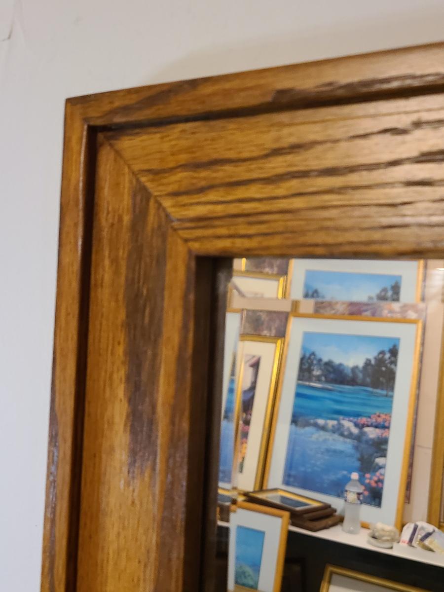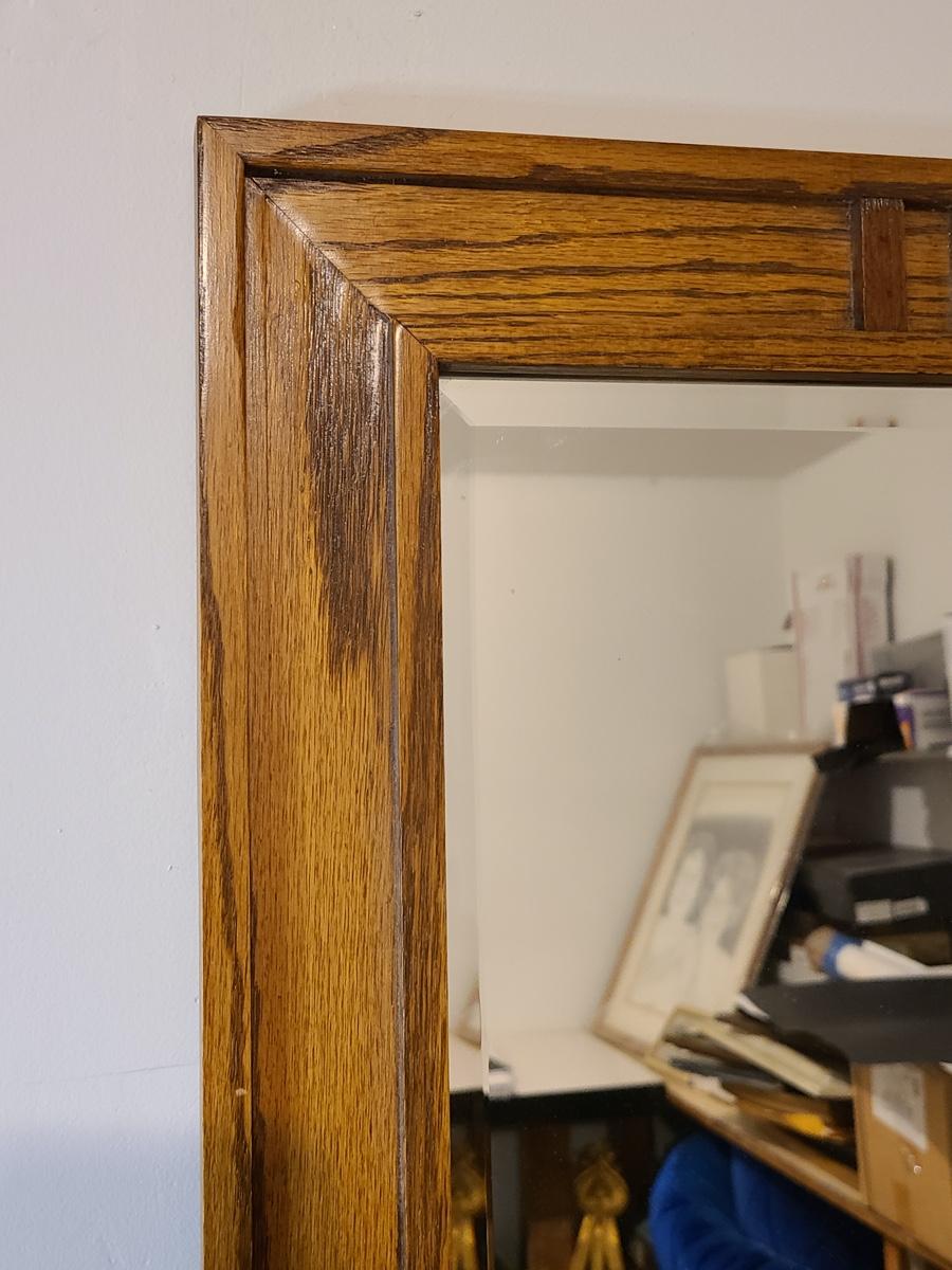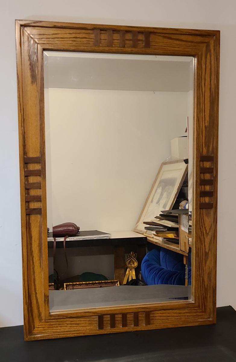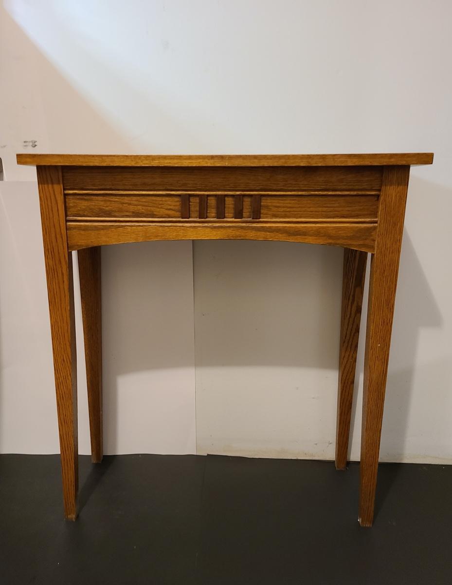 Lot 328: Vintage Mission Style Wood Mirror and Side Table/Stand
