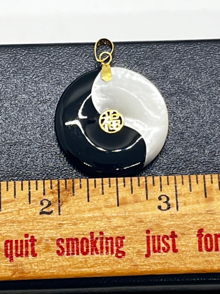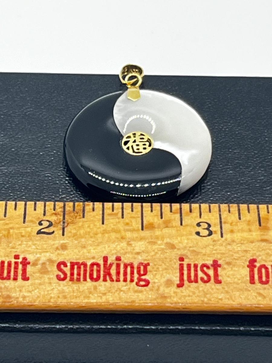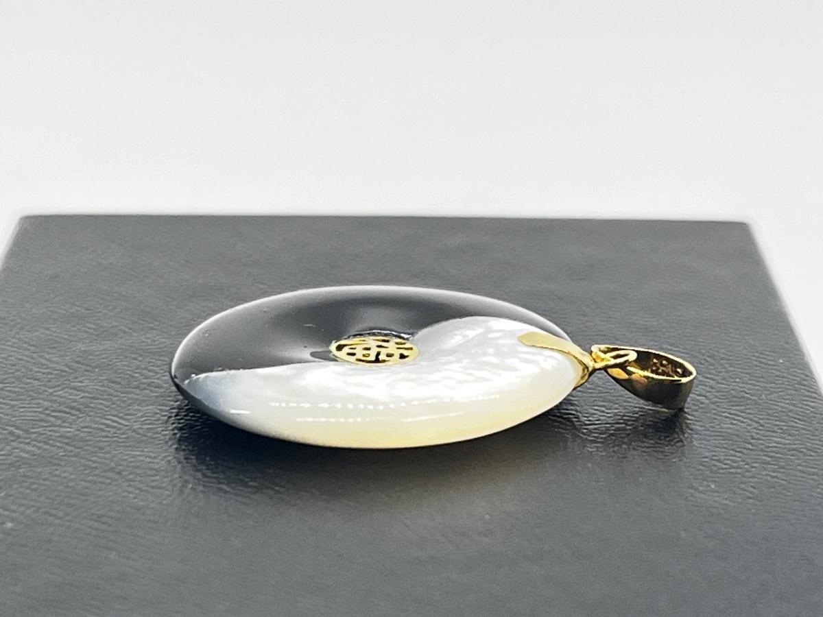 Lot 328J: Yin and Yang 14K Gold and Black Onyx and Mother of Pearl New from Hong Kong Pendant