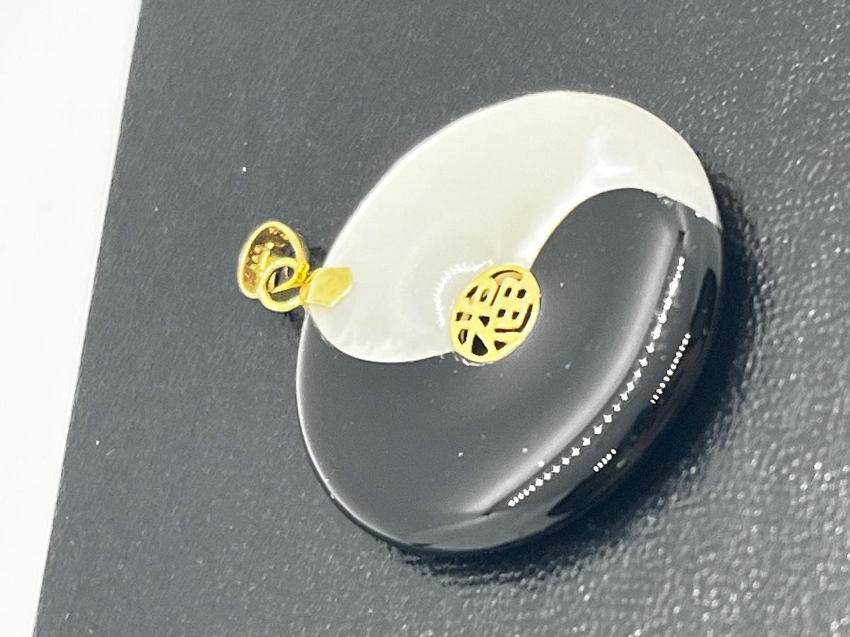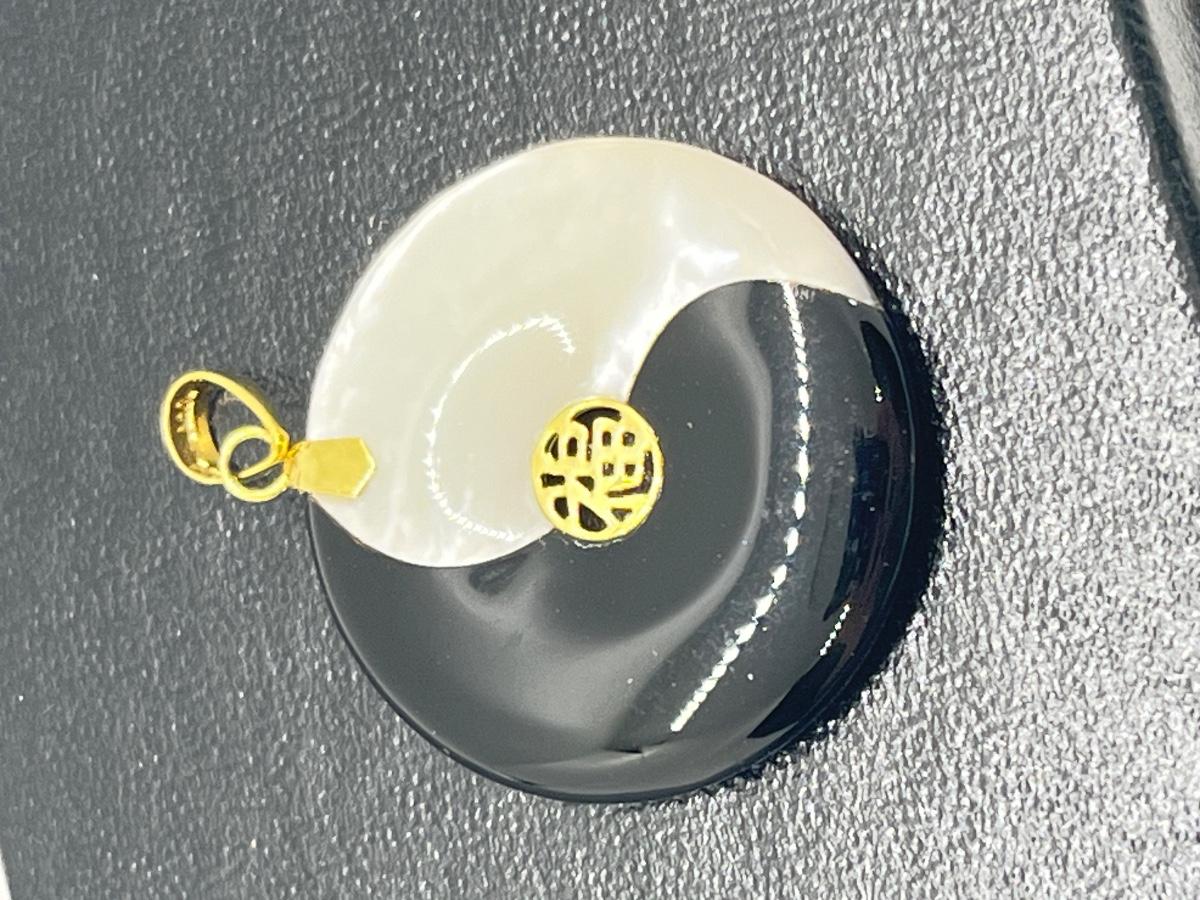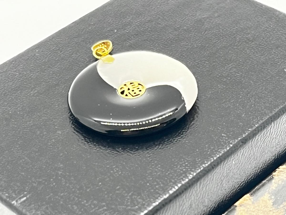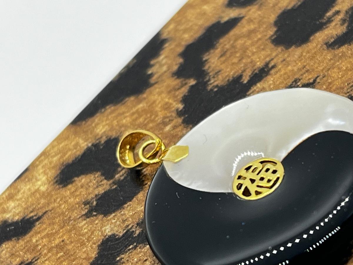 Lot 328J: Yin and Yang 14K Gold and Black Onyx and Mother of Pearl New from Hong Kong Pendant