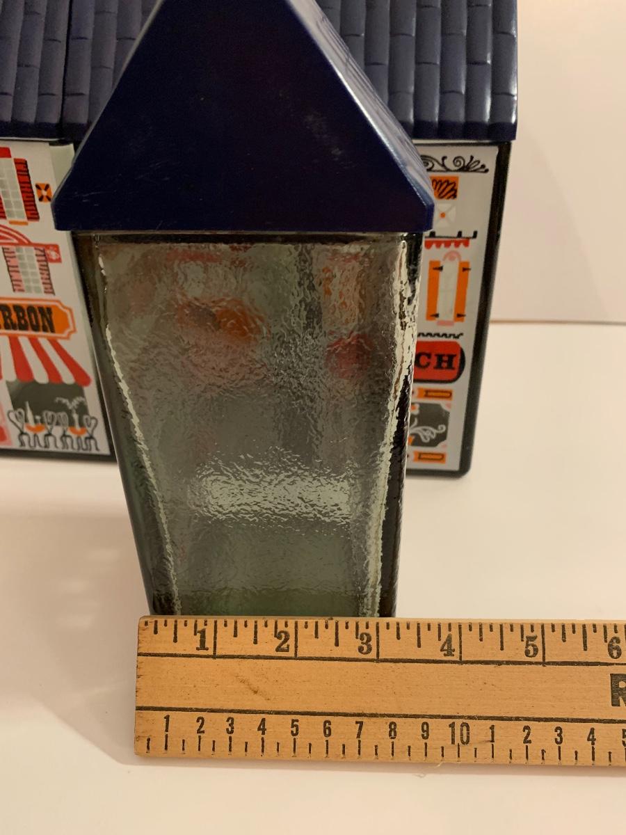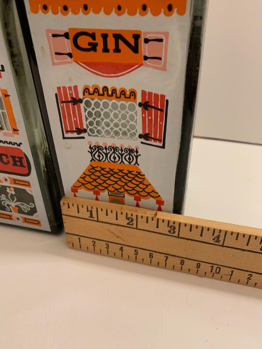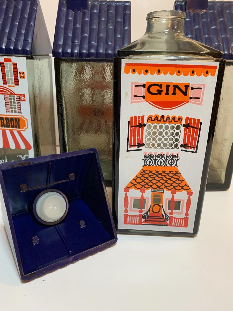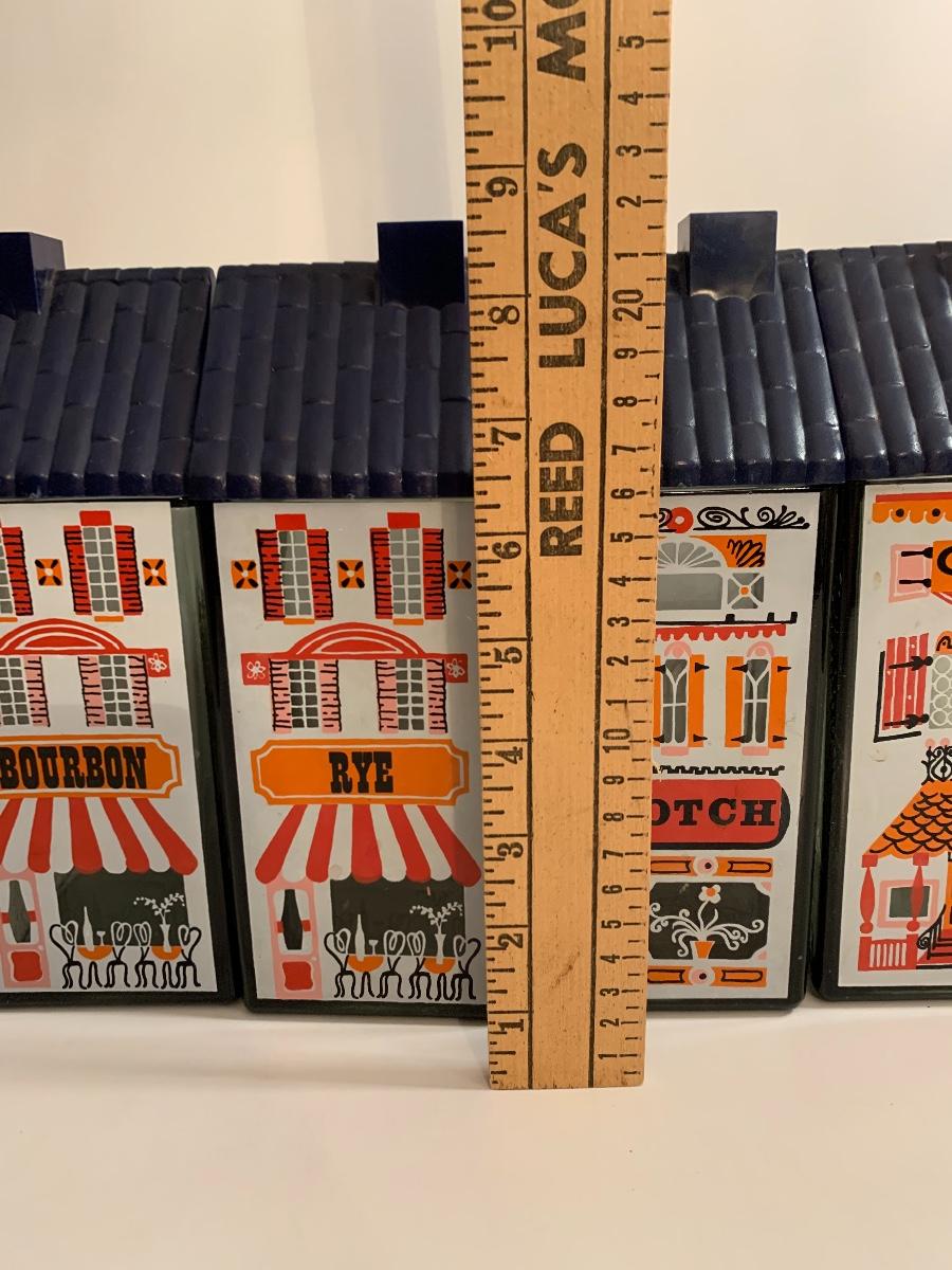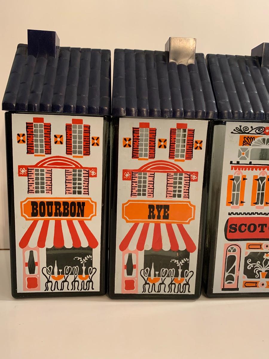 Designed to look like quaint row house shop fronts. This colorful has 4 bottle each with a unique design. Each bottle is square with large plastic lids that are shaped like roofs with chimney's. Bourbon, Rye, Scotch and Gin. No corks, can use wine corks if you want. Please see all pictures as they are the best representation of the items. The pictures show condition, measurements if taken, and what is included in the lot. Due to the large amount that we photograph and the time frame, we are not always able to take measurements. All items unless noted, are pre-owned and have been used. If you purchased furniture, you must bring help. We do not allow one person to carry large furniture out on their own. Bring help, tools and a truck for the safety of our client’s homes, and your personal safety. Company policy. Thank you.