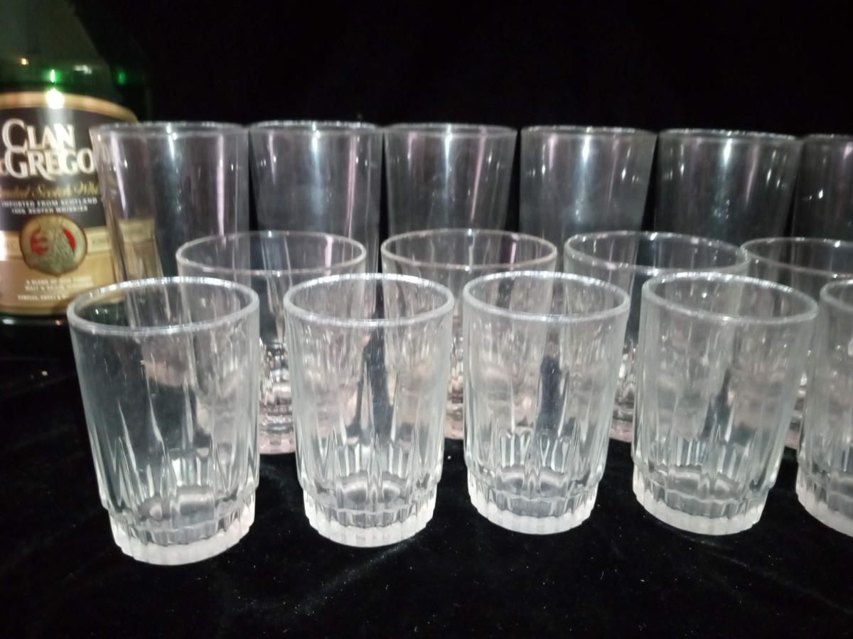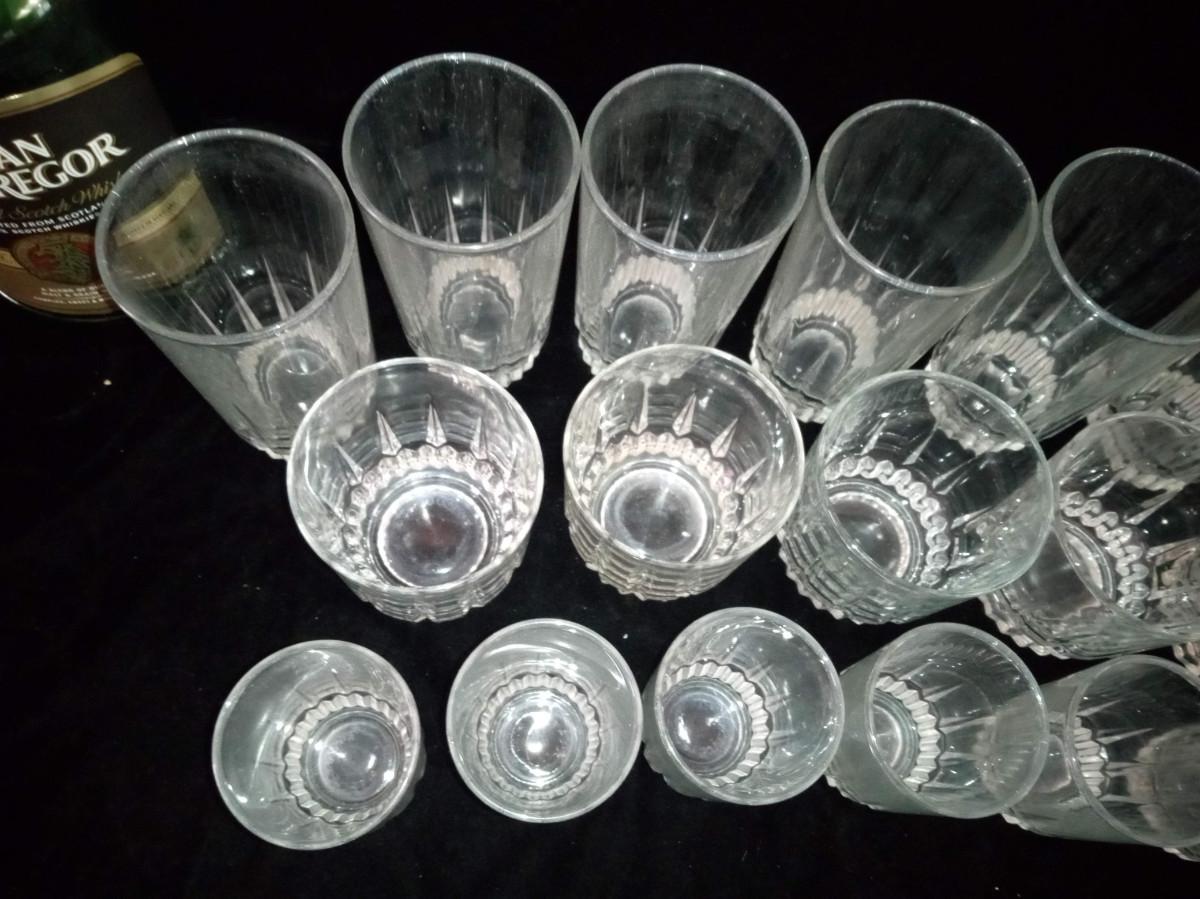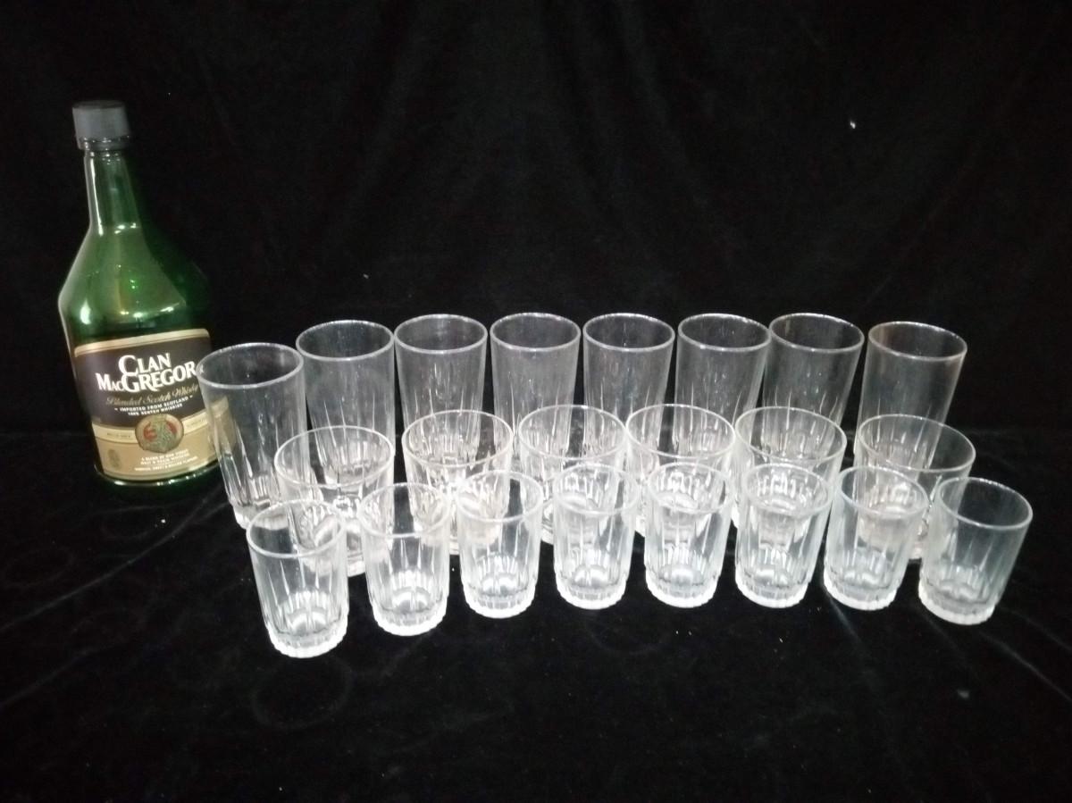 LOT 329 DRINKING GLASSES AND PARTIAL BOTTLE OF SCOTCH