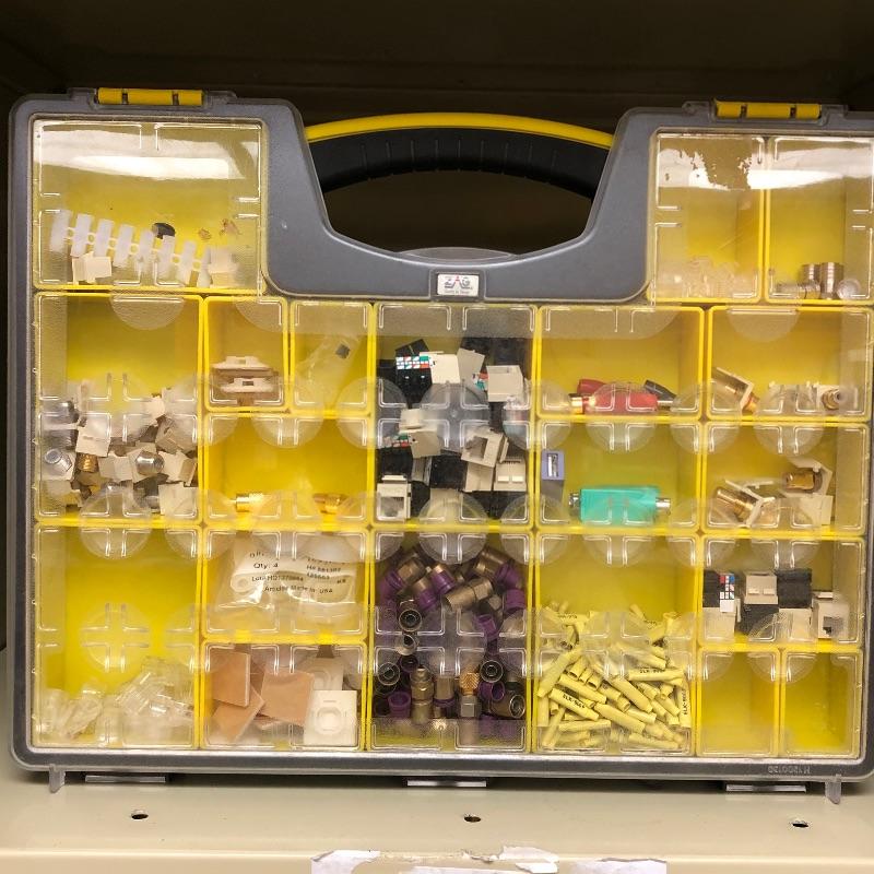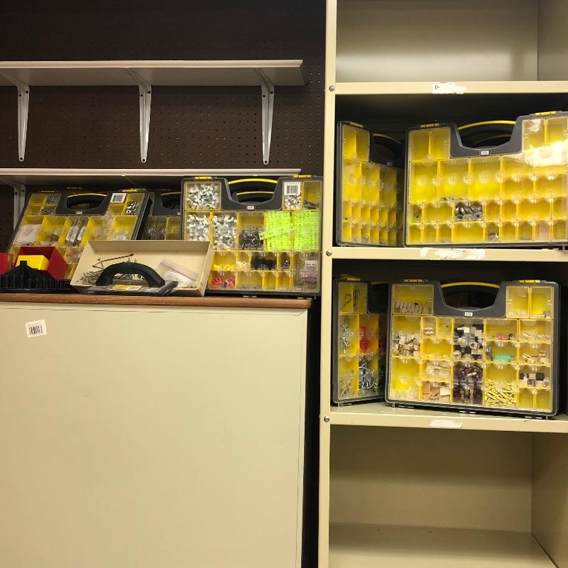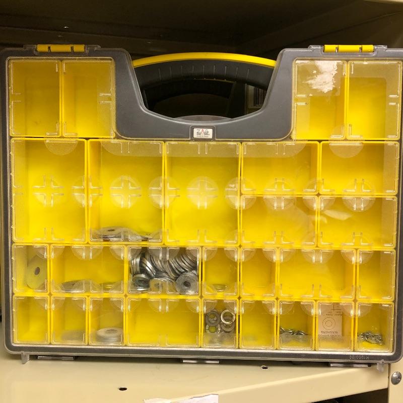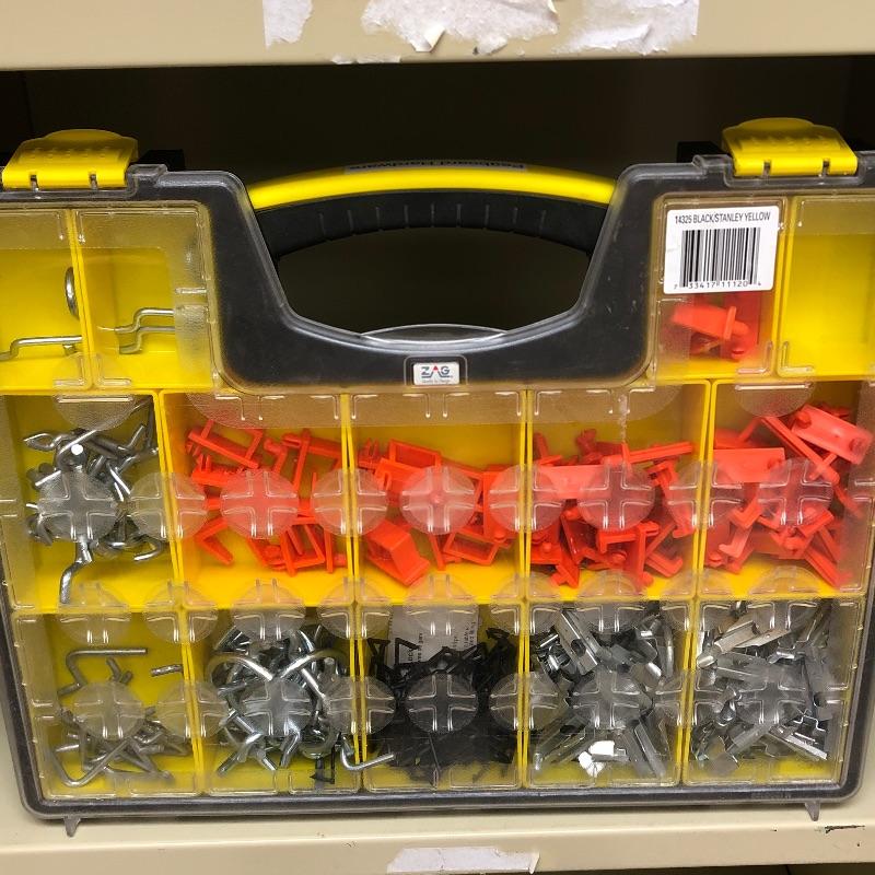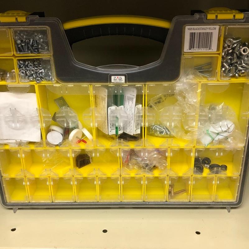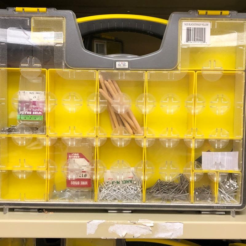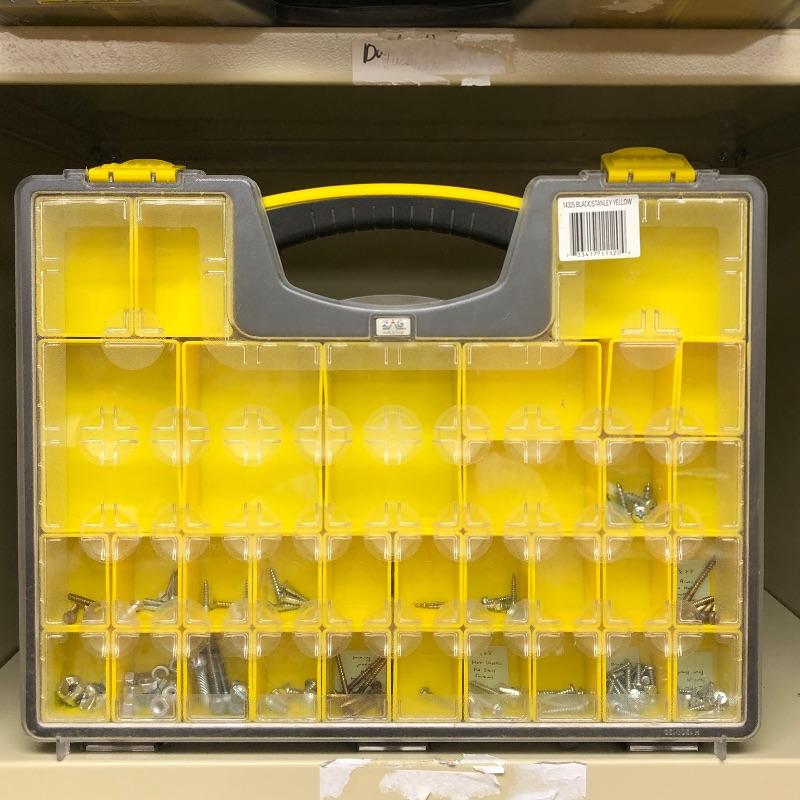 12 Sturdy hardware cases full of drywall screws, wood screws, wall mounting hardware, nails, washers and more. Super Organized! Shipping available.