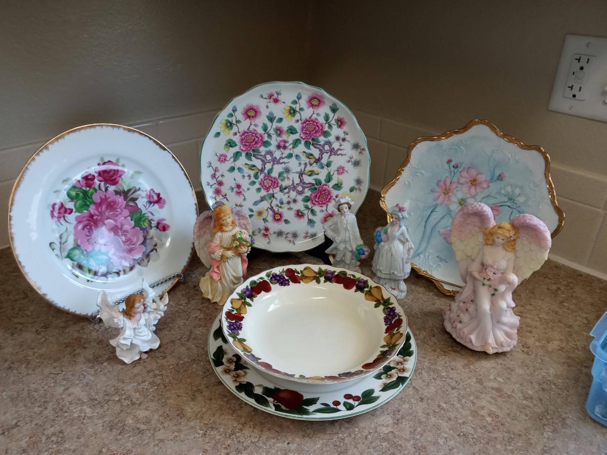LOT 329 HOME DECOR WITH ANGELS AND COLLECTORS PLATES