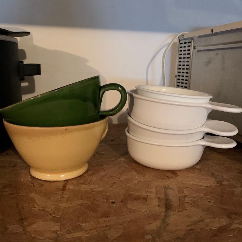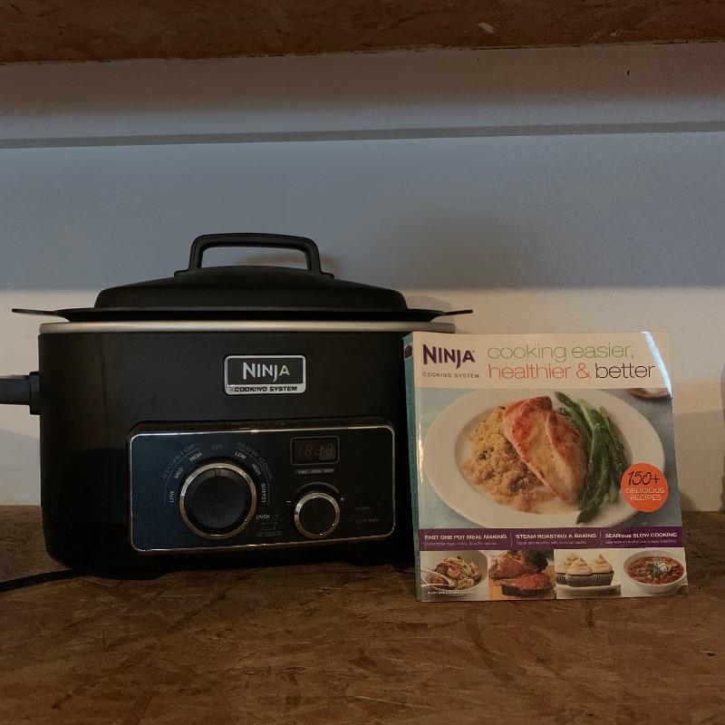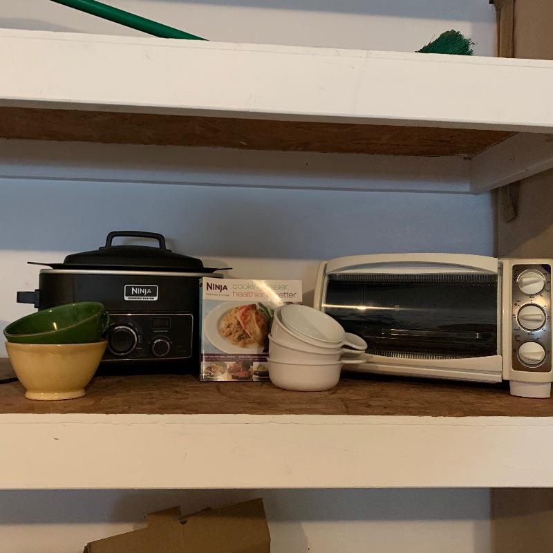 Black and Decker large toaster oven is in good shape but used. It measures 17” x13” x10” so you will need some counter space. Then the Ninja Cooking system comes with a great cookbook for ideas. We threw in some great bowls for whatever comes out of it. Both units worked when plugged in. Local pick up only.