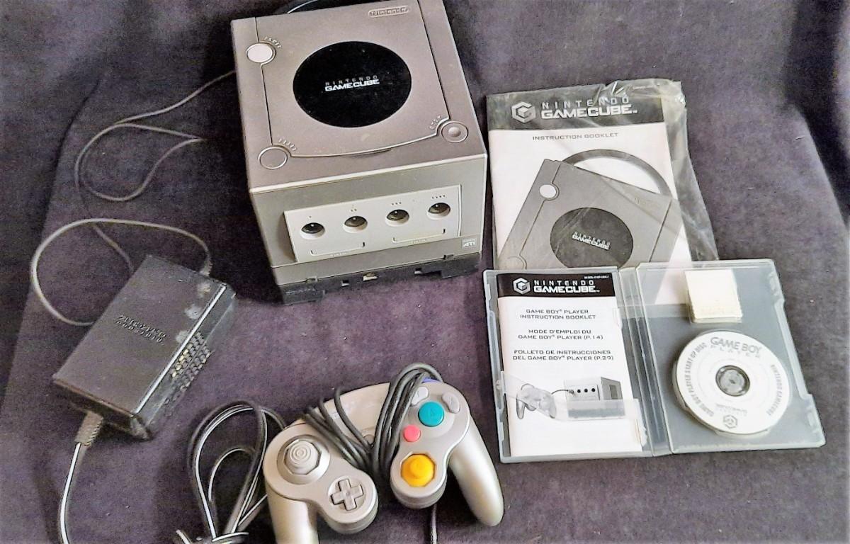 Lot 329  Nintendo Game Cube Console w/ Controller, Adapter, Instruction Booklet & Disk.