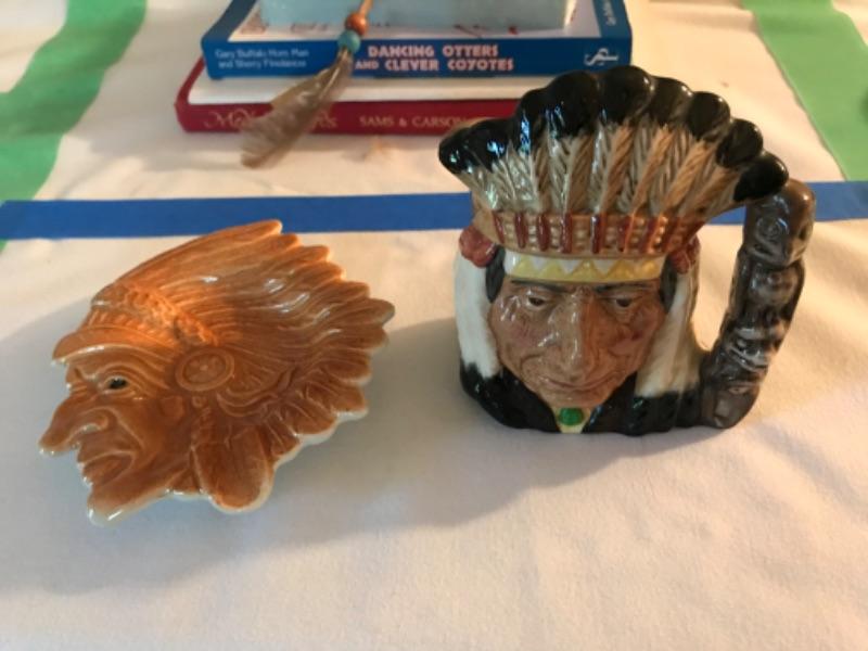 Small Royal Doulton Toby Mug “North American Indian “ D6614 and Indian Chief dish made in Occupied Japan