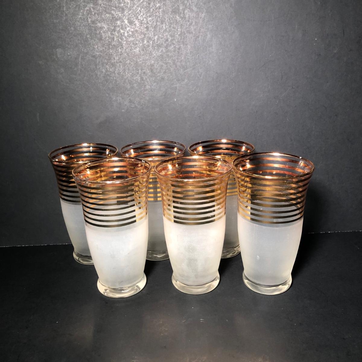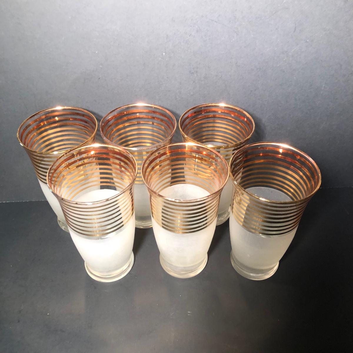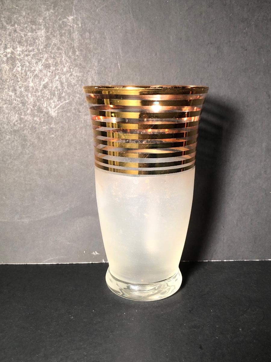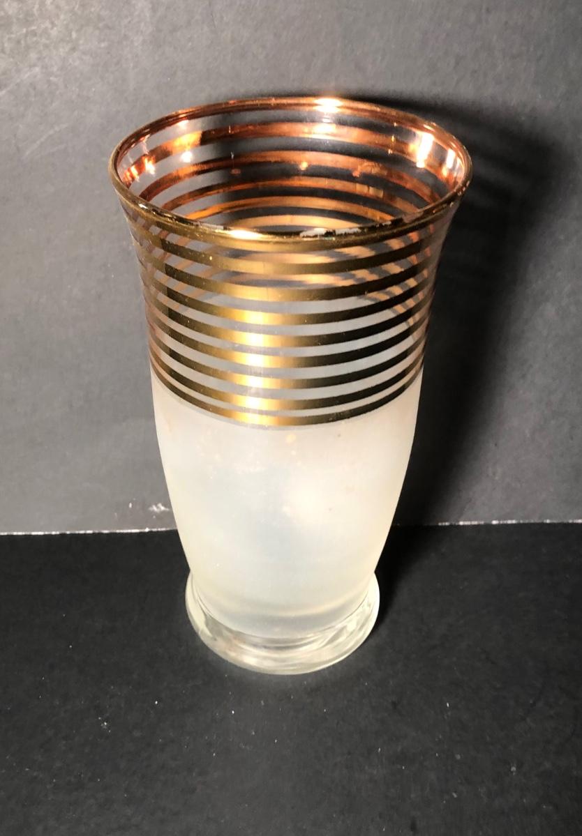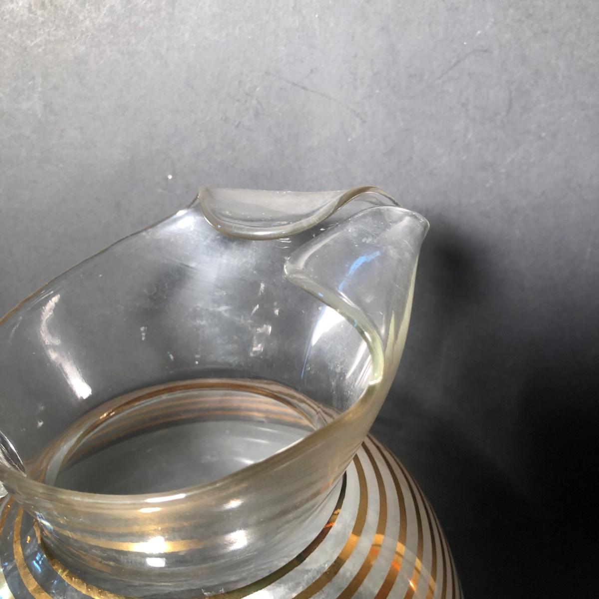 LOT 329K: Vintage 1940s Art Deco Frosted Gold Rimmed Pitcher w/ 6 Matching Glasses