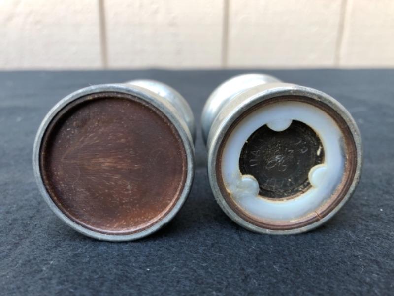 Lot 32P. 2 sets of Pewter salt & pepper: Pewter JCD 6, Shakers; C.C., made in Italy, Salt & Pepper mill “” $35