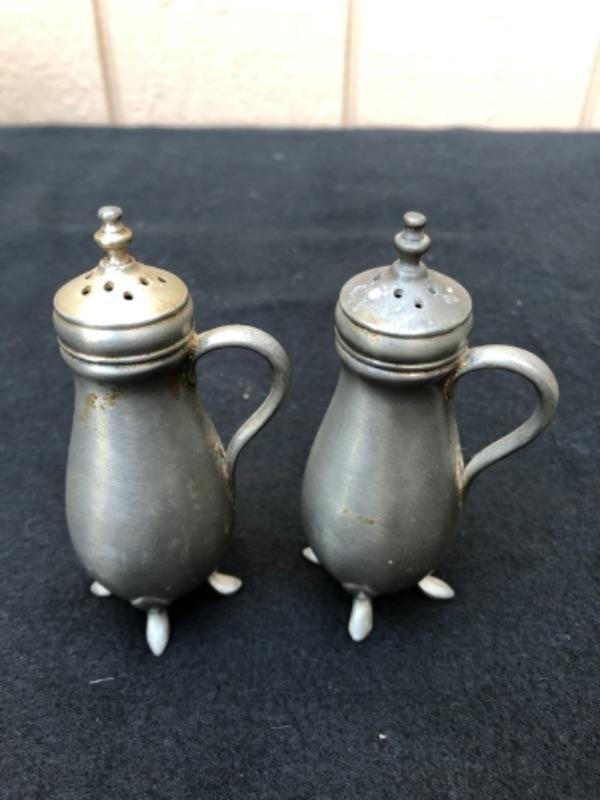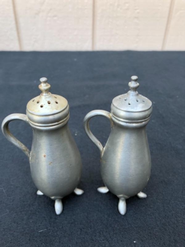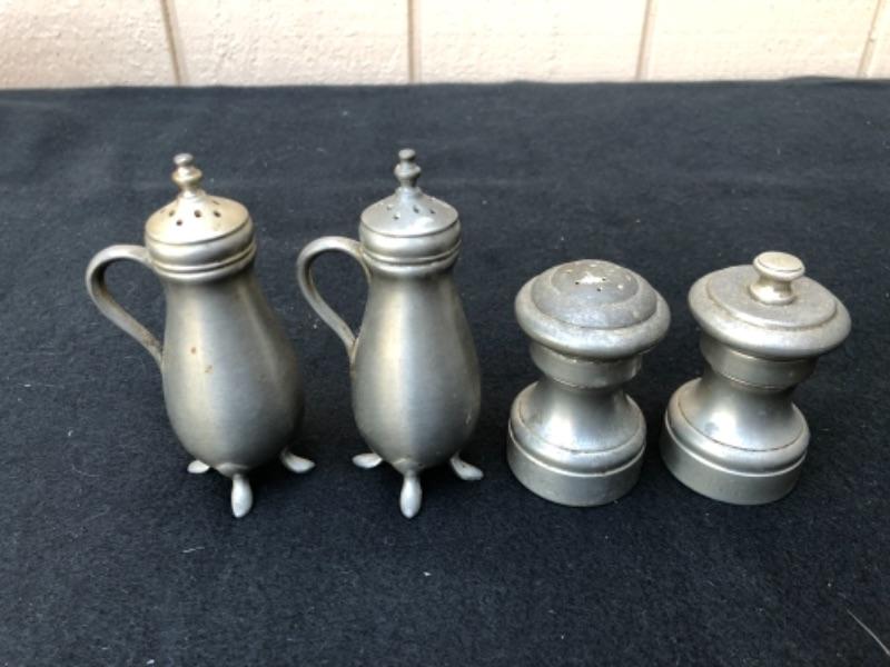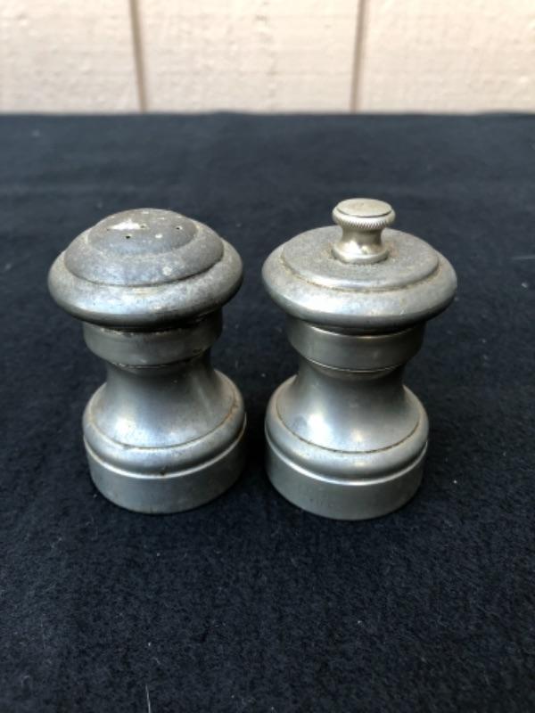 Lot 32P. 2 sets of Pewter salt & pepper: Pewter JCD 6, Shakers; C.C., made in Italy, Salt & Pepper mill “” $17.50
