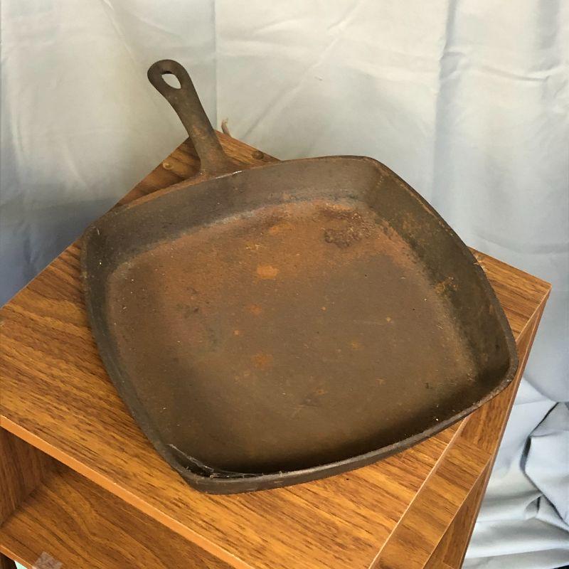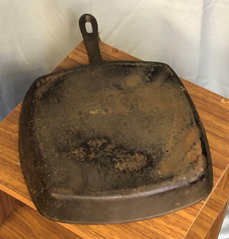 There are no marks on this one. It is 10" and obviously needs cleaning and re-seasoning.