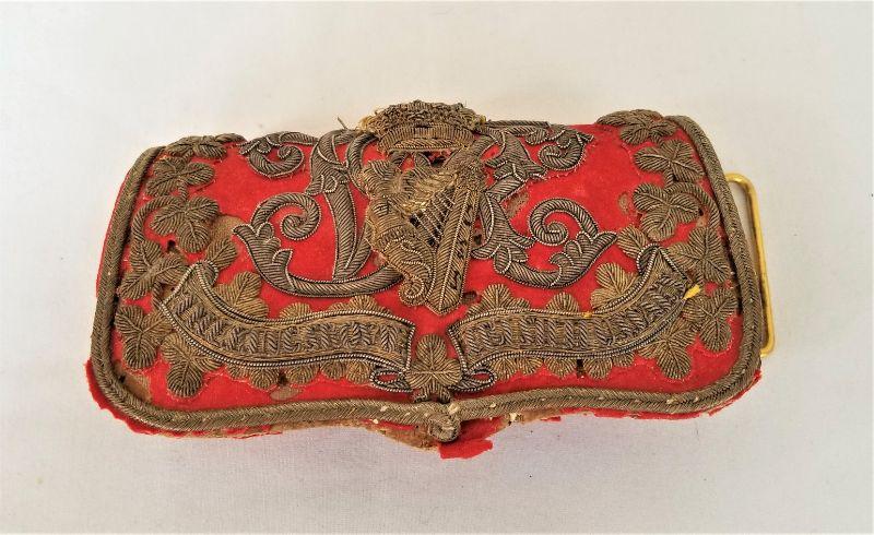 From my client's collection - fantastic piece of British military history - heavily decorated - officers belt pouch for dress uniform. As found - antique condition. The brass fittings may be new. Measures 6.5" x 3.5"