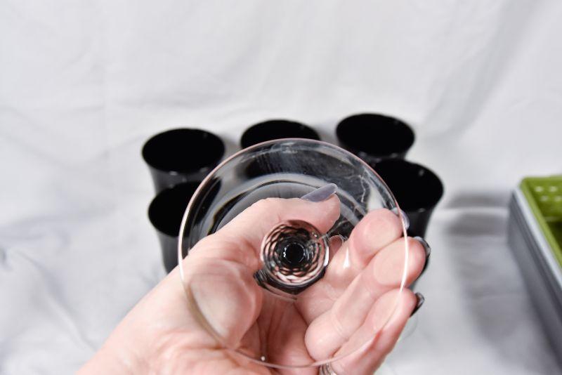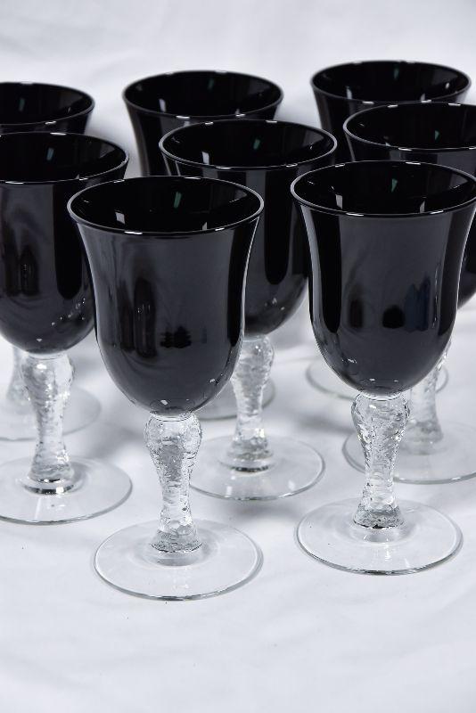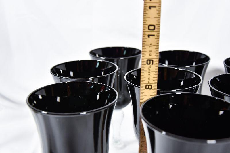 These are amazing! The black onyx glass is opaque. No chips noted.