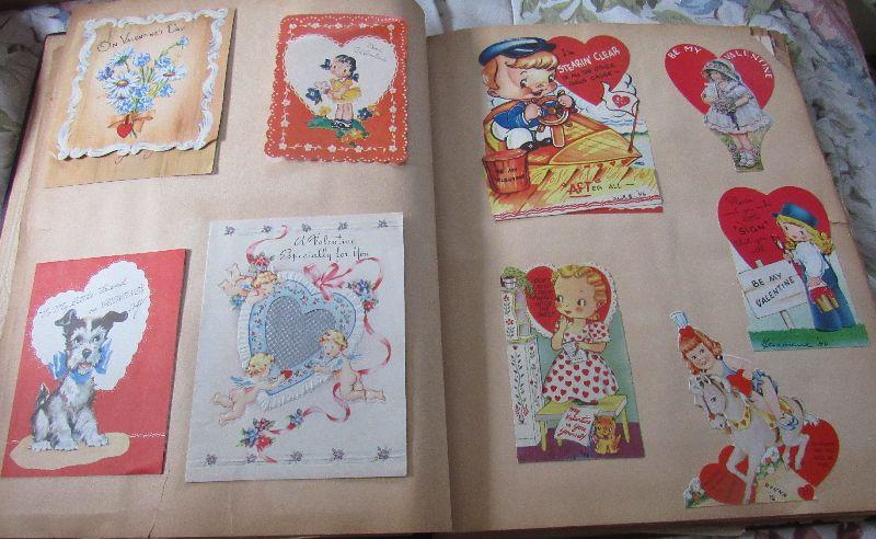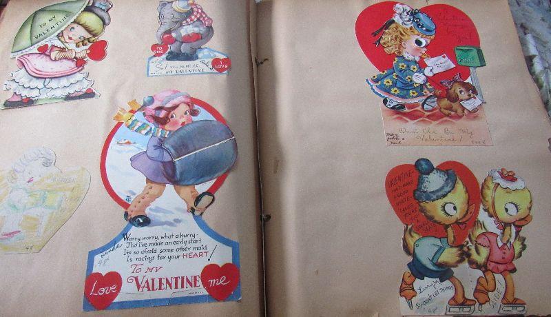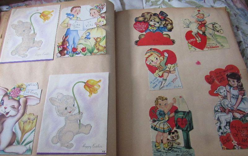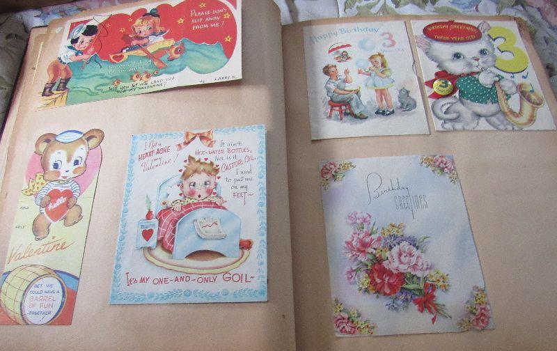 Lot 33 - Large Old Scrap Book W/Vintage B-Day Cards, Vintage Valentine Day Cards Etc.