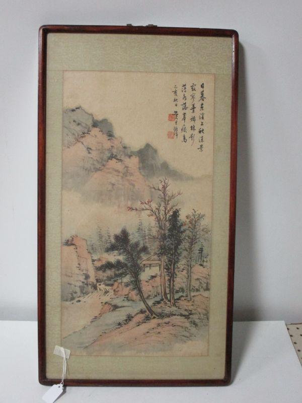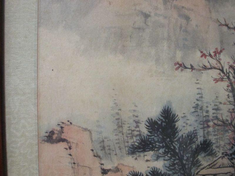Lot 33 - Huang Junbi Print Mountain Scape with Wood Frame 15"x28"