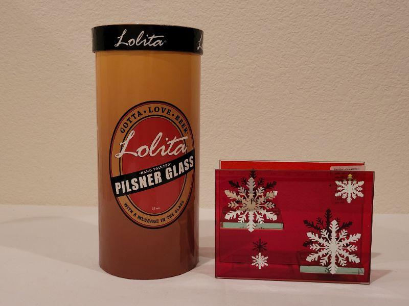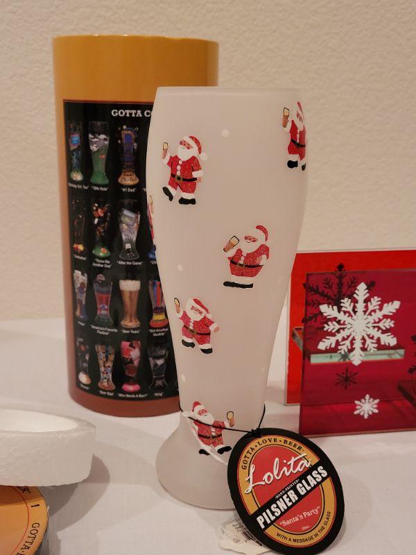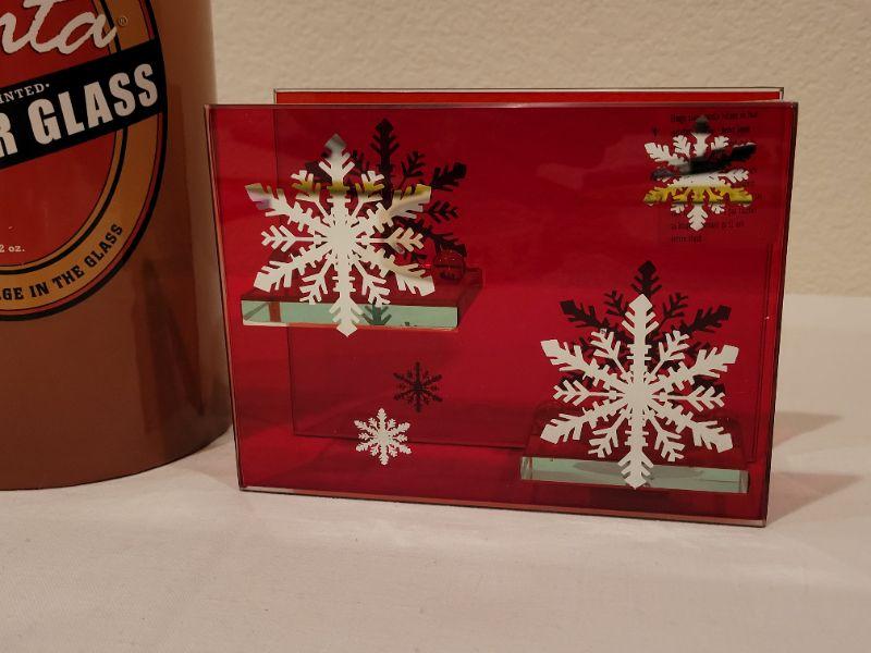 Lot 33: NEW Christmas Pilsner Beer Designer Glass + Hallmark Votive Candle Glass Snowflake Deco