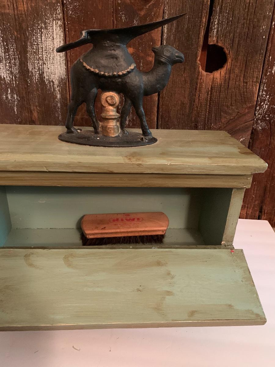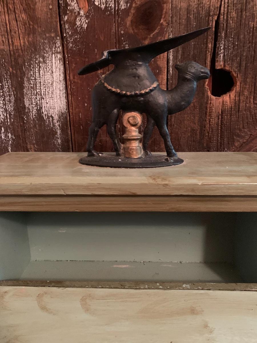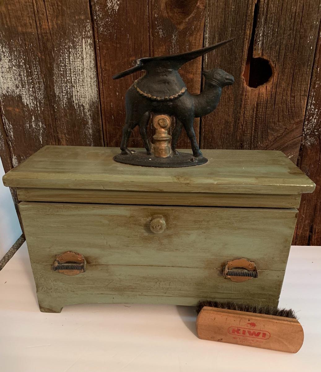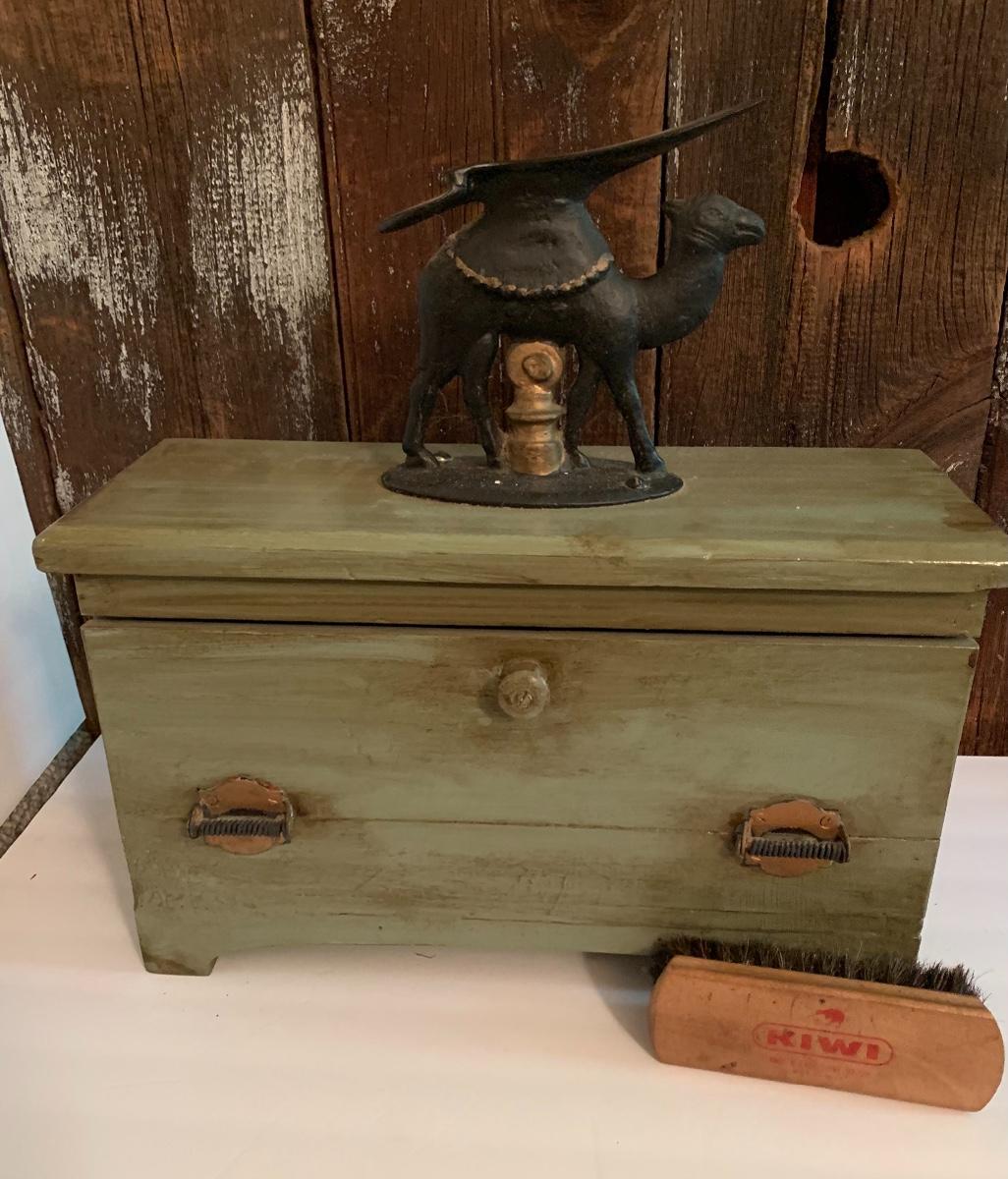Lot 33: Unique Vintage Shoe Polish Box w/Cast Iron Camel Top